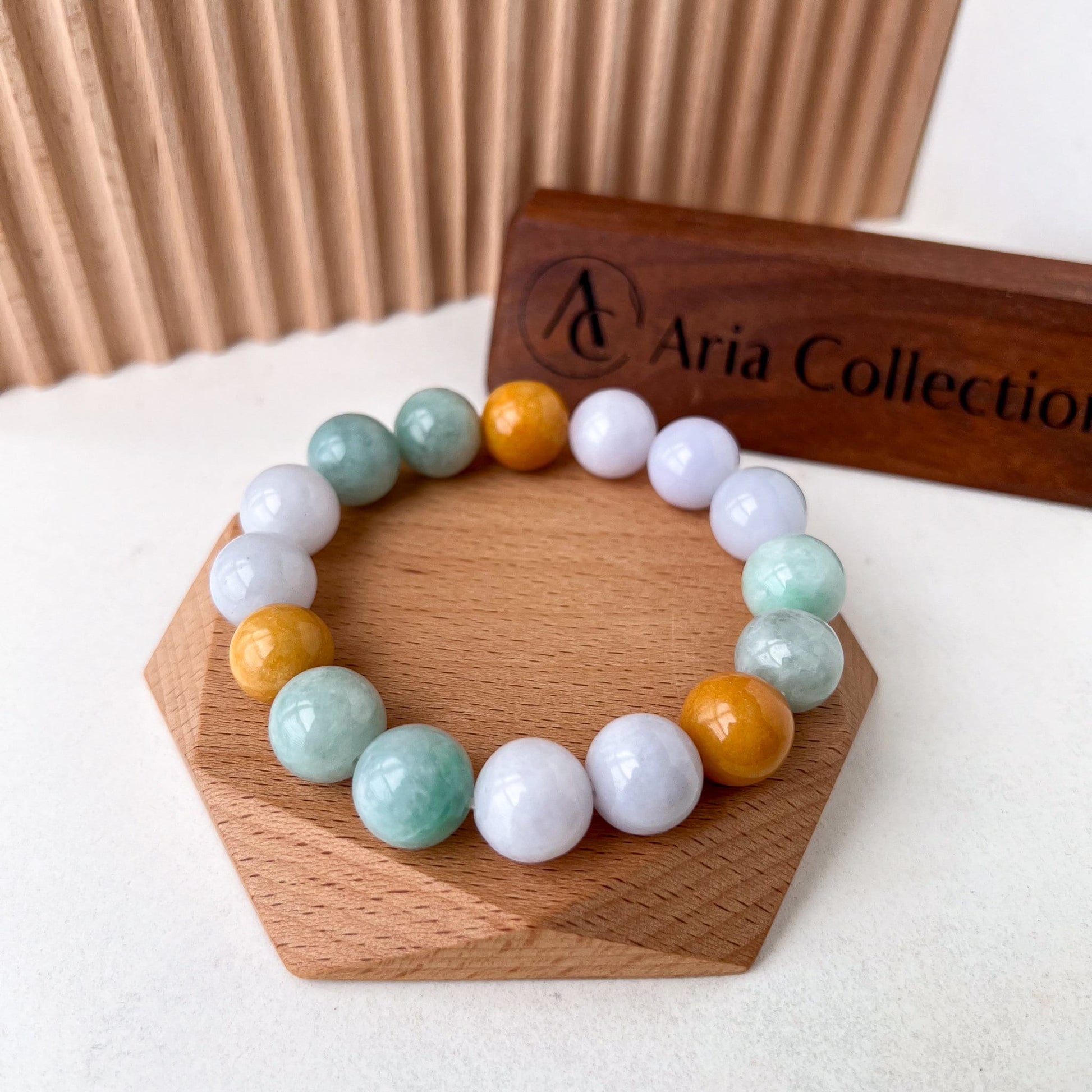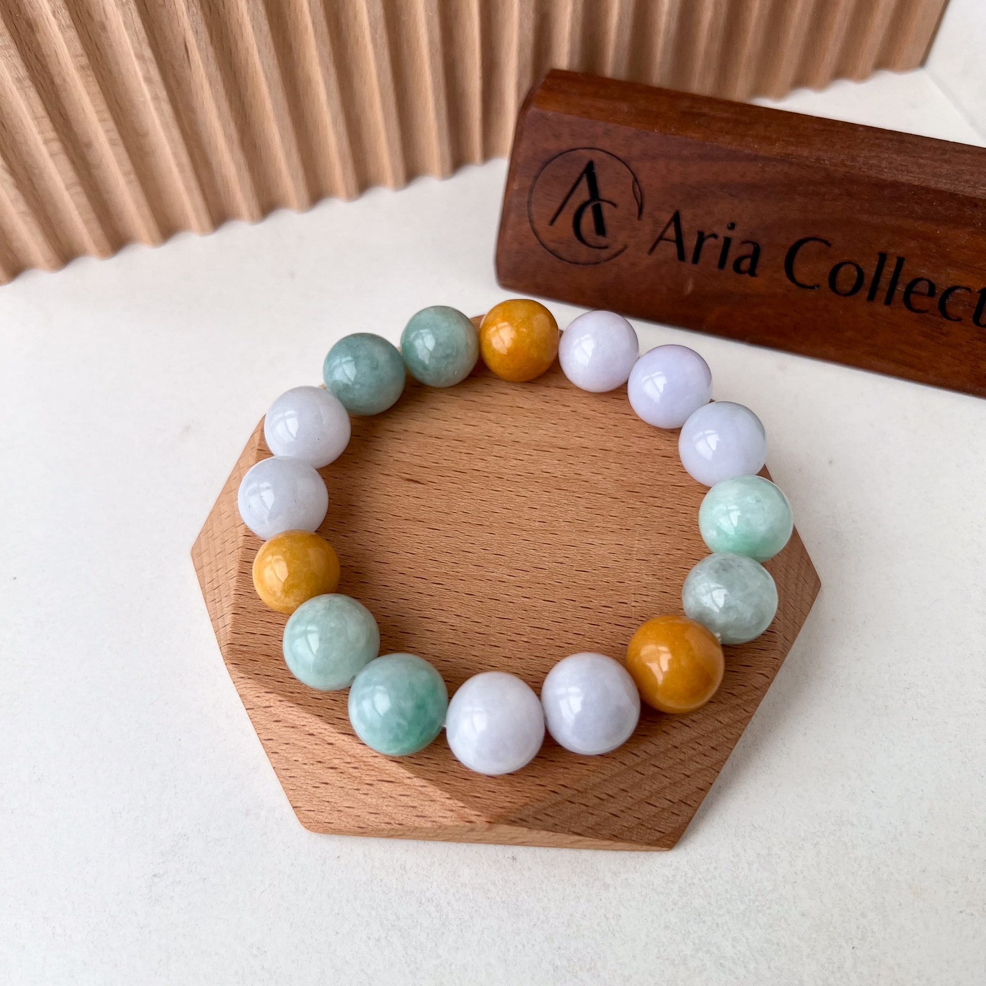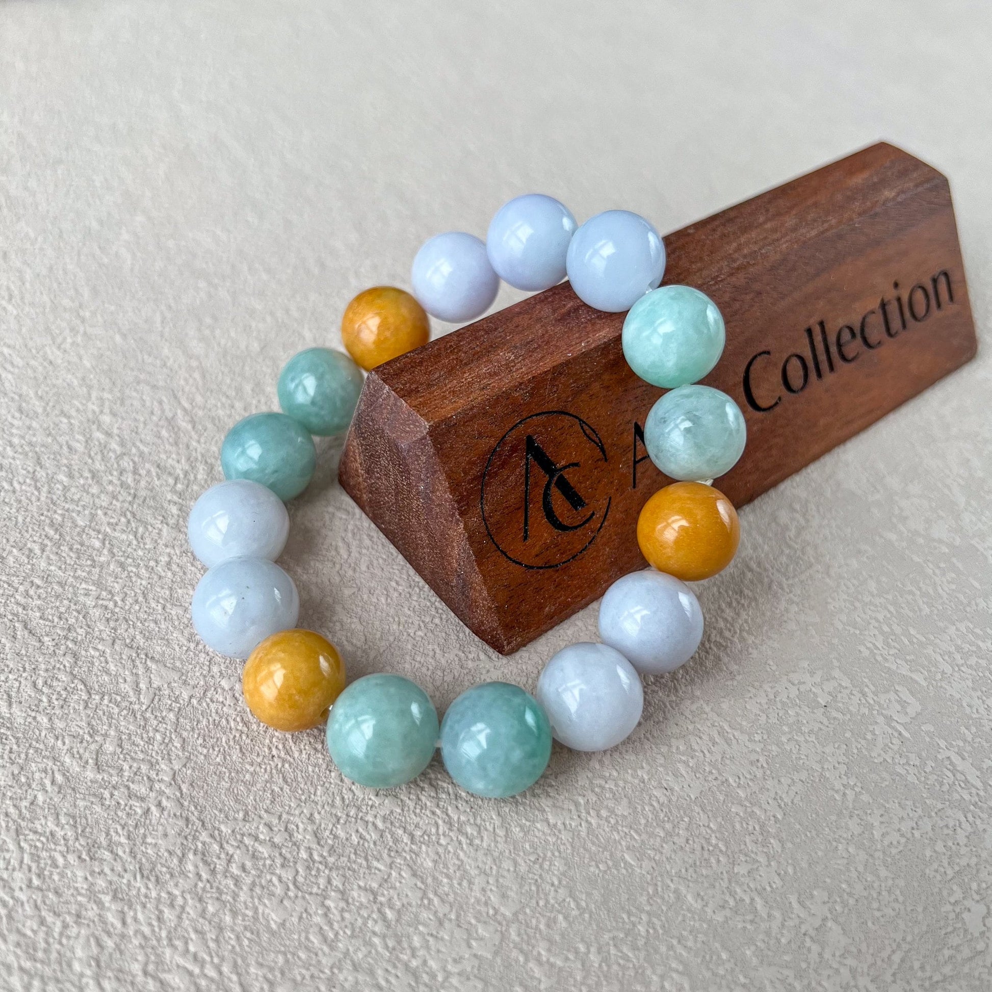 Lavender Purple Green Yellow Jadeite Jade Bracelet