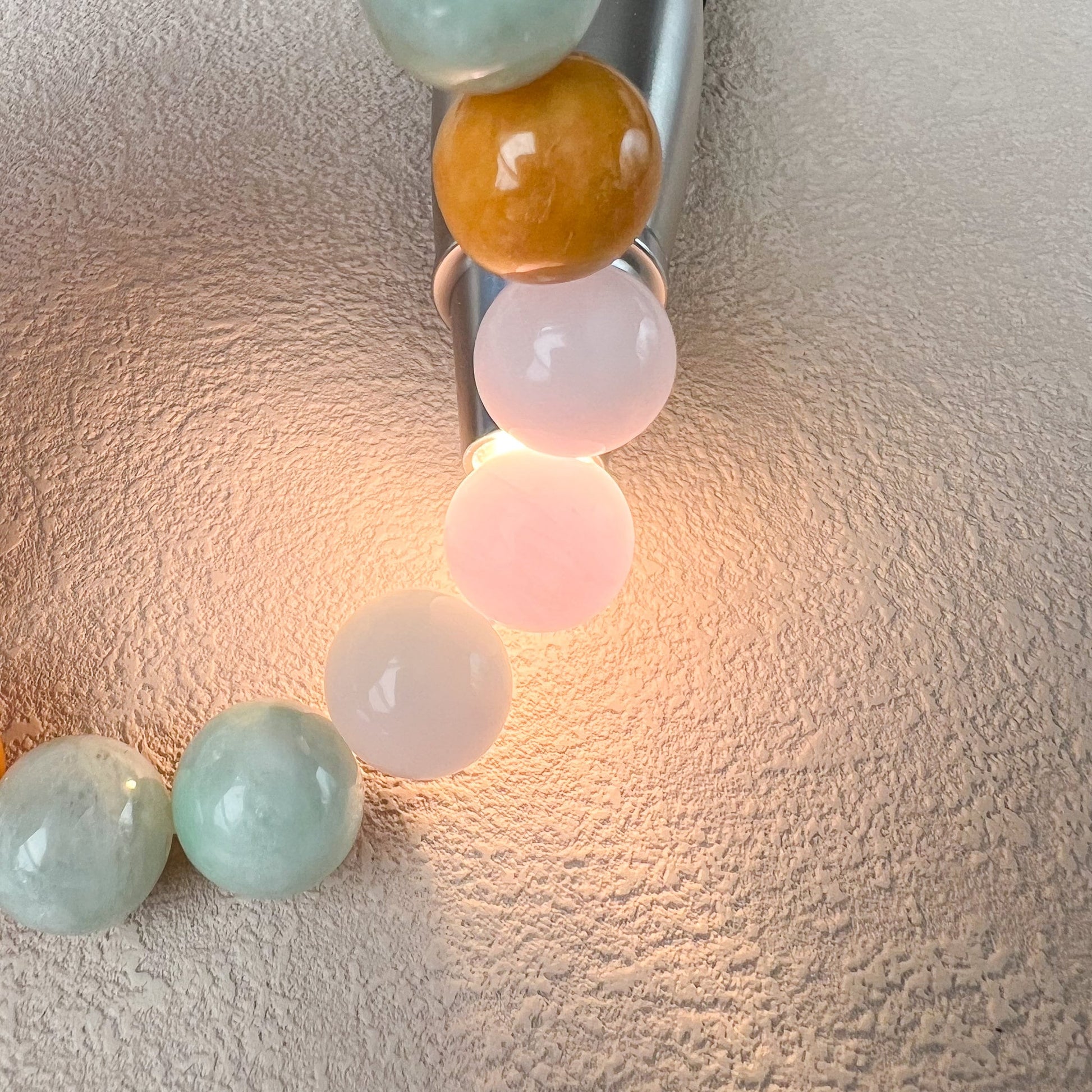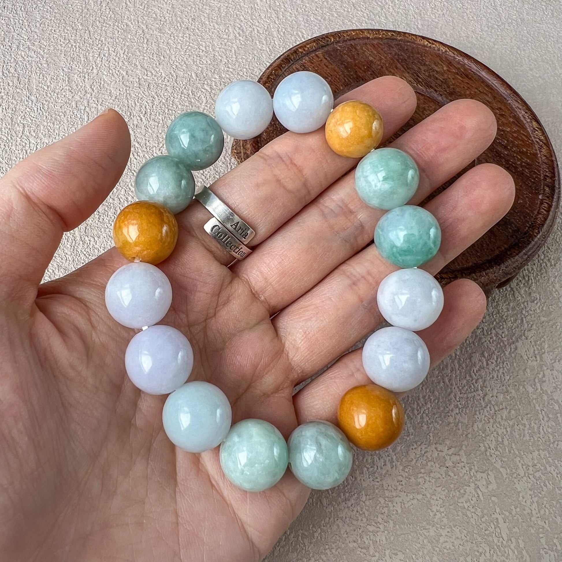 JADE COLOR: Semi-translucent light purple lavender and light green and yellow beads. The beads are hand carved so there may be slight differences between all of them. They do not come from a manufactured machine, so they will not be perfectly round. Hand carving the beads creates more texture in the bracelet.