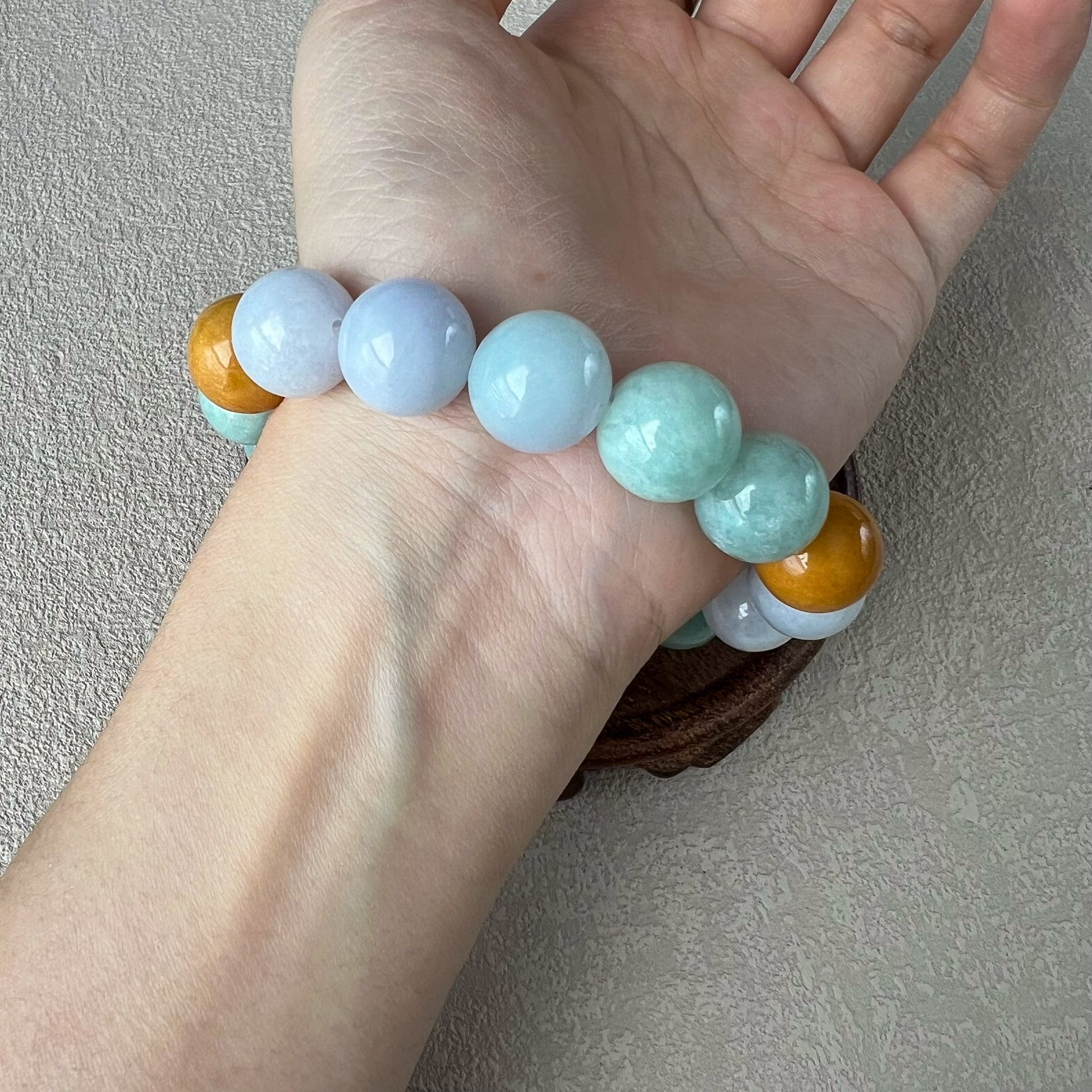 13.5 mm Jadeite Jade Light Lavender Purple and Green Yellow Bracelet, LZG-0822-3335705