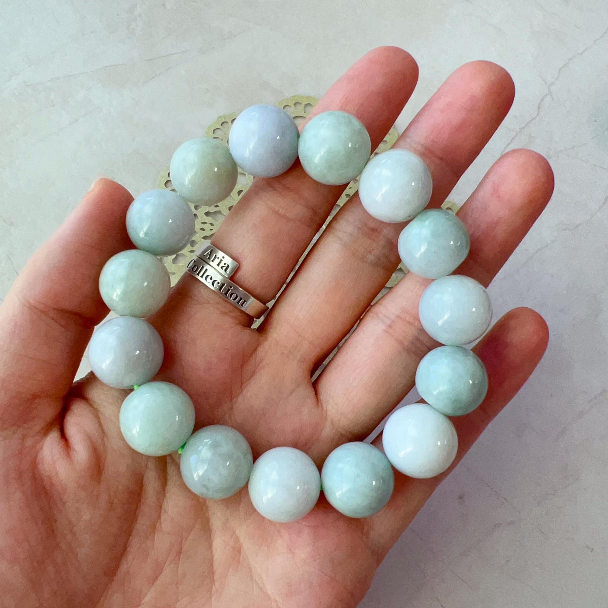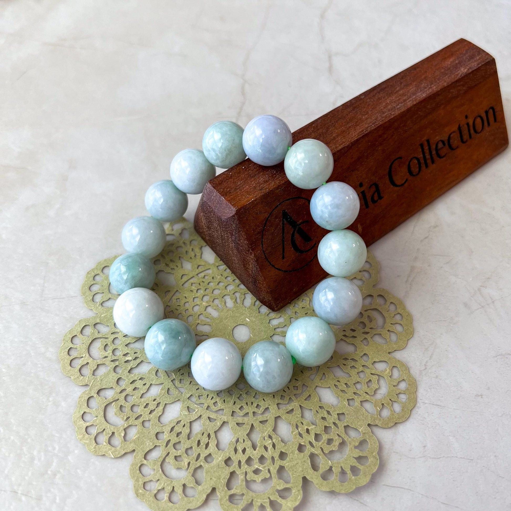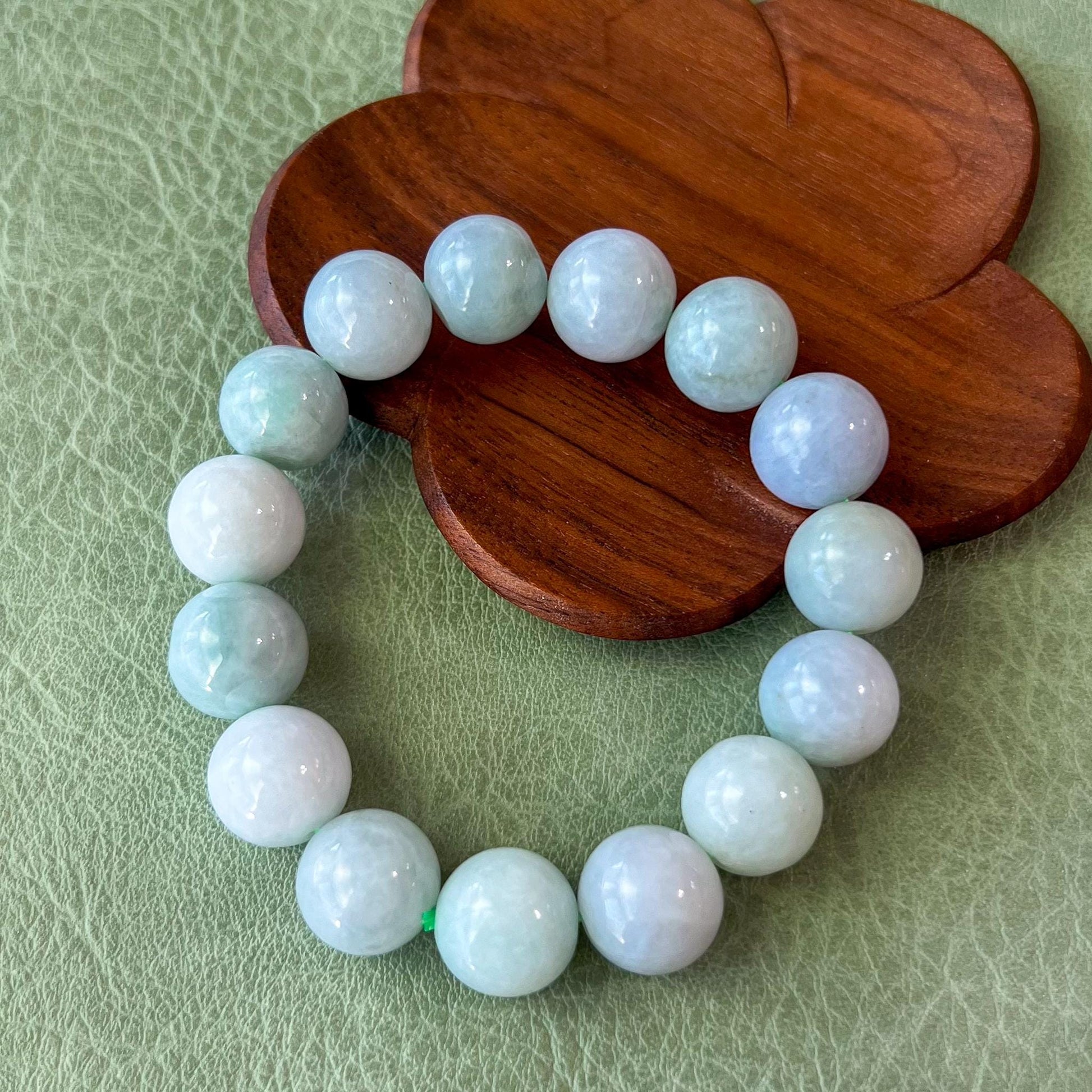 NATURAL JADE: This is a high grade jadeite jade beaded bracelet. It has strong hues of multiple different colors of jadeite jade. There are 15 beads of premium jadeite jade quality. The jade bracelet has beautiful tones from all spectrums of jadeite jade. The multi-color beads blend together to give this bracelet a unique look. The bracelet is beaded with elastic bands so it should fit most people‘s hand sizes.