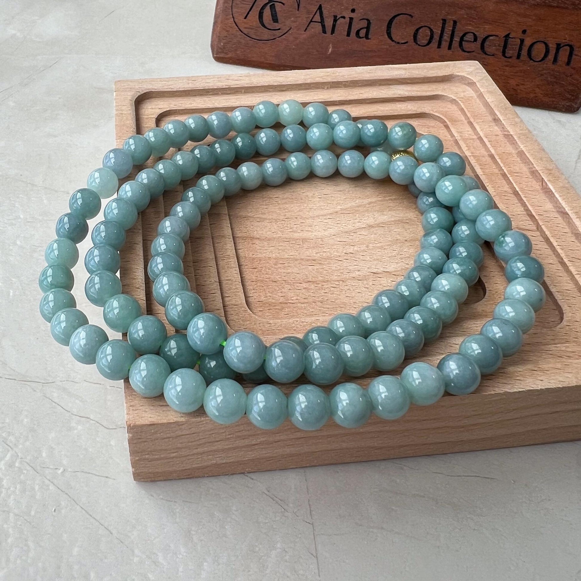 6.7 mm 108 Light Green Blue Jadeite Jade Mala Beads Bracelet Necklace, SCA-0424-1727838828