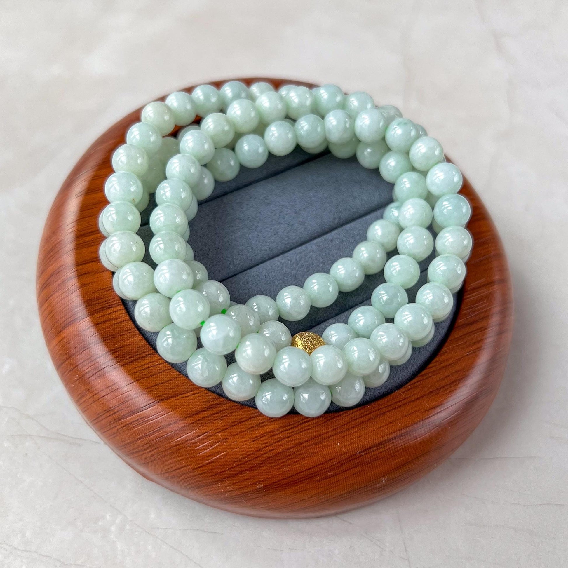 7.0 mm 108 Light Green Jadeite Jade Mala Beads Bracelet Necklace, LIL-0424-1727563655