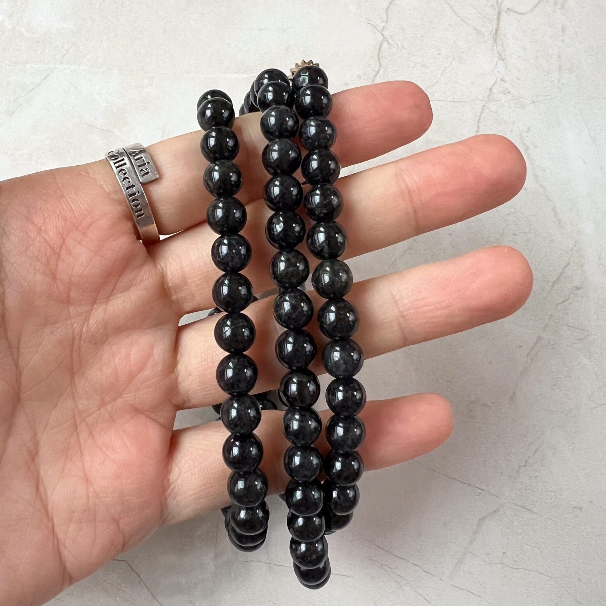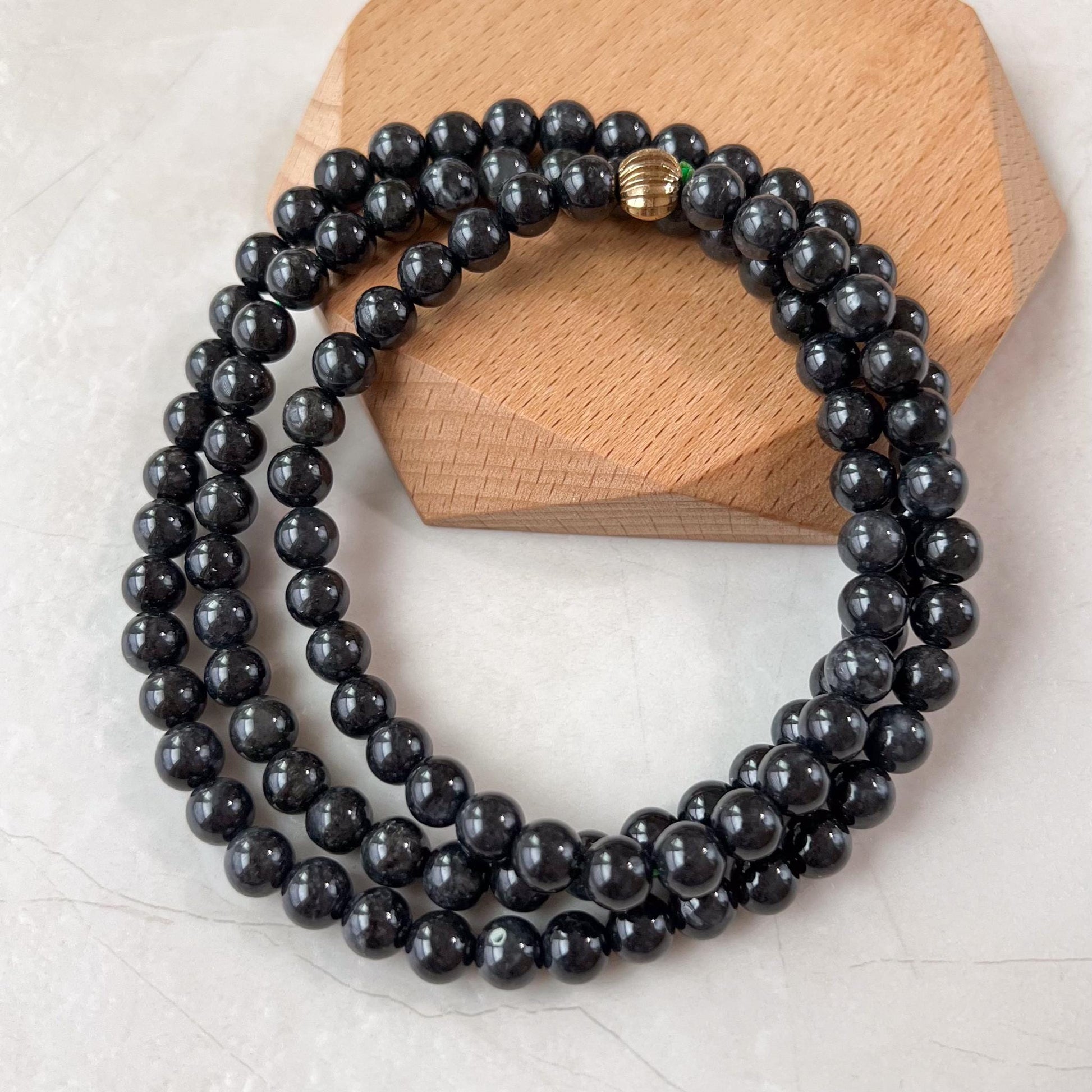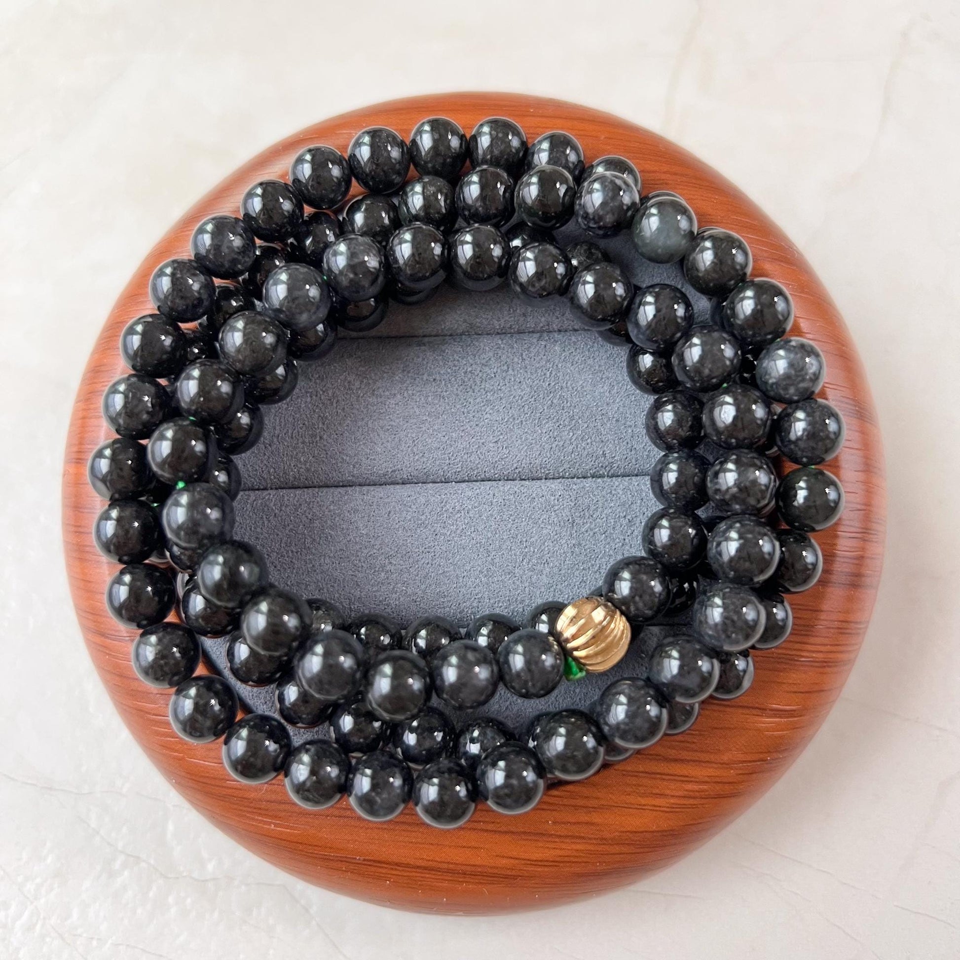 7.3 mm 108 Black Jadeite Jade Mala Beads Necklace Bracelet, FCSG-0922-1746211519