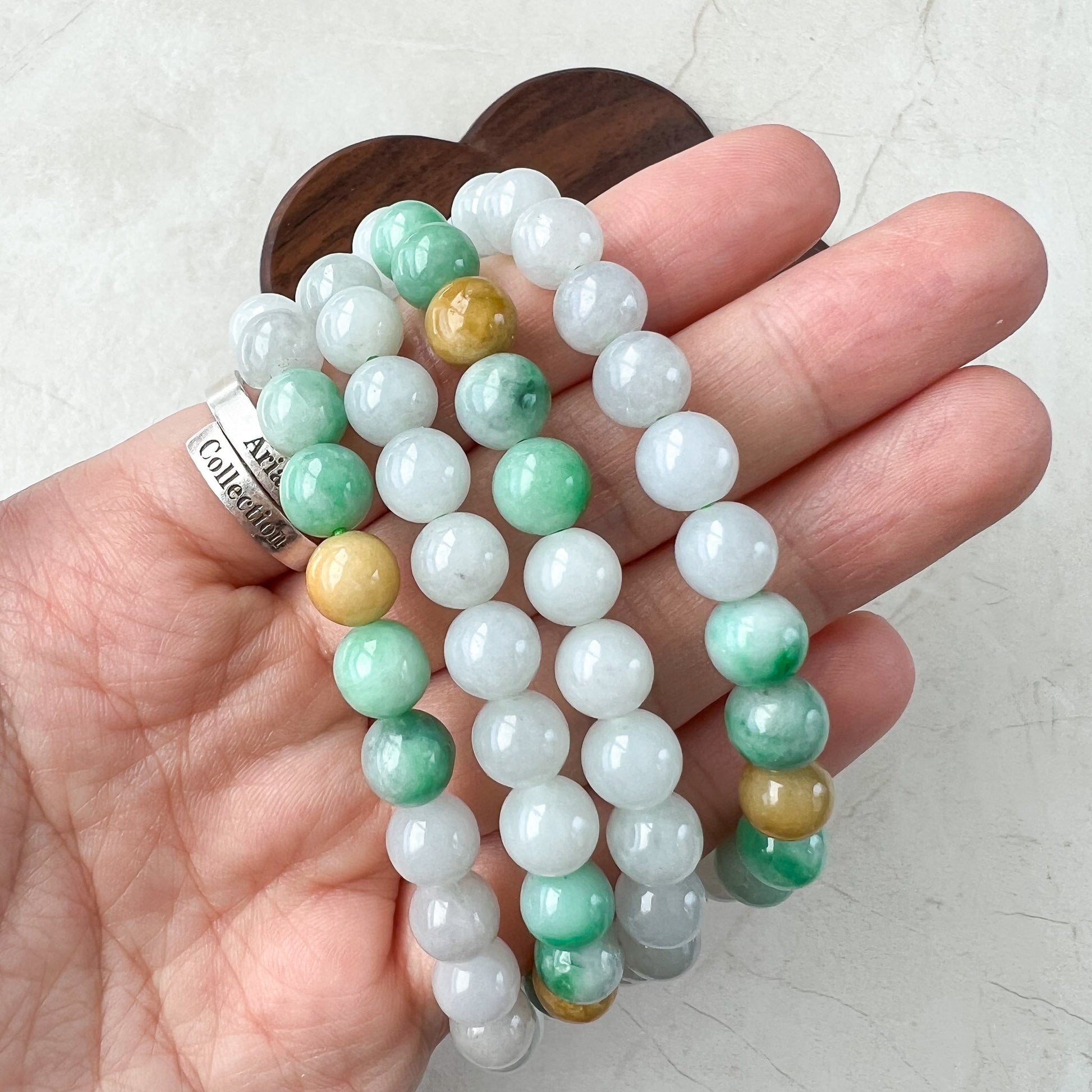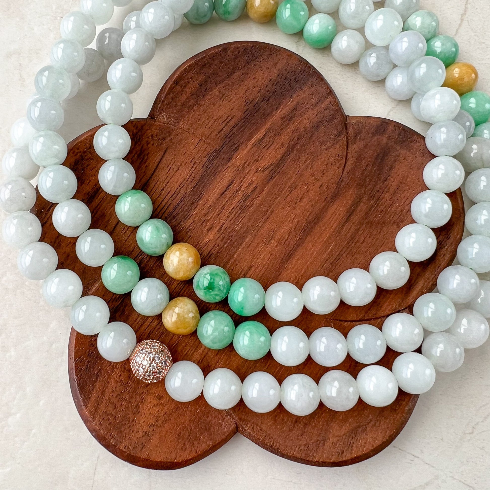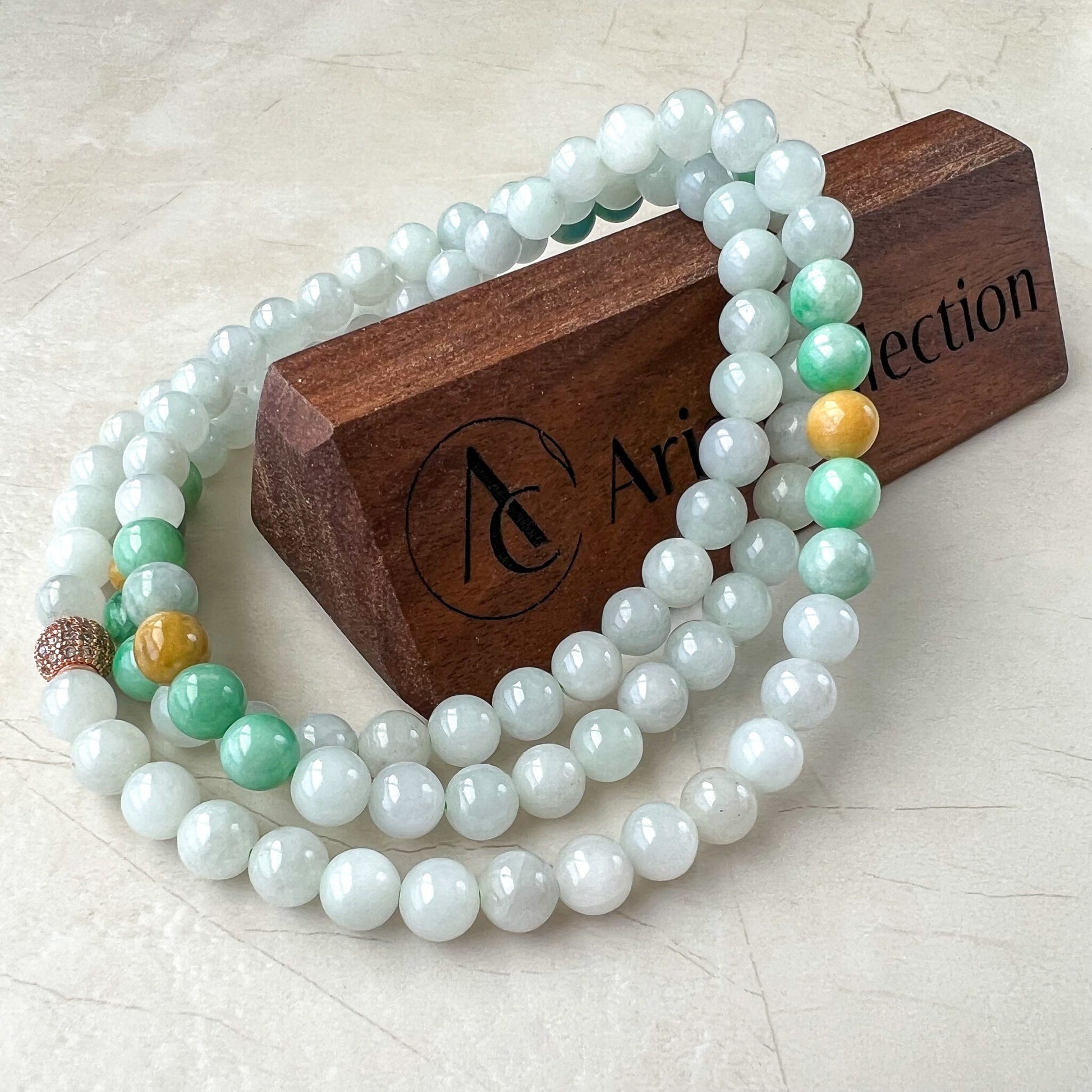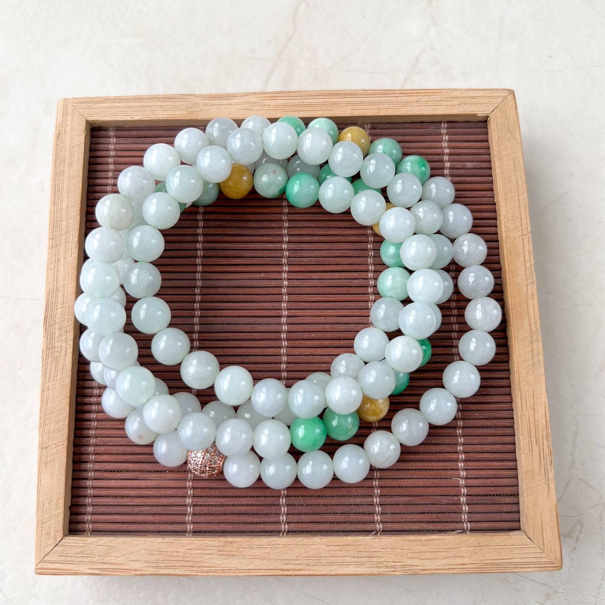 7.5 mm 108 White Green Yellow Jadeite Jade Mala Beads Bracelet Necklace, FCSG-1221-1678122966