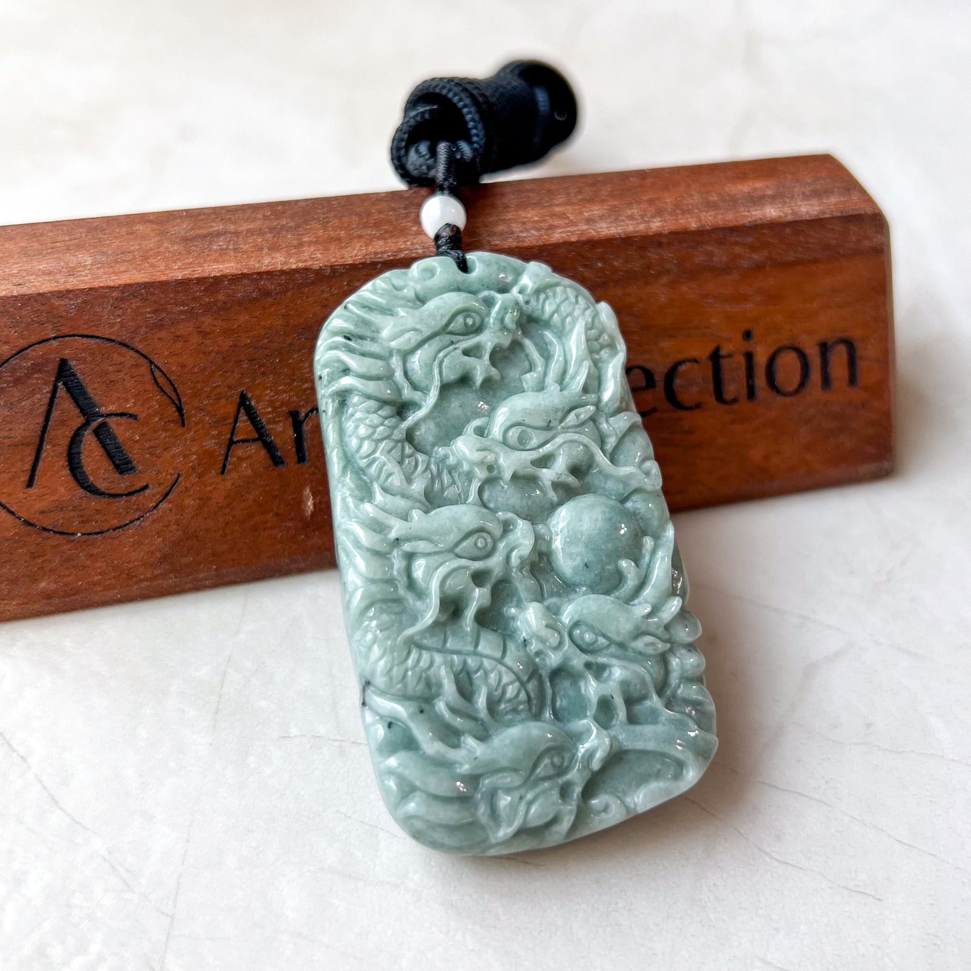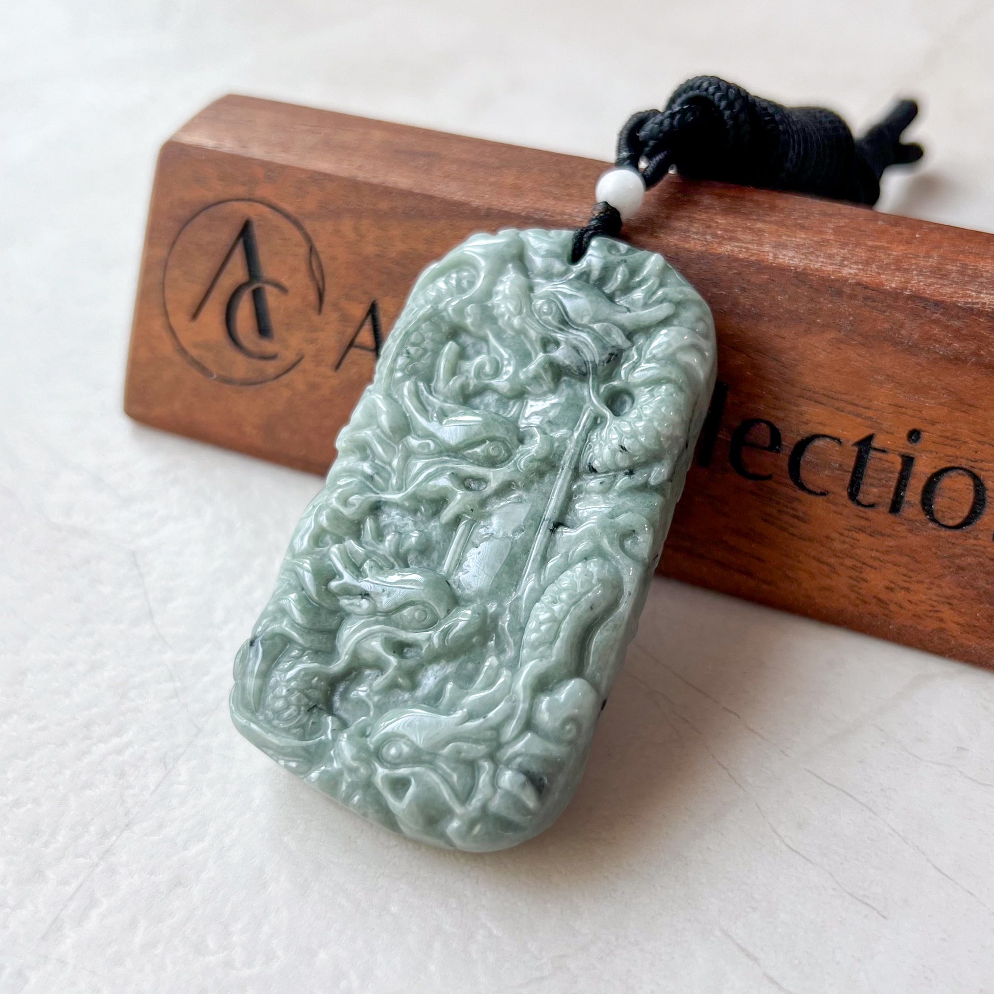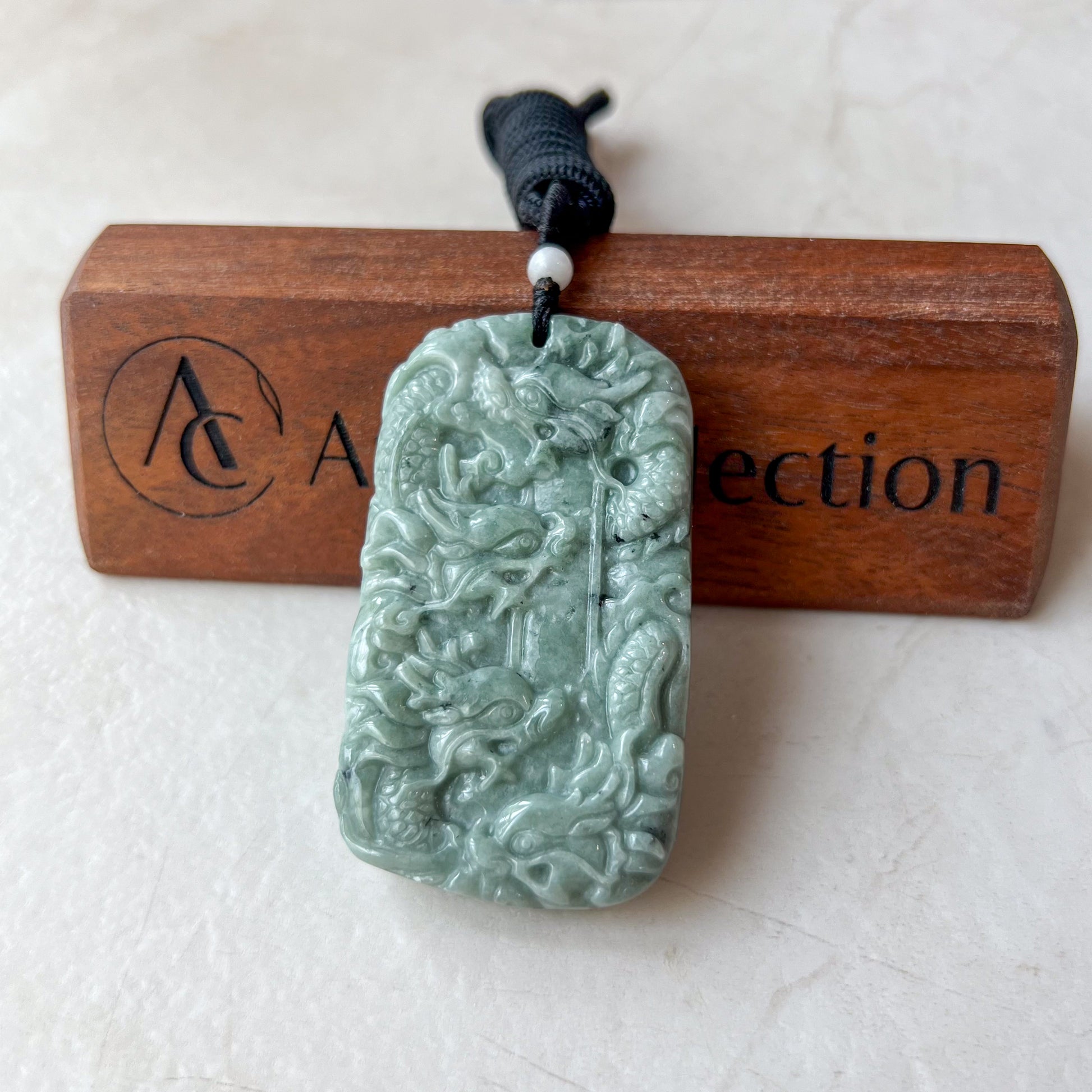 CARVING: The pendant is carved in the form of 9 dragons. It is a rare dual sided carving. There are 5 dragons on one side and another 4 on the other. The nine dragons are said to protect its wearer from harm. The carving detail is exquisite.