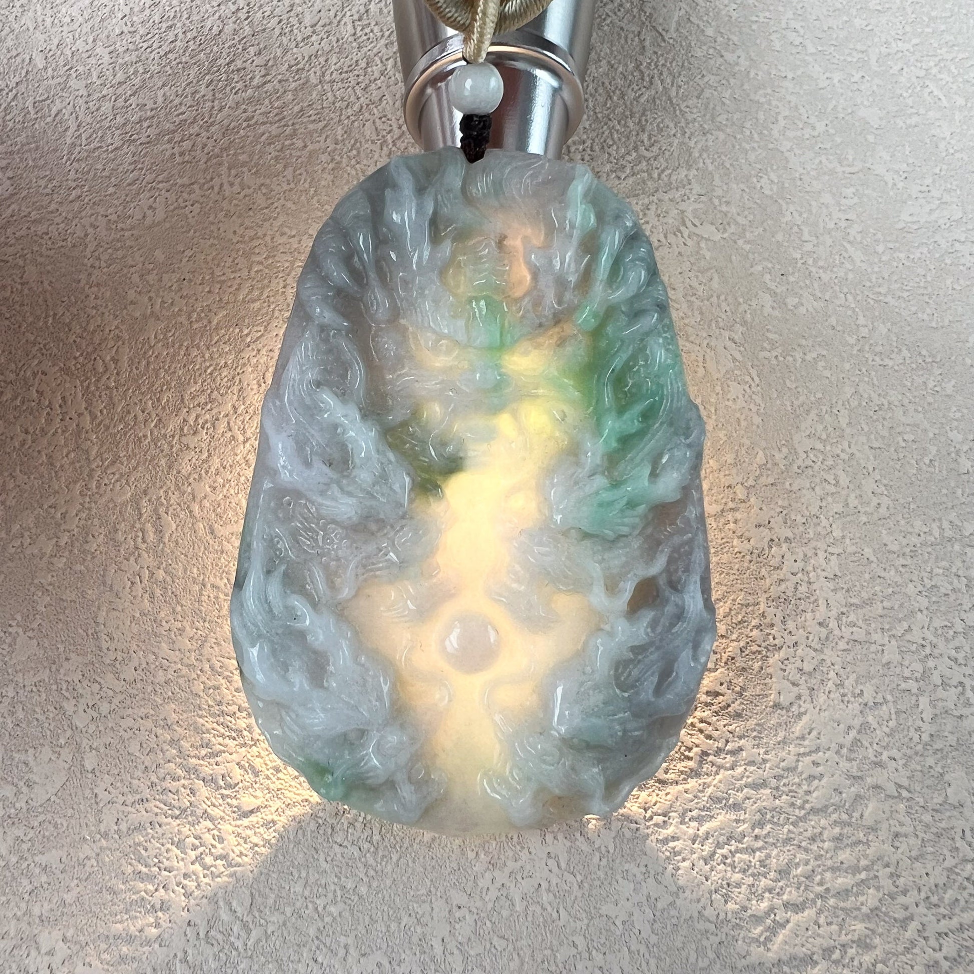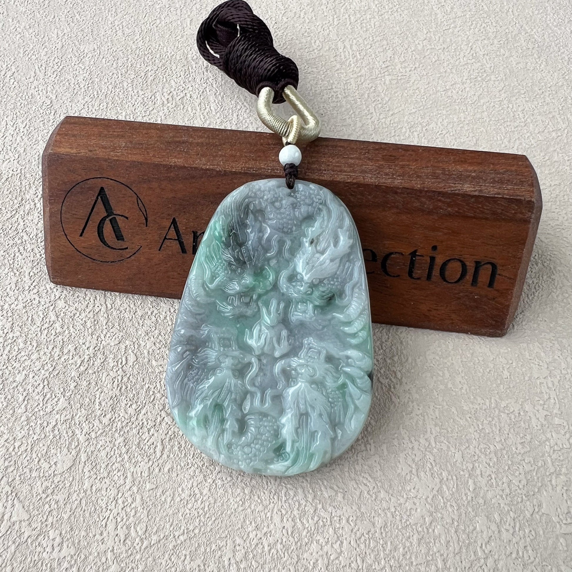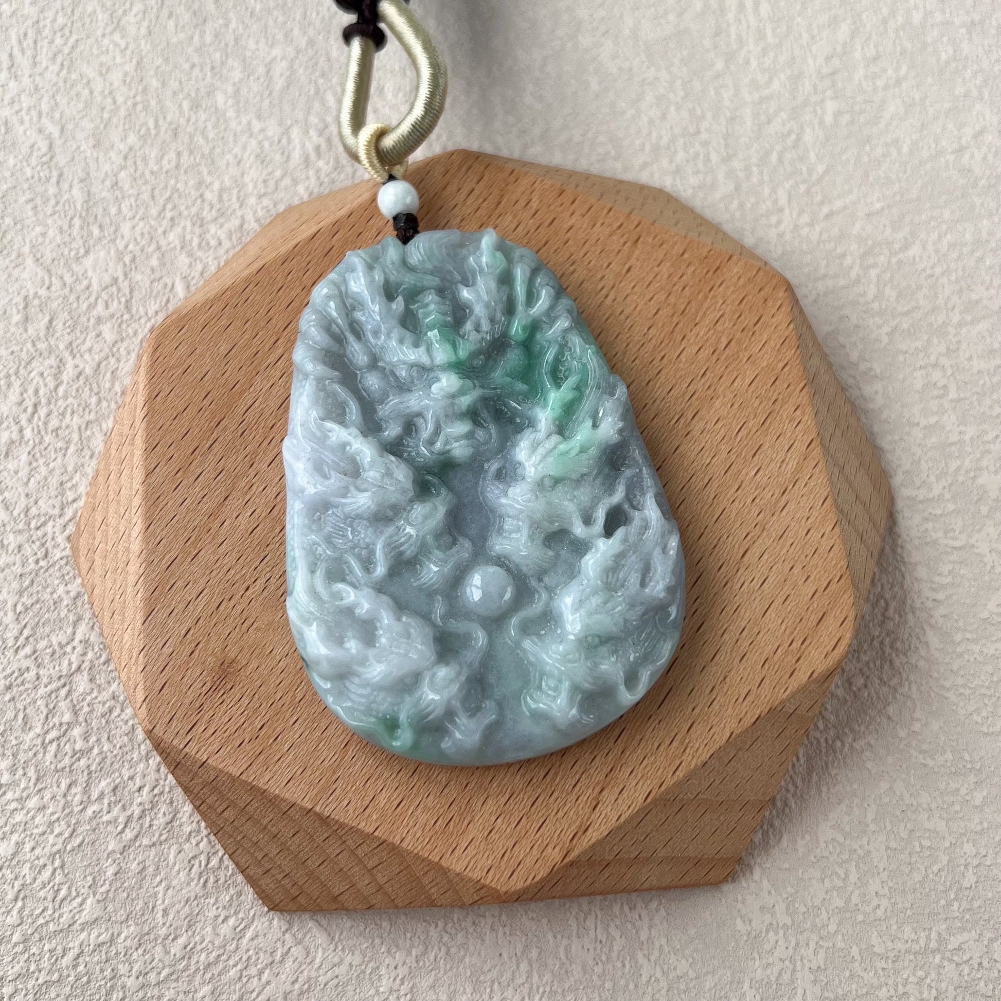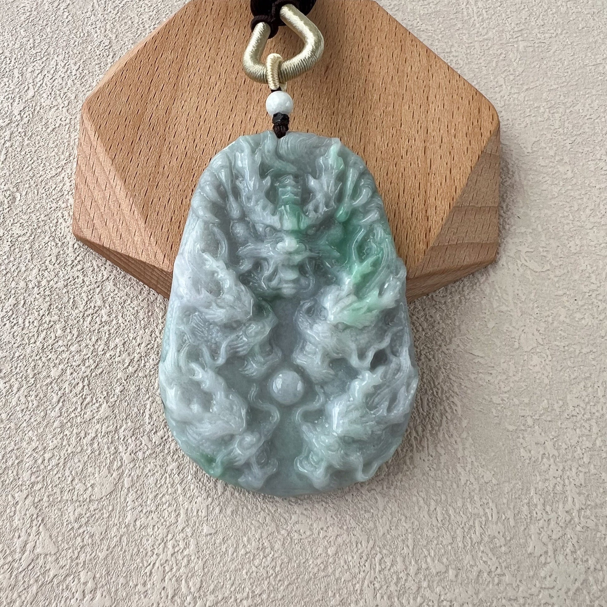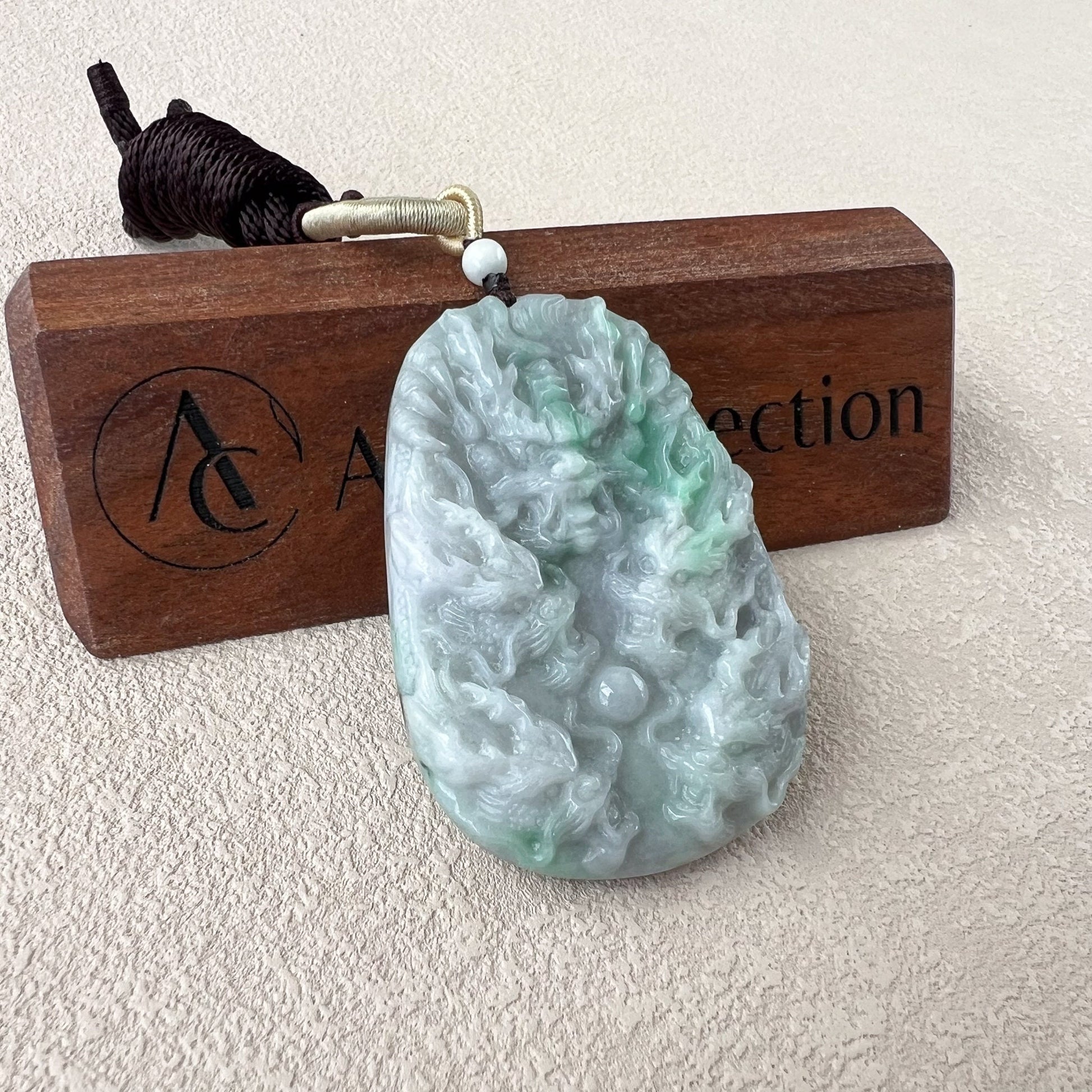 CARVING: This rare dual-sided pendant features five dragons on one side and four on the other, each meticulously detailed to reflect the artist's exceptional skill. The dragon symbolizes strength, protection, and good fortune, and the presence of nine dragons magnifies these qualities, offering amplified protection and auspiciousness to its wearer.
