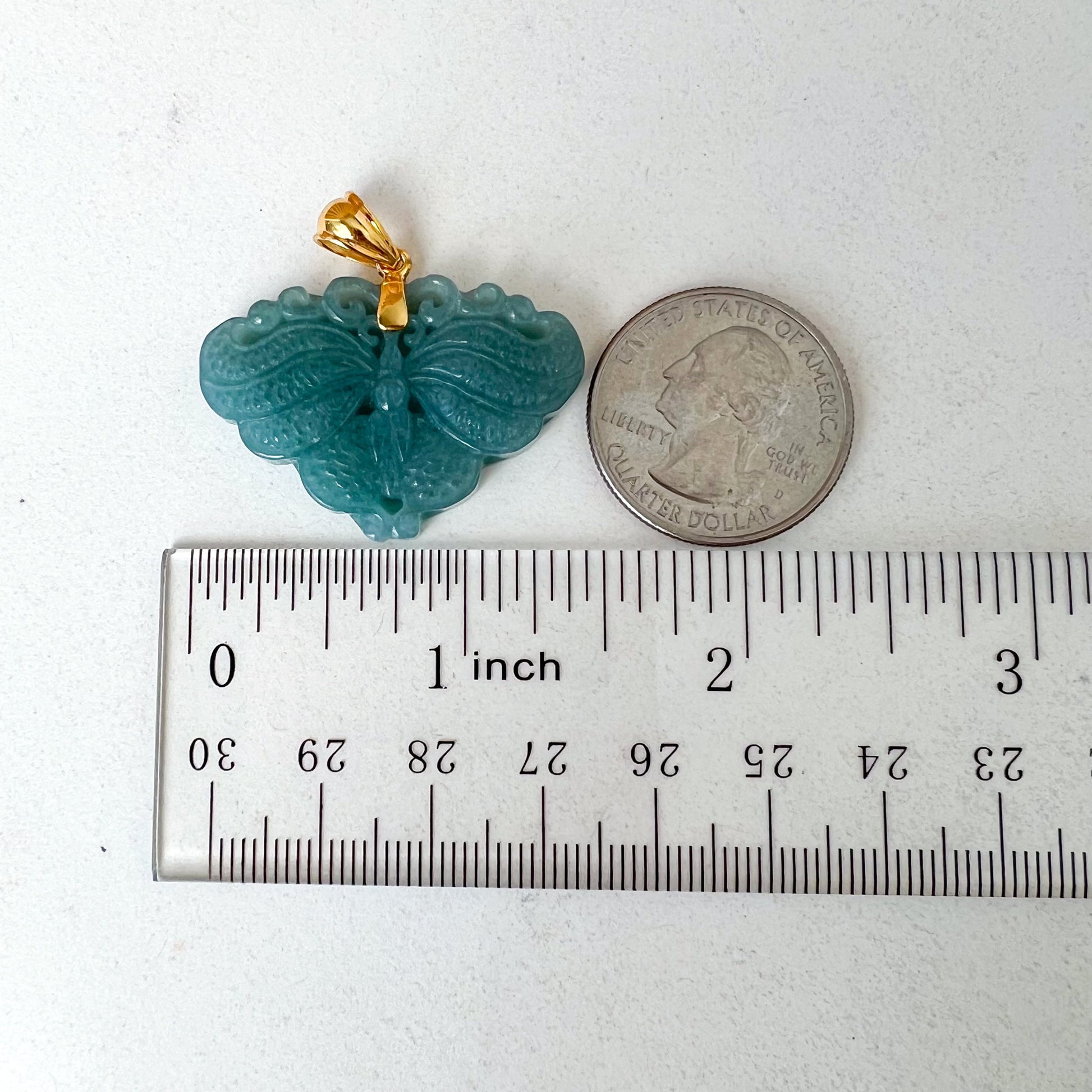 CARVING: This is a beautifully hand carved jade butterfly with 18K solid gold bail.