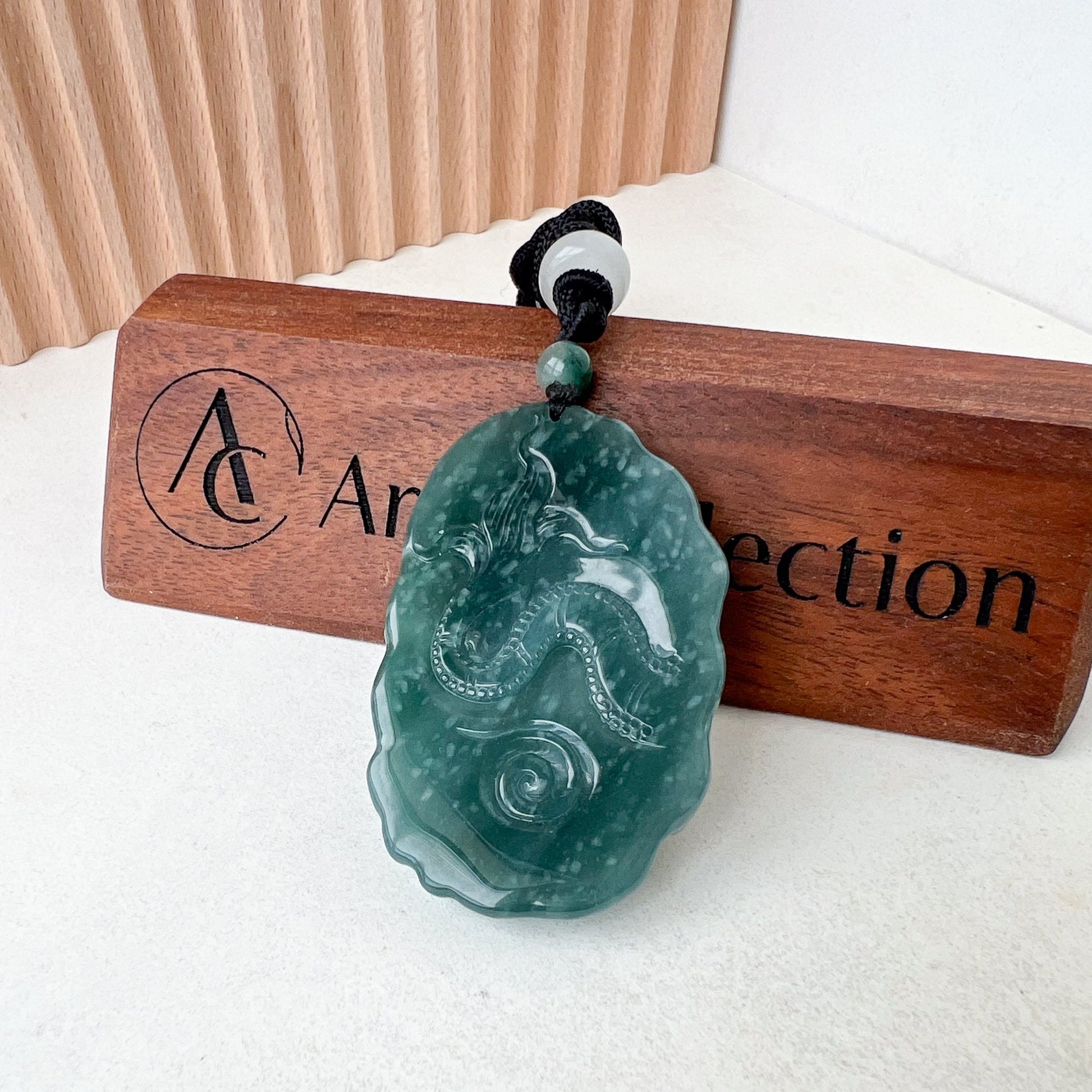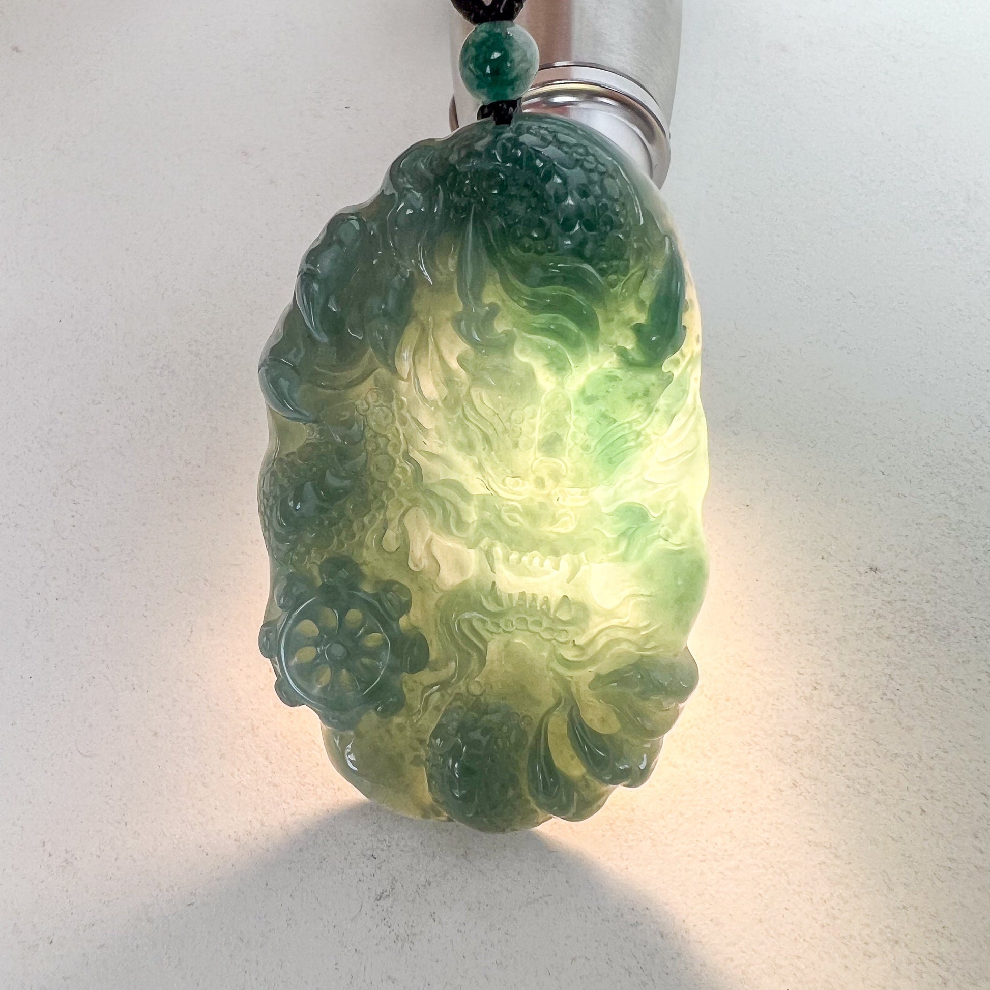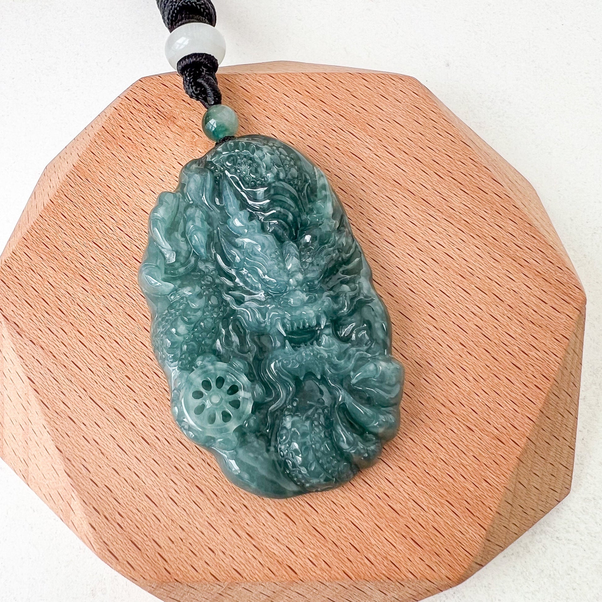 Green Jadeite Jade Dragon Chinese Zodiac Hand Carved Pendant Necklace, Green Blue Jade, XB-0423-0037988