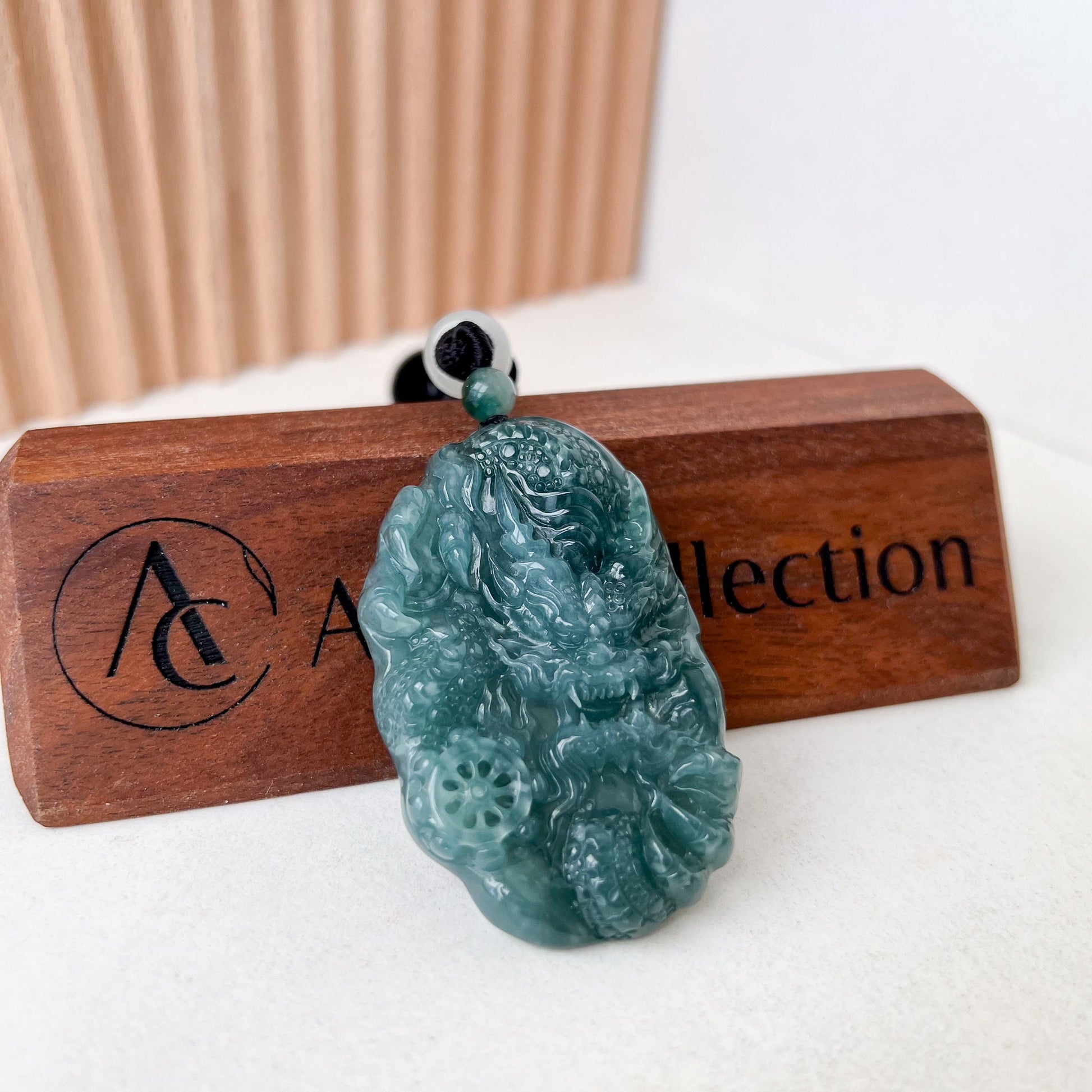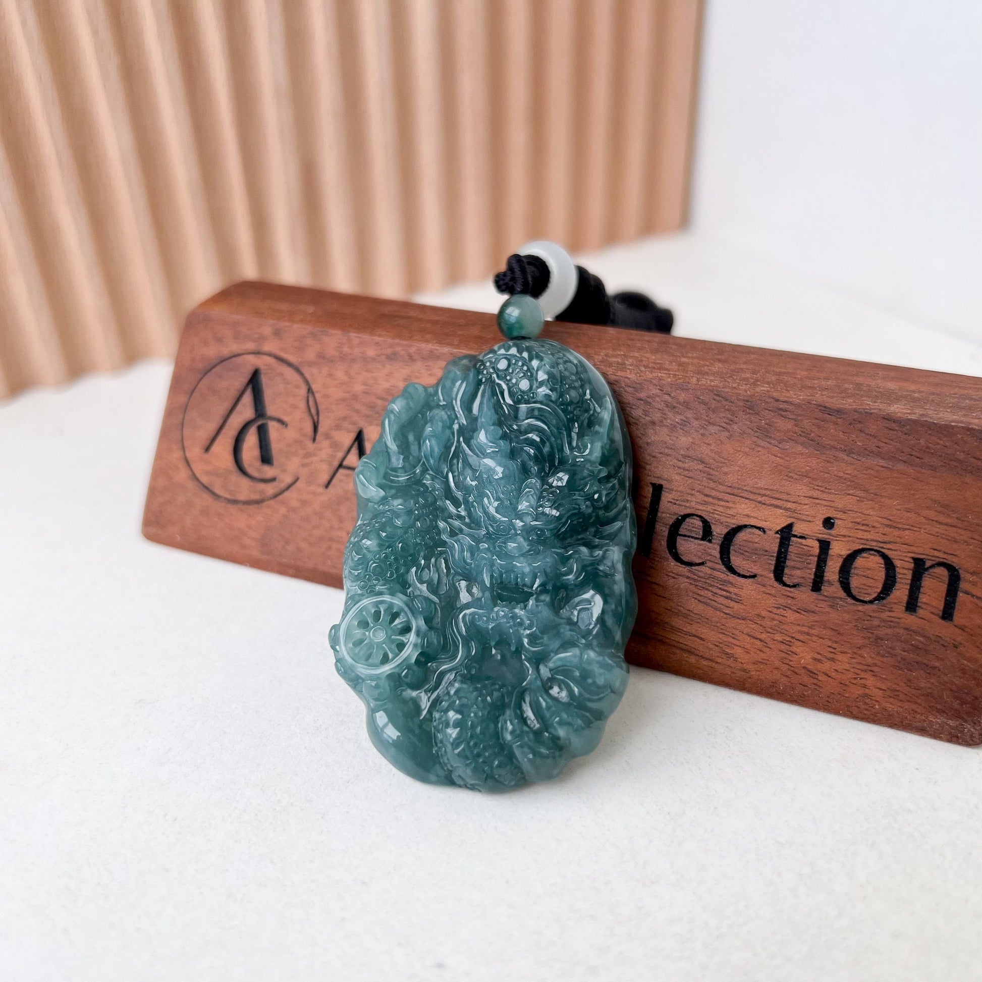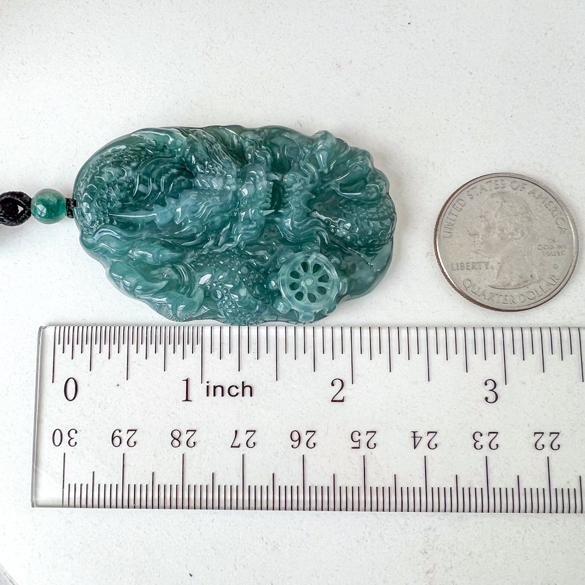 Green Jadeite Jade Dragon Chinese Zodiac Hand Carved Pendant Necklace, Green Blue Jade, XB-0423-0037988