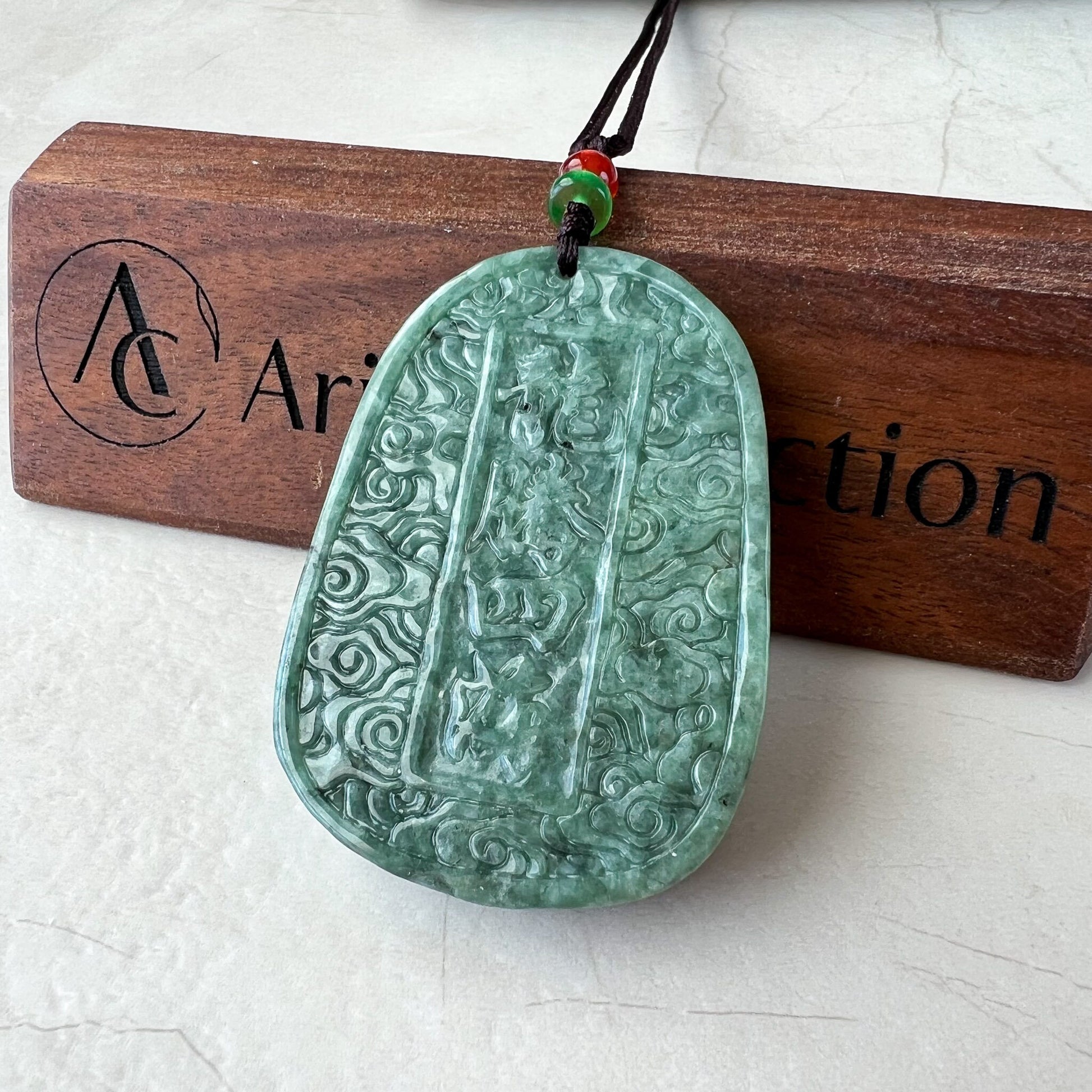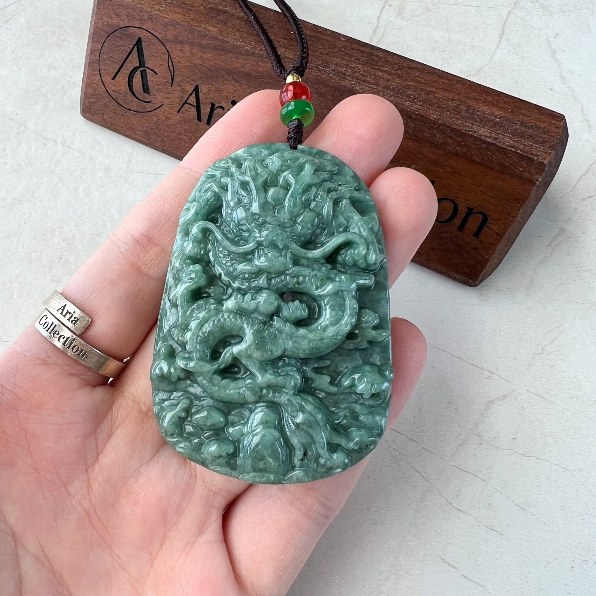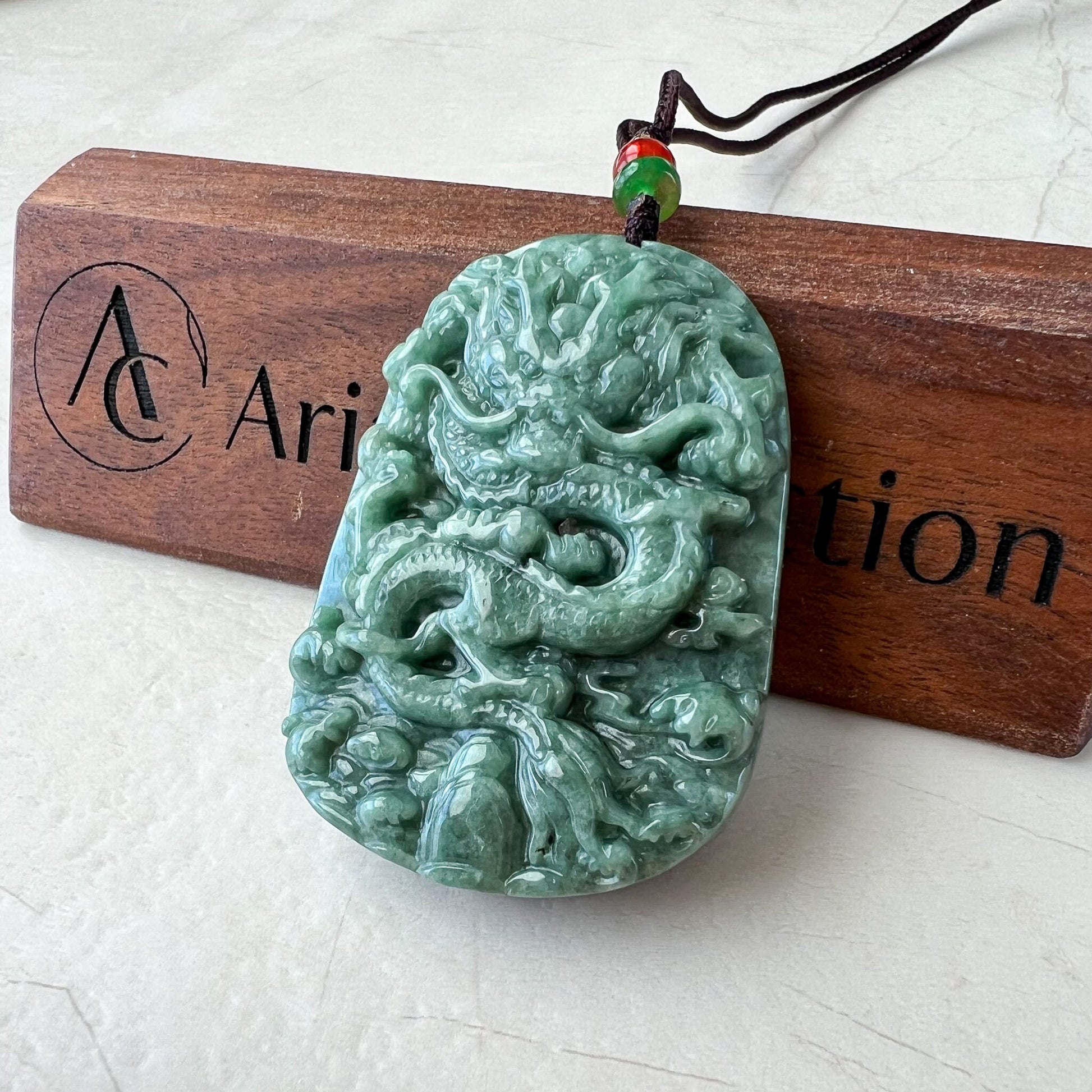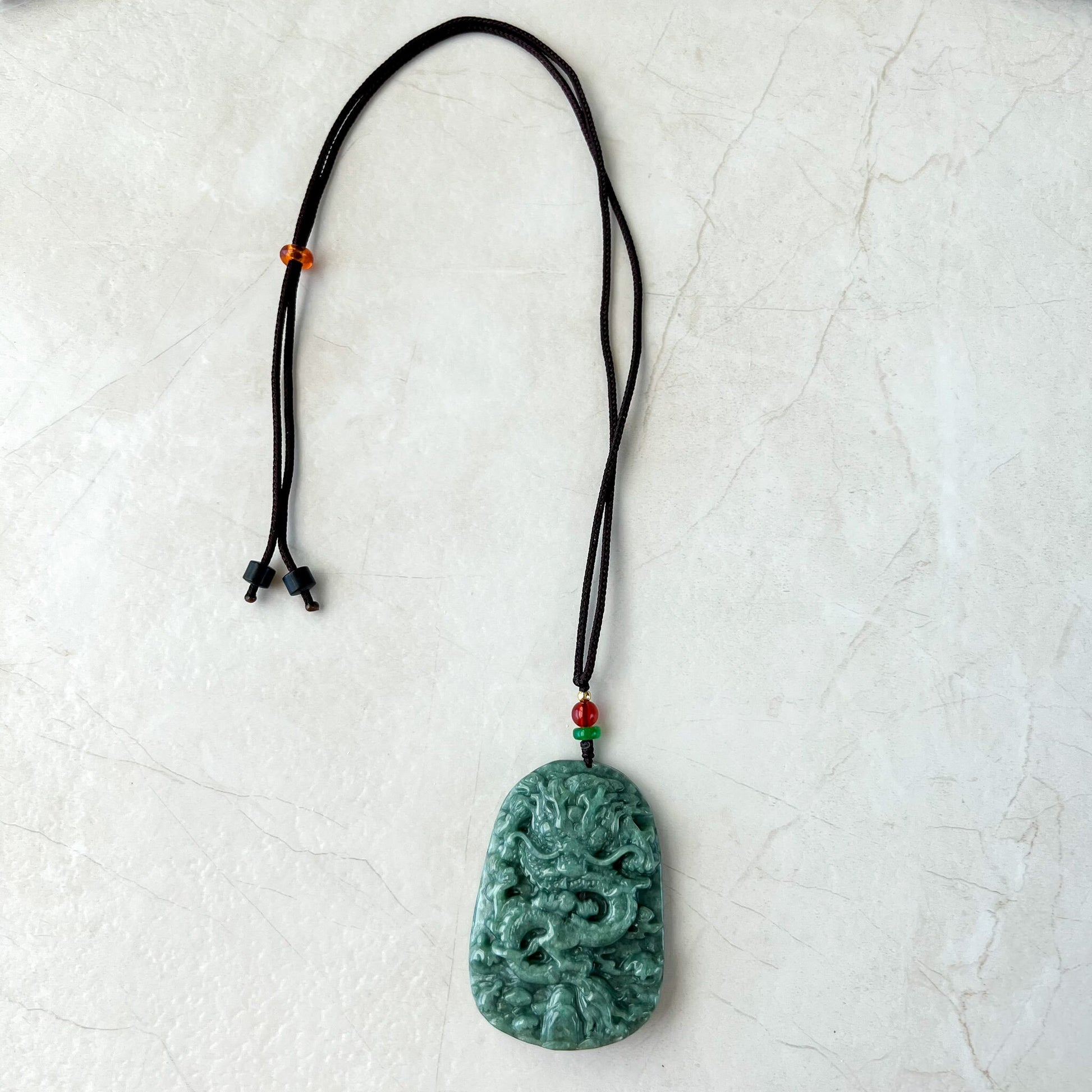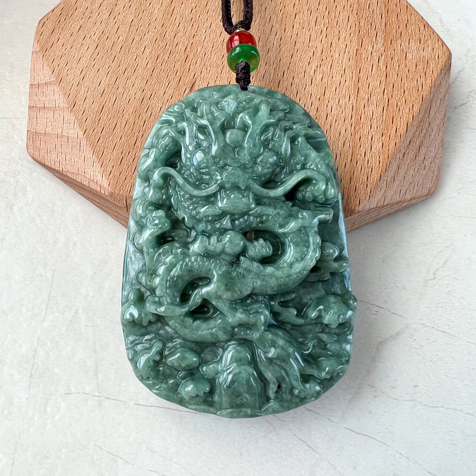 Green Jadeite Jade Dragon Chinese Zodiac Hand Carved Pendant Necklace, SHWQ-1222-1679352202