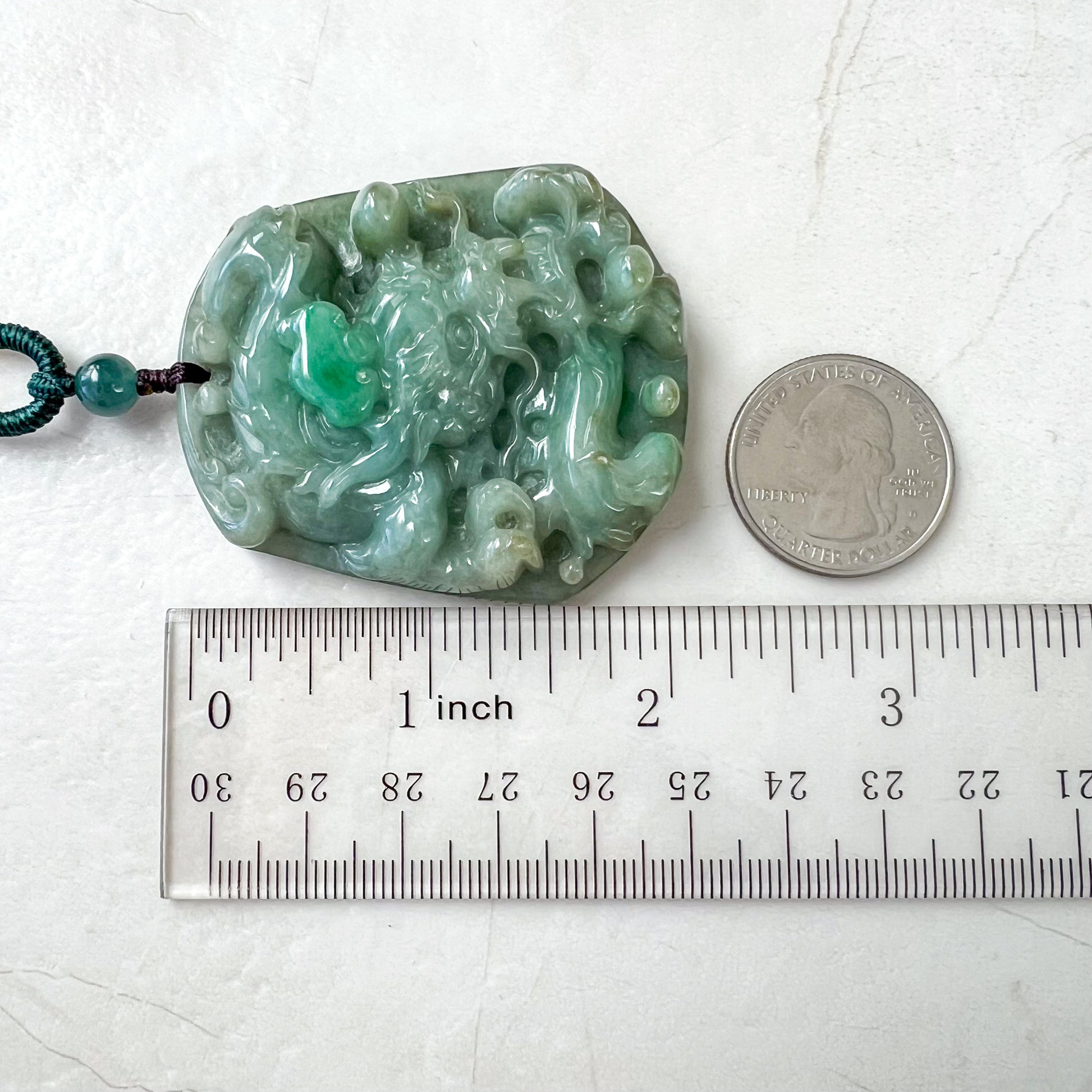 Green Jadeite Jade Dragon Chinese Zodiac Hand Carved Pendant Necklace, YJ-0321-0323319