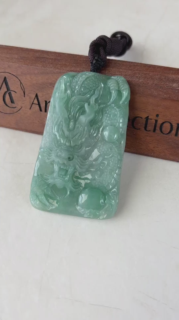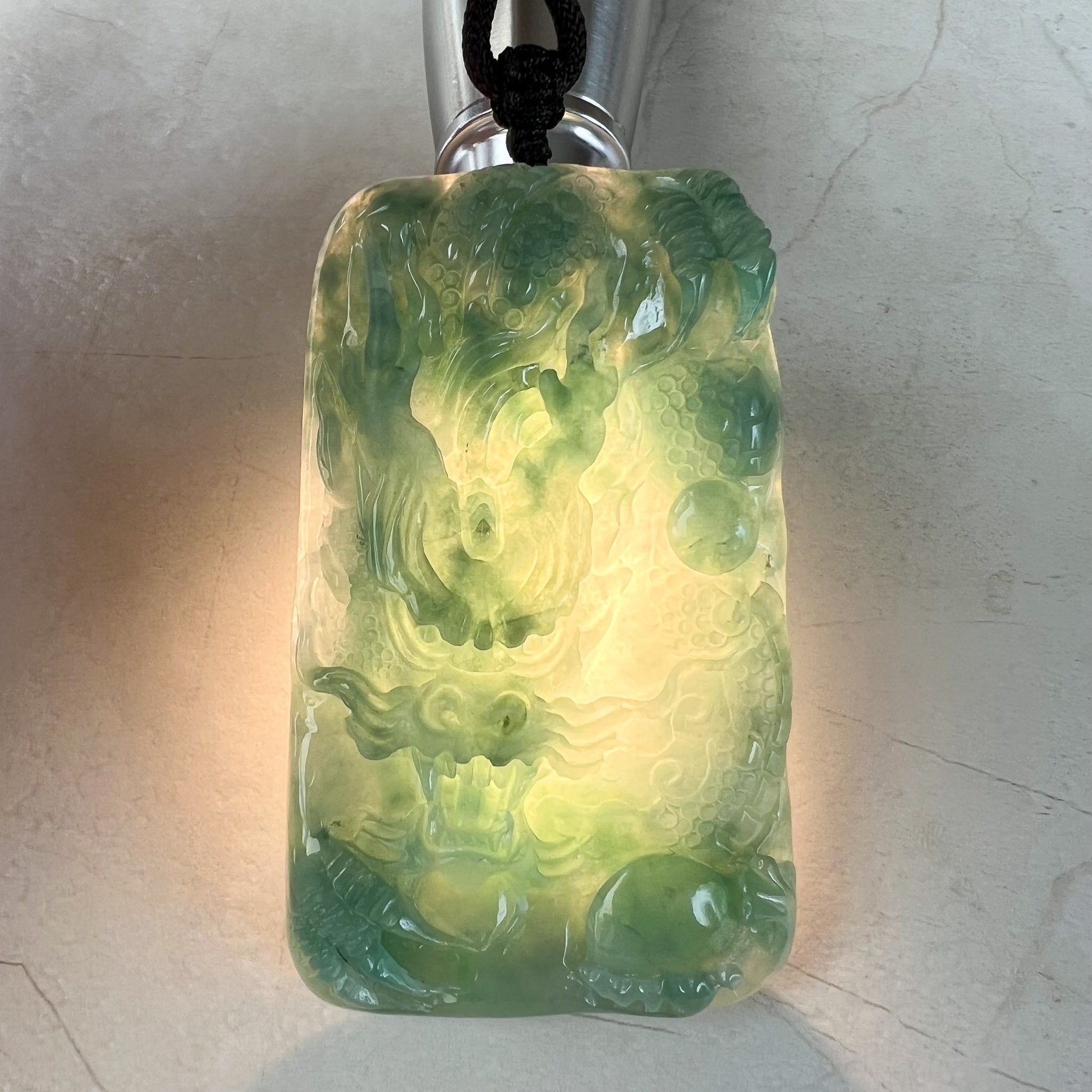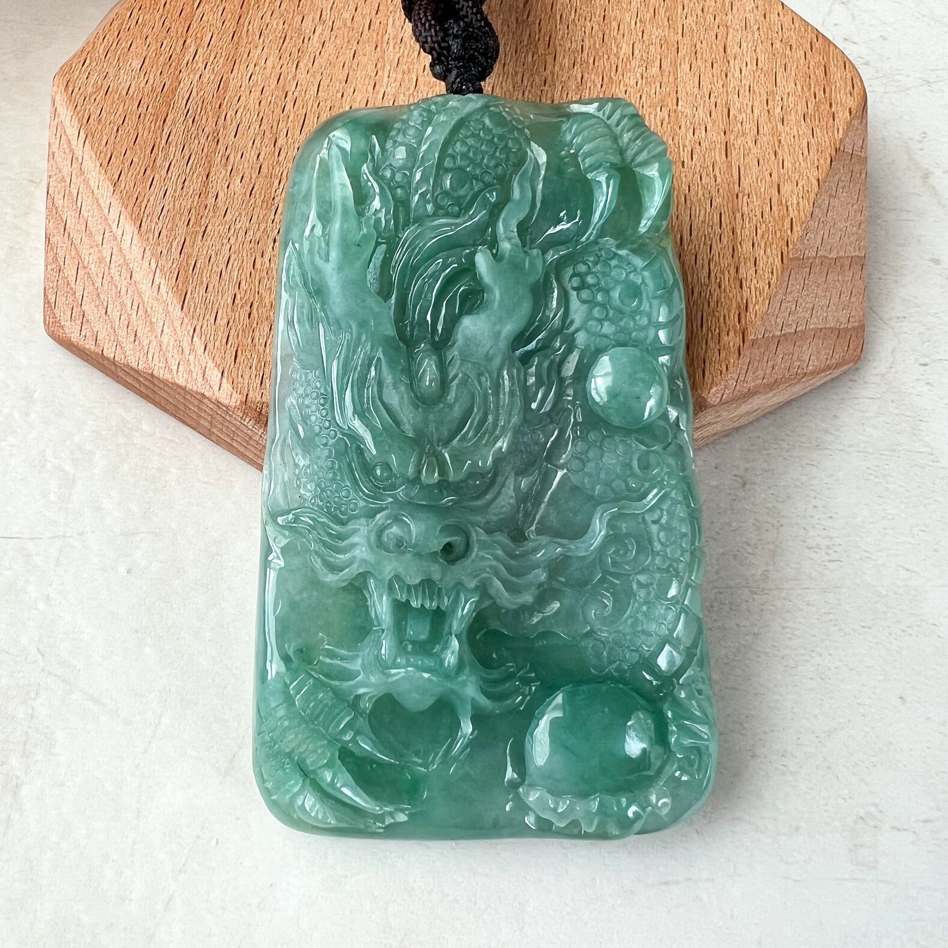 CARVING: The pendant is carved in the form of the Chinese Zodiac - Dragon. It is absolutely stunning hand carving, you can see the details of the dragon scales. You can see the dragon tail, claws, and face with exquisite carving details. A very catching piece! This piece will certainly make an impression!