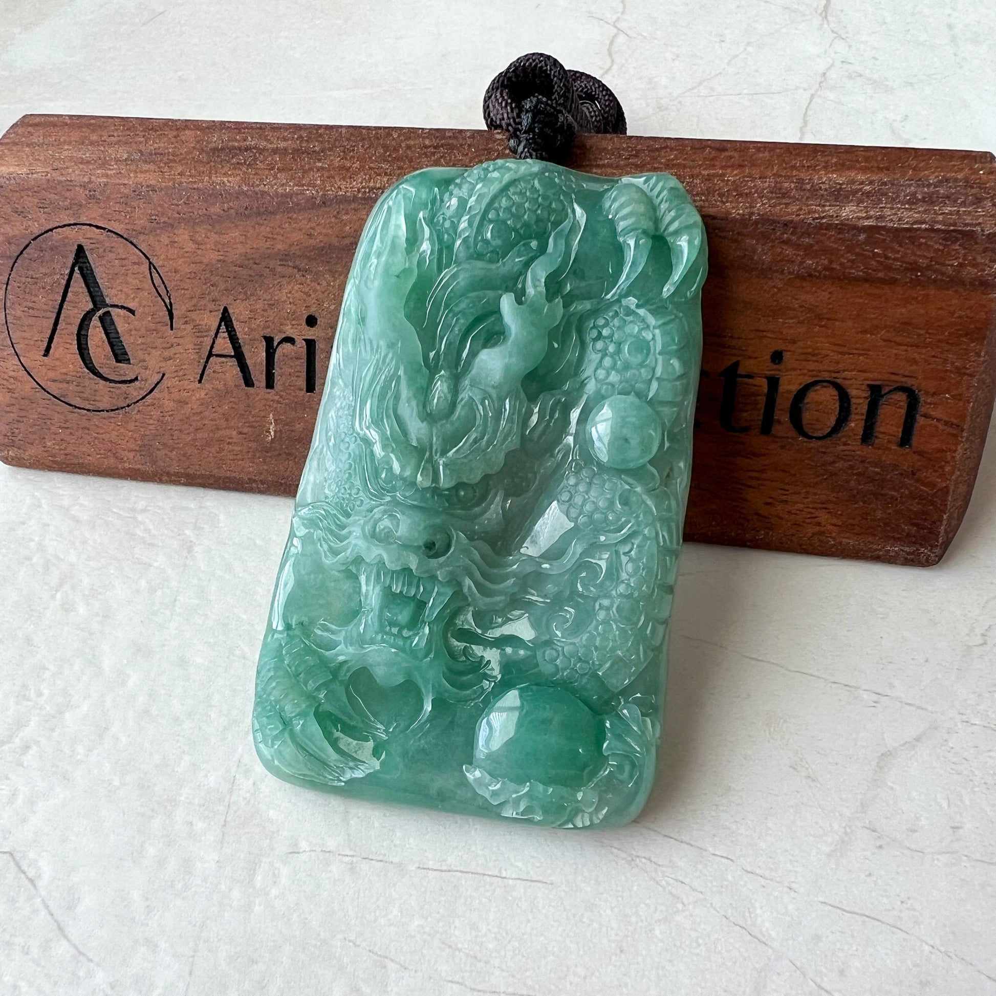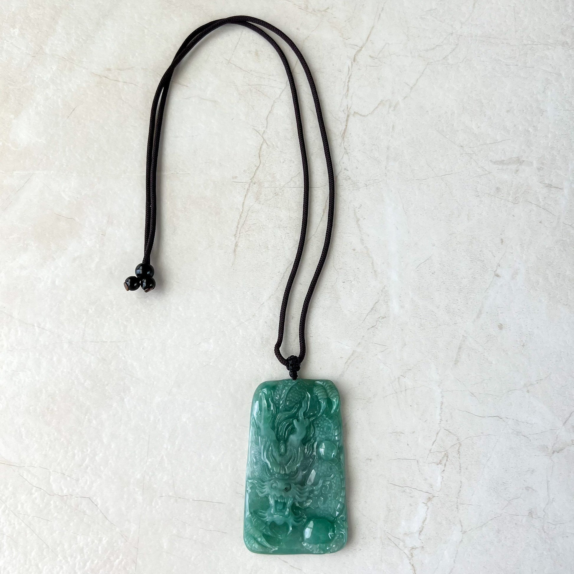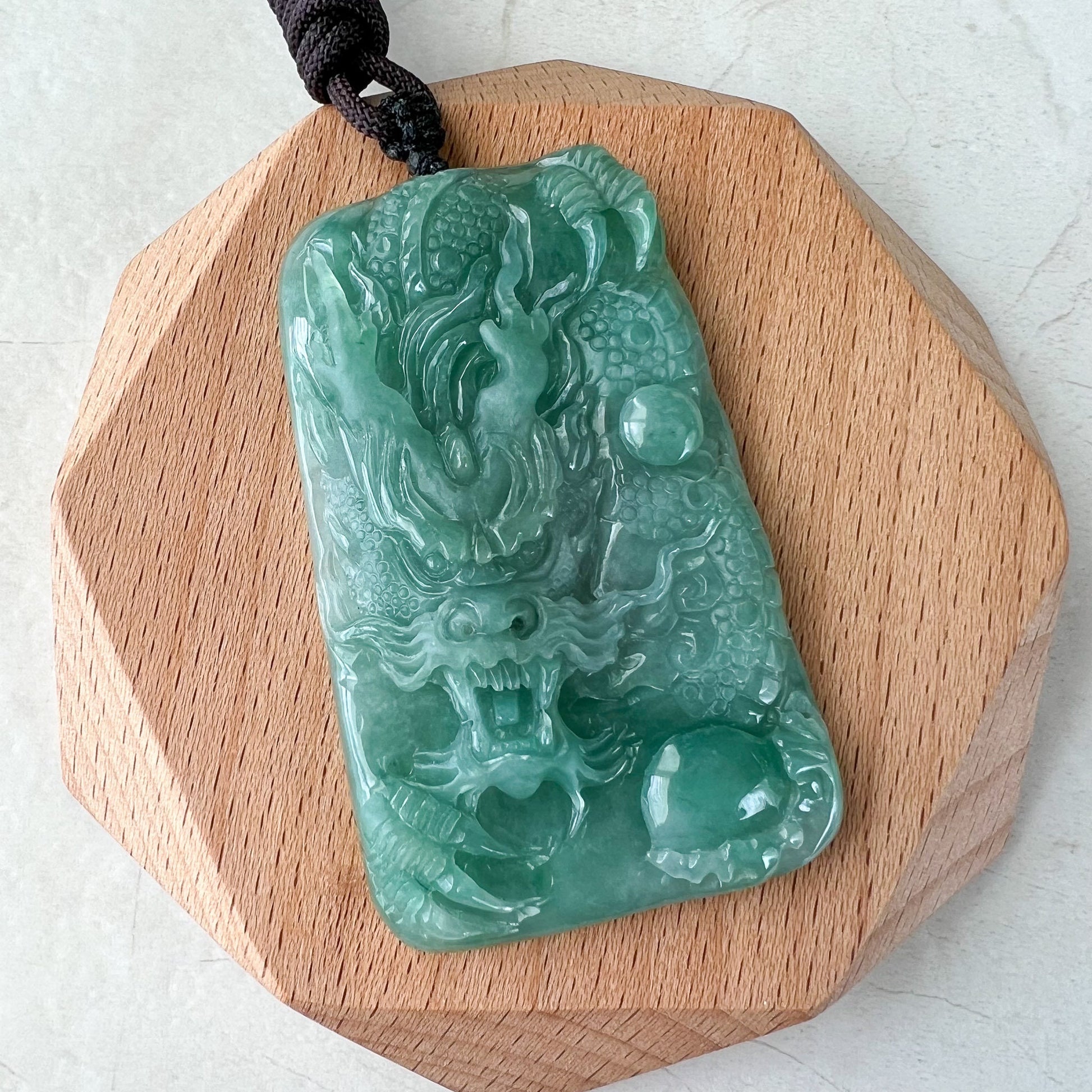 Green Jadeite Jade Dragon Chinese Zodiac Hand Carved Pendant Necklace, YJ-1222-0092394