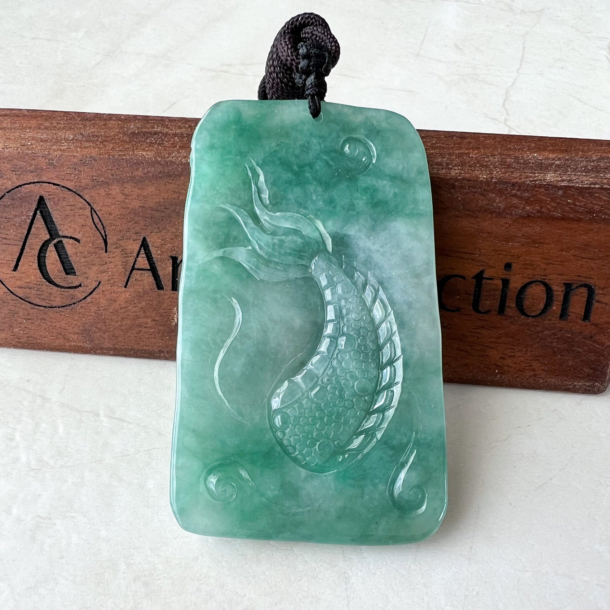 NATURAL JADE: This is a high grade jadeite jade pendant necklace. It is exquisitely hand carved, so it is one of a kind! The pendant is completely natural jade, un-dyed and in its natural form.