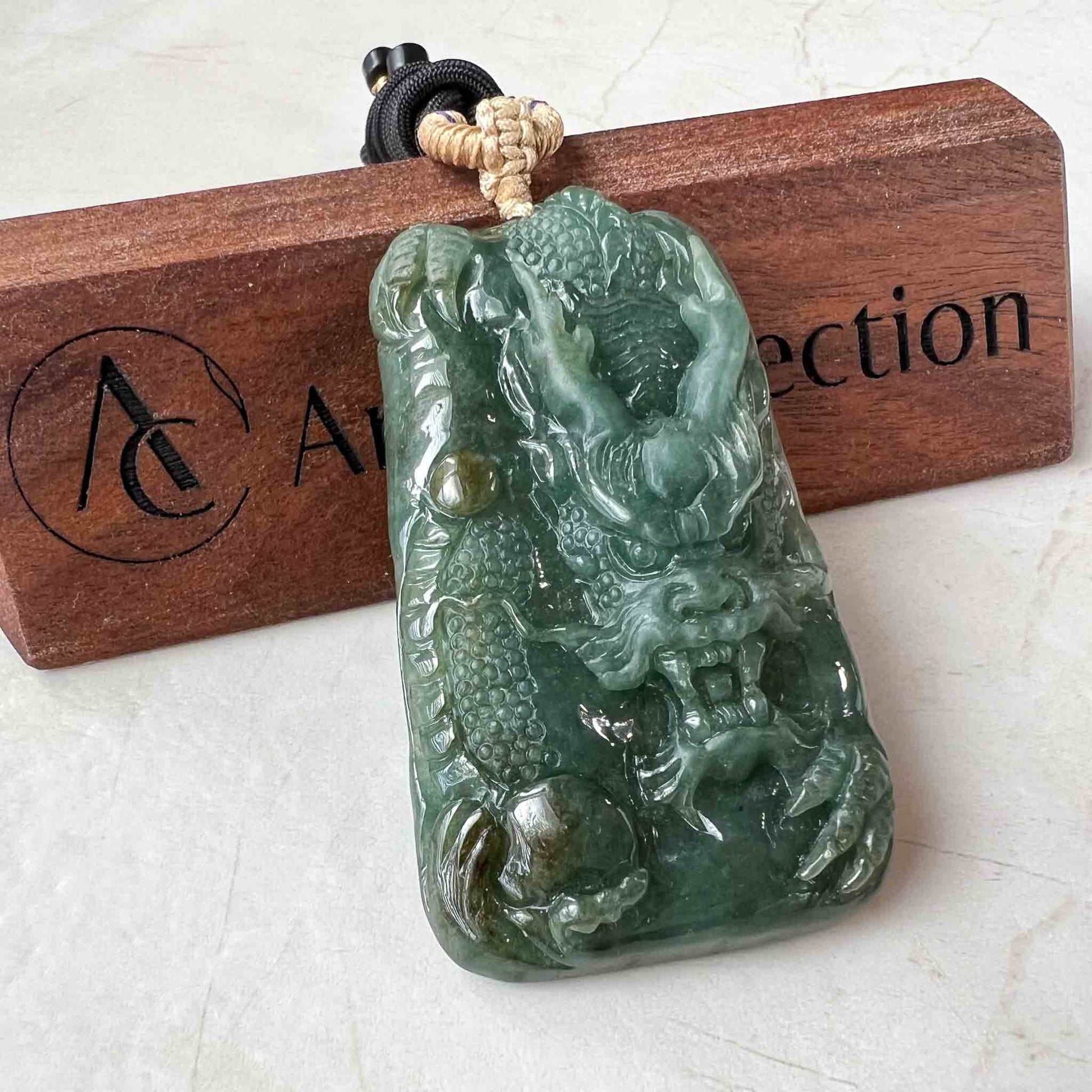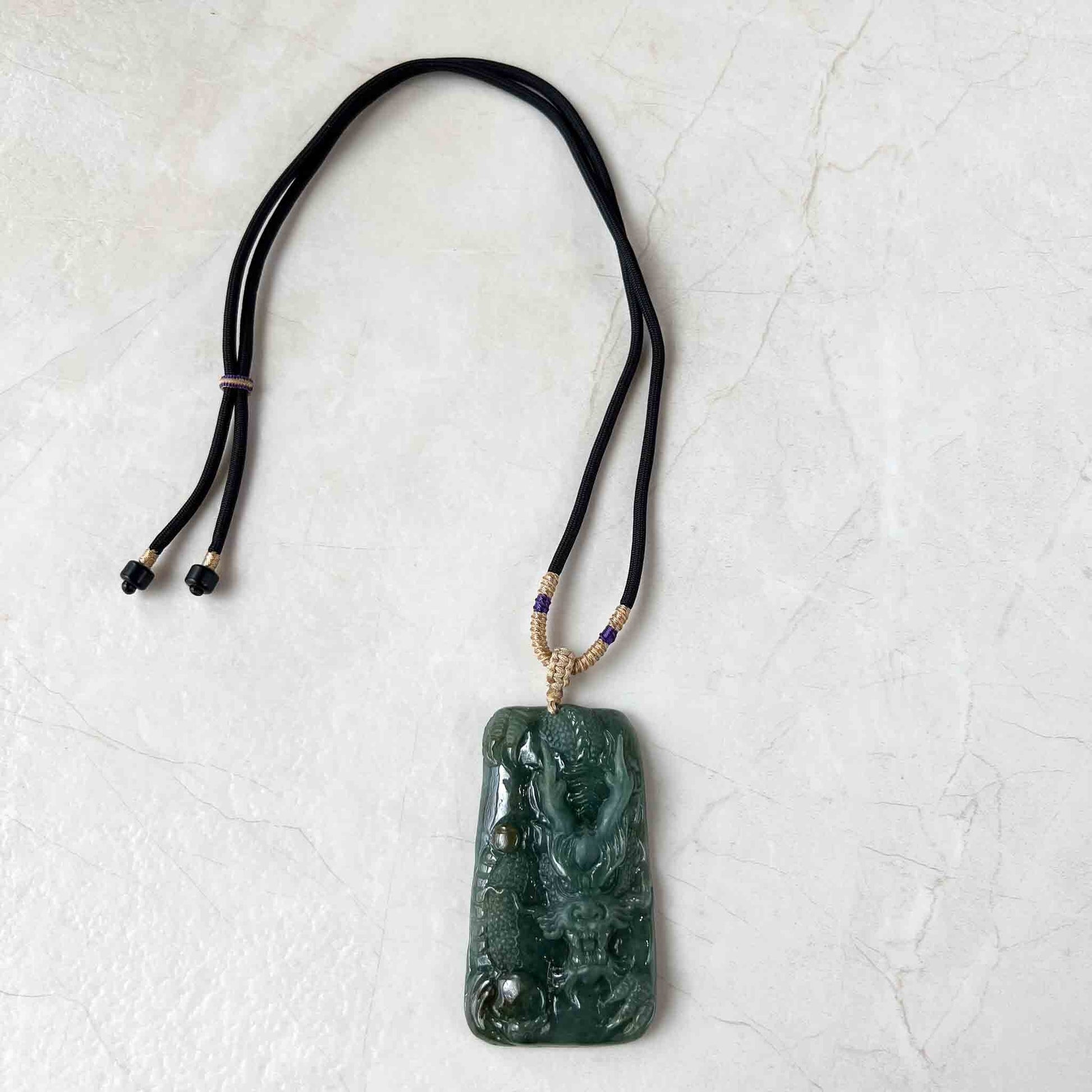 Green Jadeite Jade Dragon Chinese Zodiac Hand Carved Pendant Necklace, YJ-1222-0098069