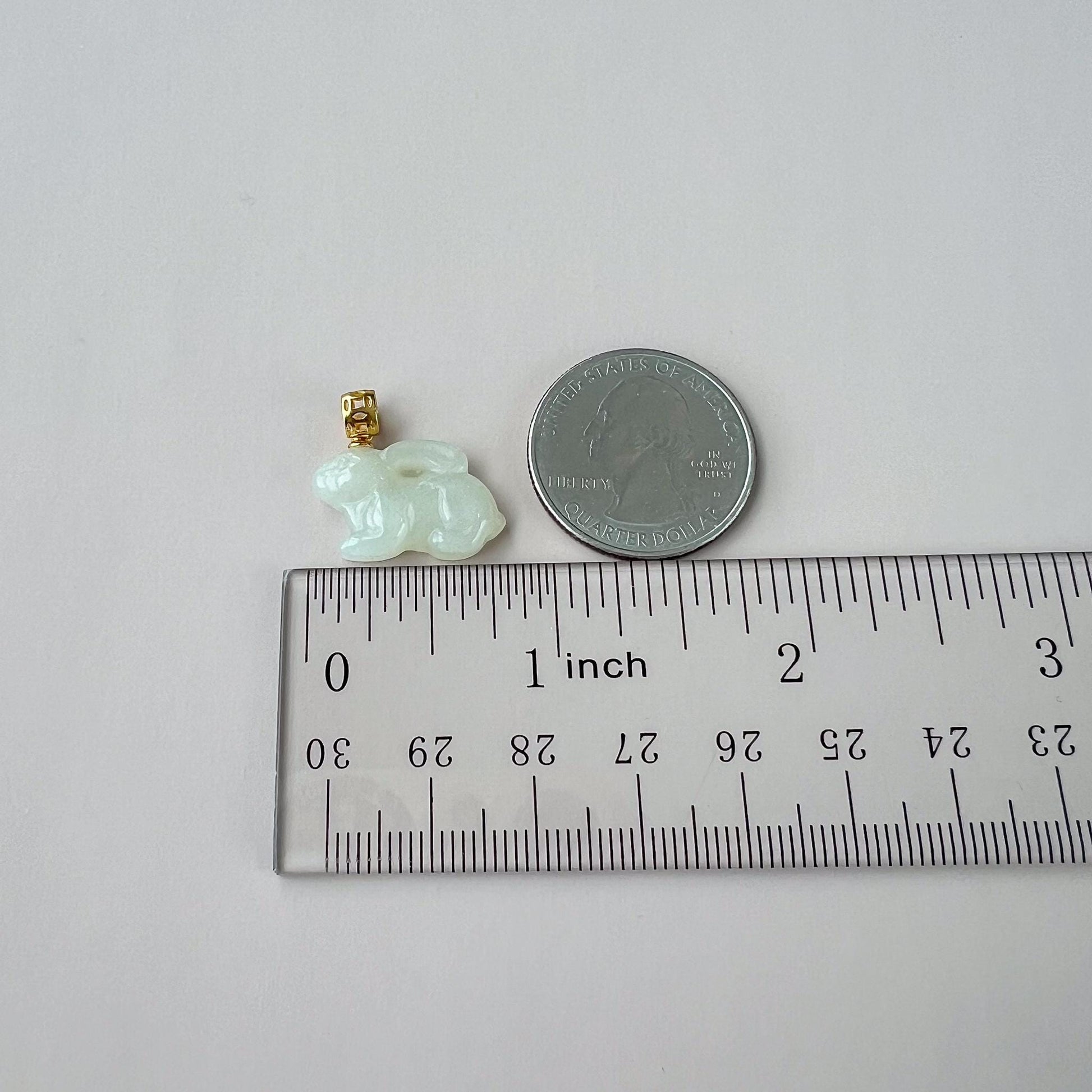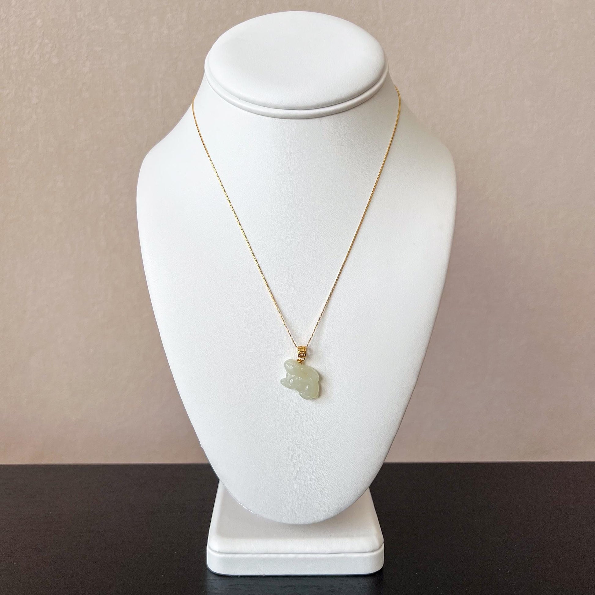 Harmony Rabbit Jade Pendant, Nephrite Jade Bunny Pendant with Gold Plated Sterling Silver, JSY-1025-3076