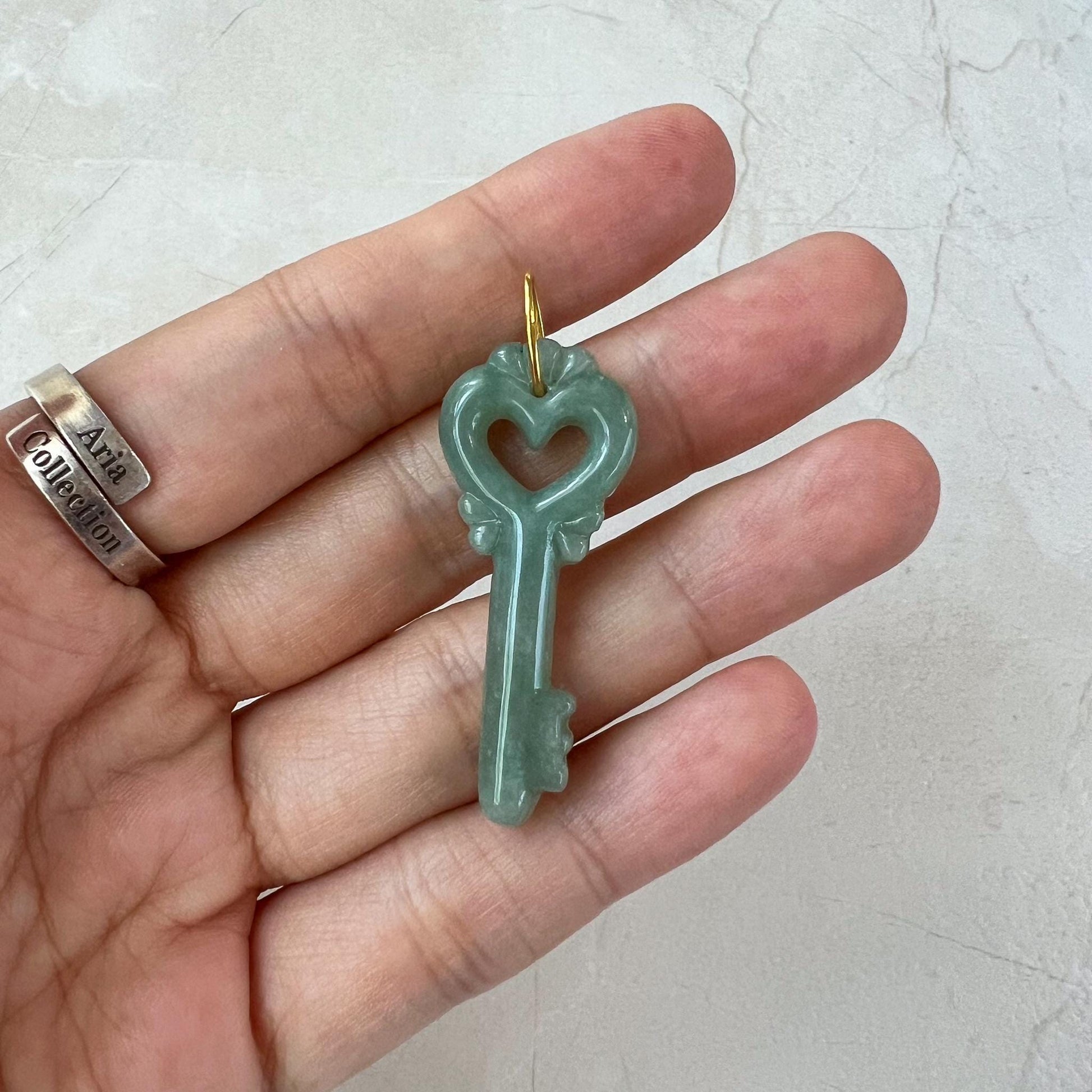 Jade Heart Key Pendant with 18K Gold, YO-0424-1722862470