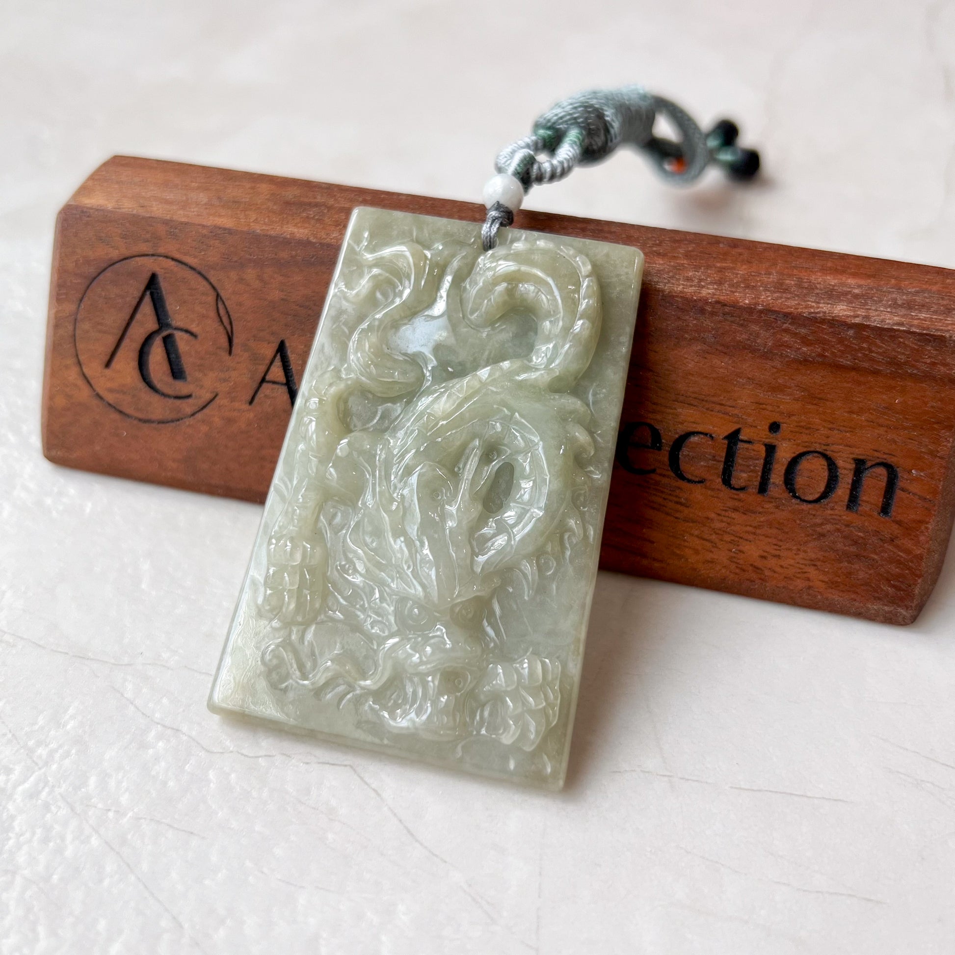 CARVING: The pendant is carved in the form of the Chinese Zodiac - Dragon. It is absolutely stunning hand carving, you can see the details of the dragon scales. You can see the dragon tail, claws, and face with exquisite carving details. A very catching piece! This piece will certainly make an impression!