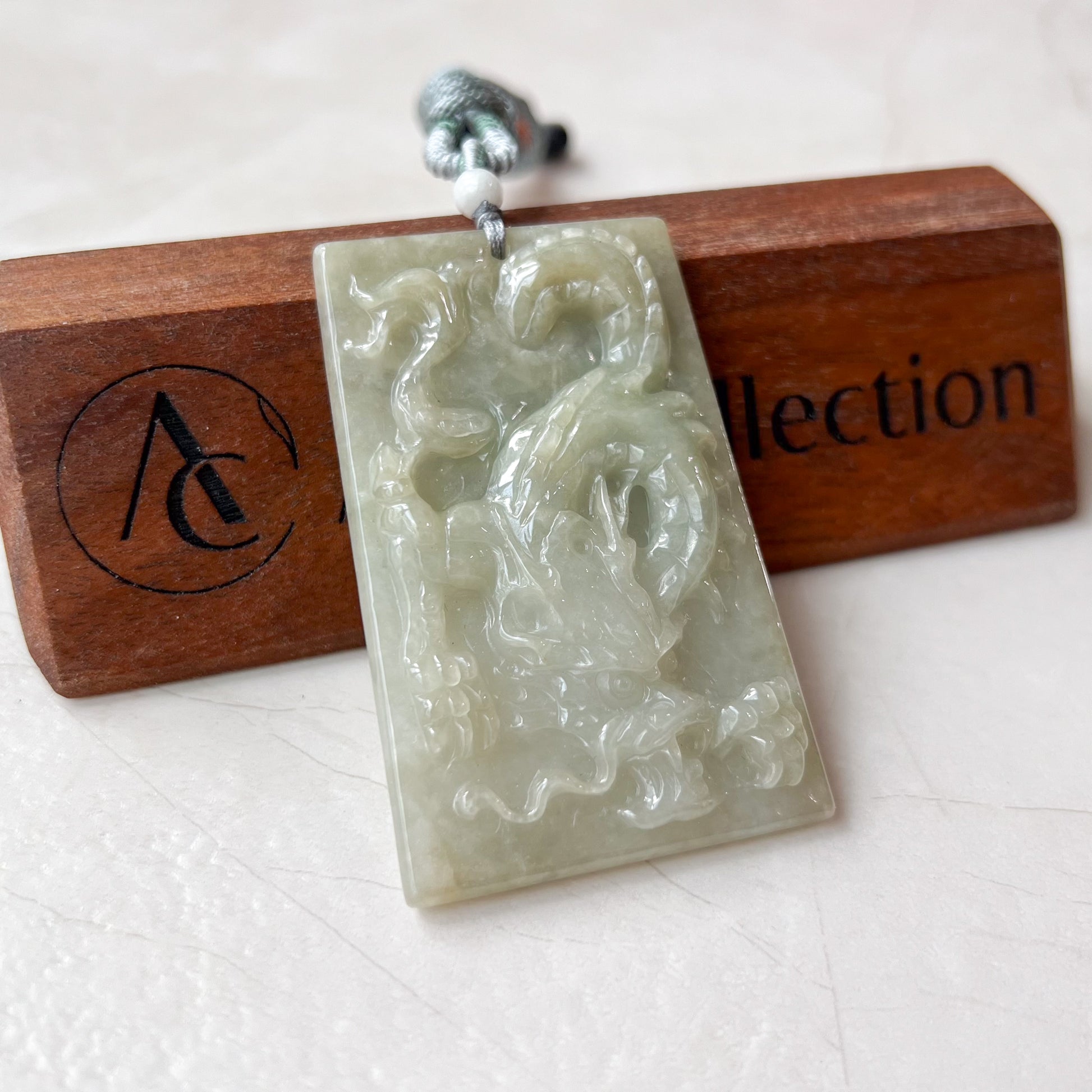 Jadeite Jade Dragon Chinese Zodiac Hand Carved Pendant Necklace, YJ-0321-0339672
