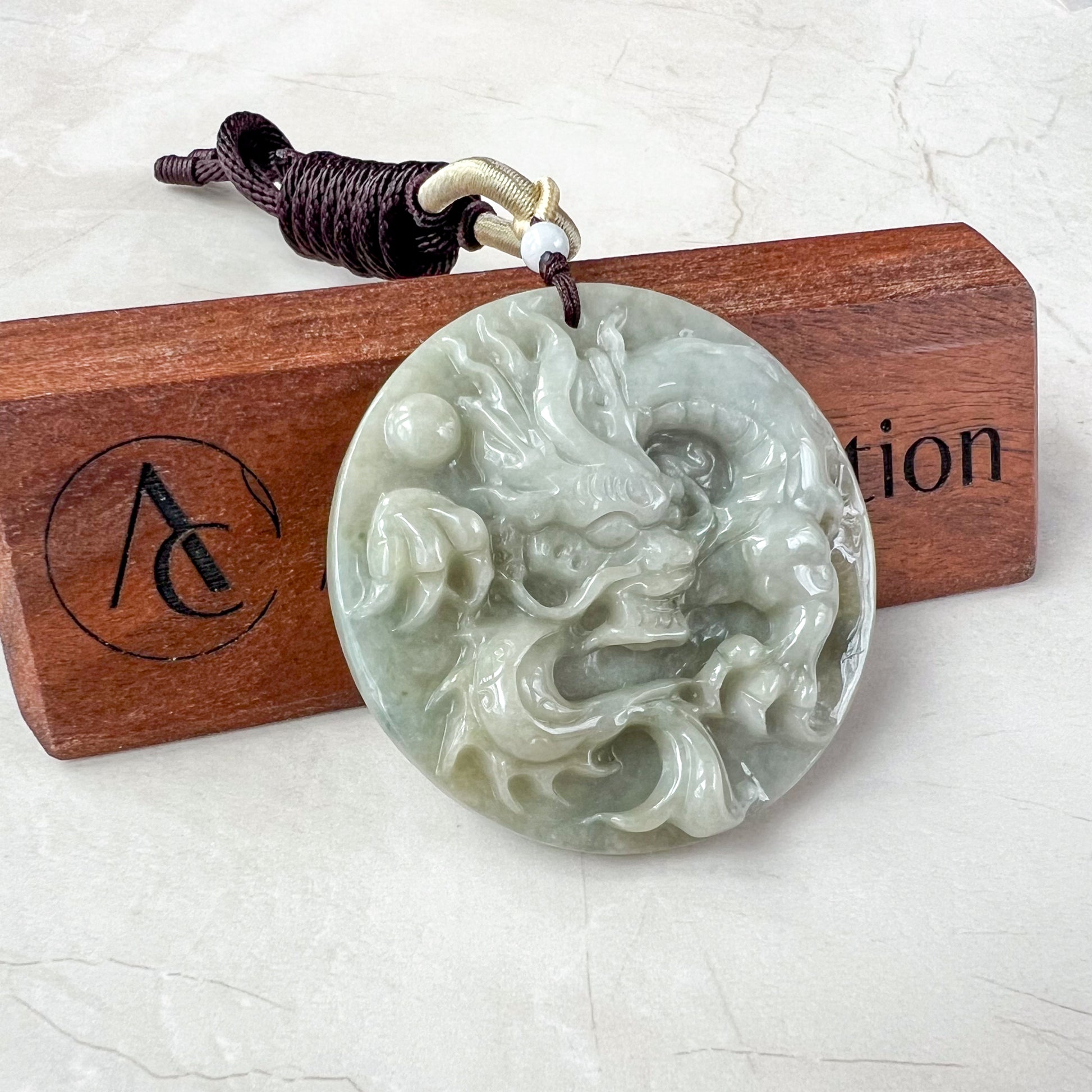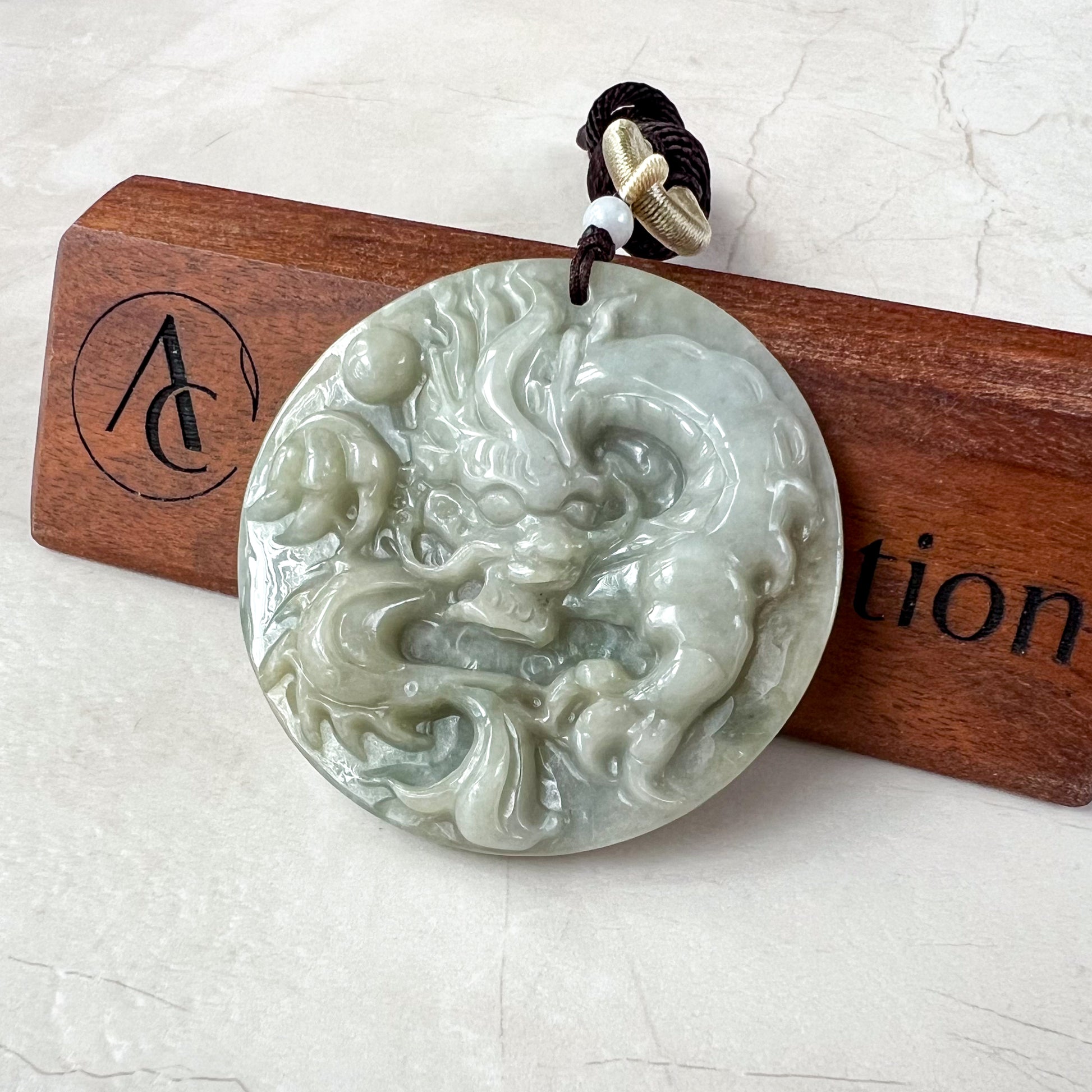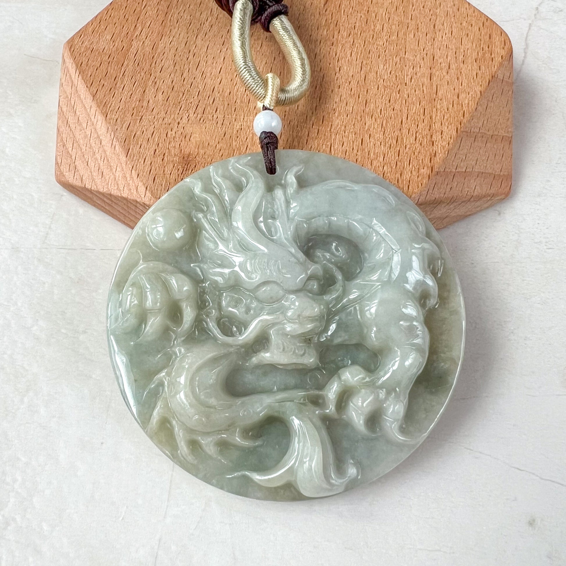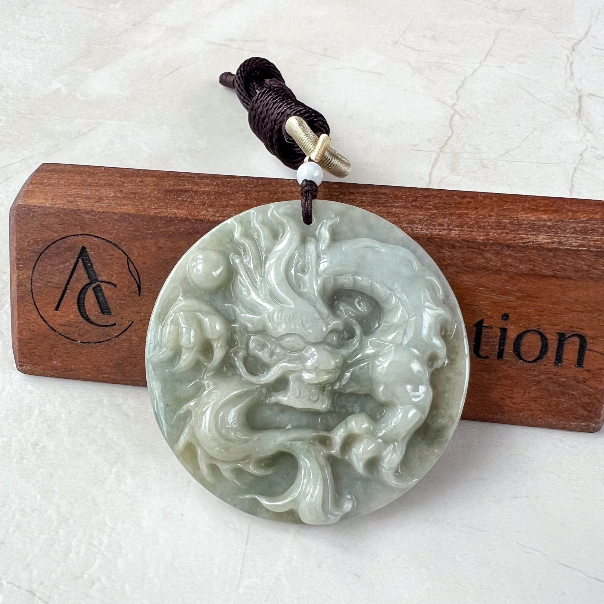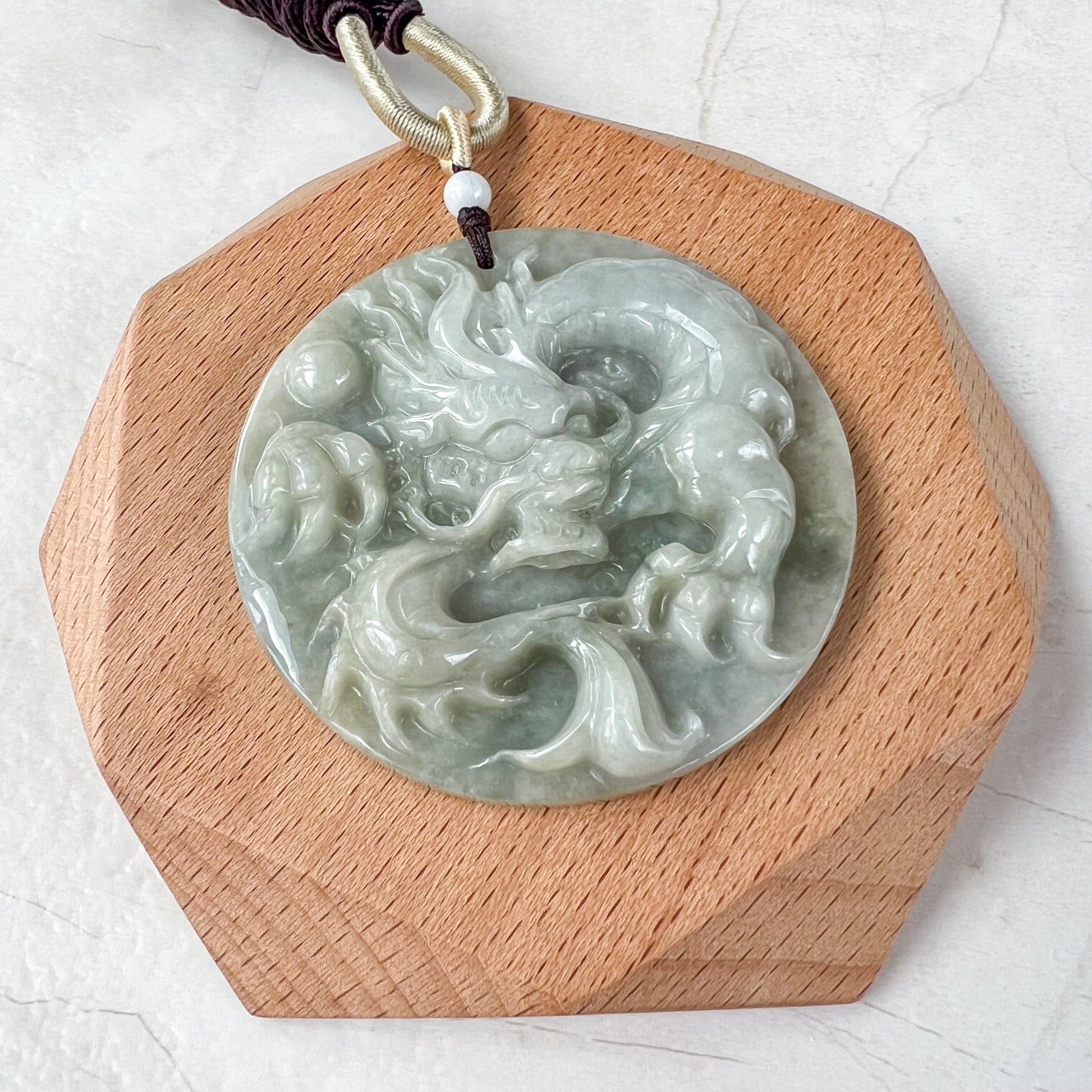 CARVING: The pendant is carved in the form of the Chinese Zodiac - Dragon. It is absolutely stunning hand carving, you can see the details of the dragon scales. You can see the dragon tail, claws, and face with exquisite carving details. A very catching piece! This piece will certainly make an impression!