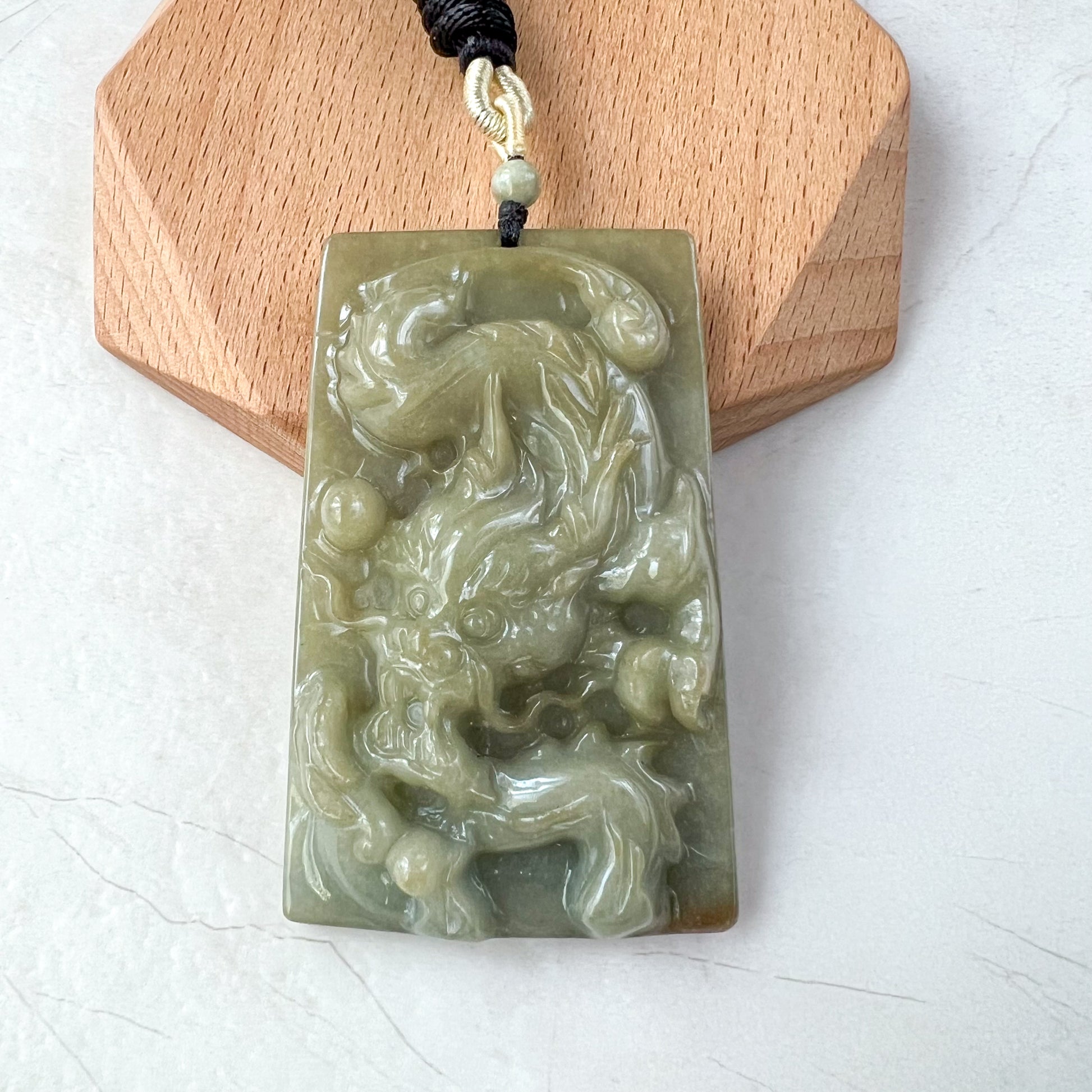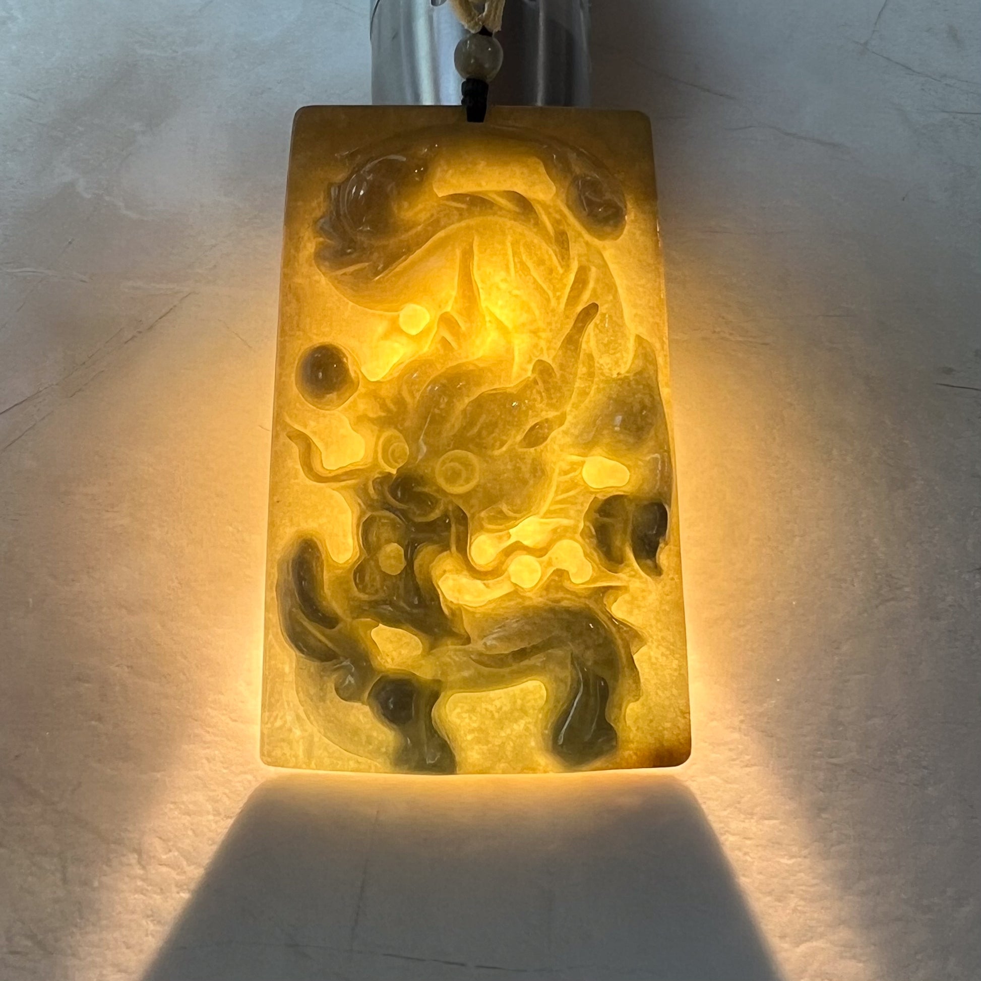CARVING: The pendant is carved in the form of the Chinese Zodiac - Dragon. It is absolutely stunning hand carving, you can see the details of the dragon scales. You can see the dragon tail, claws, and face with exquisite carving details. A very catching piece! This piece will certainly make an impression!