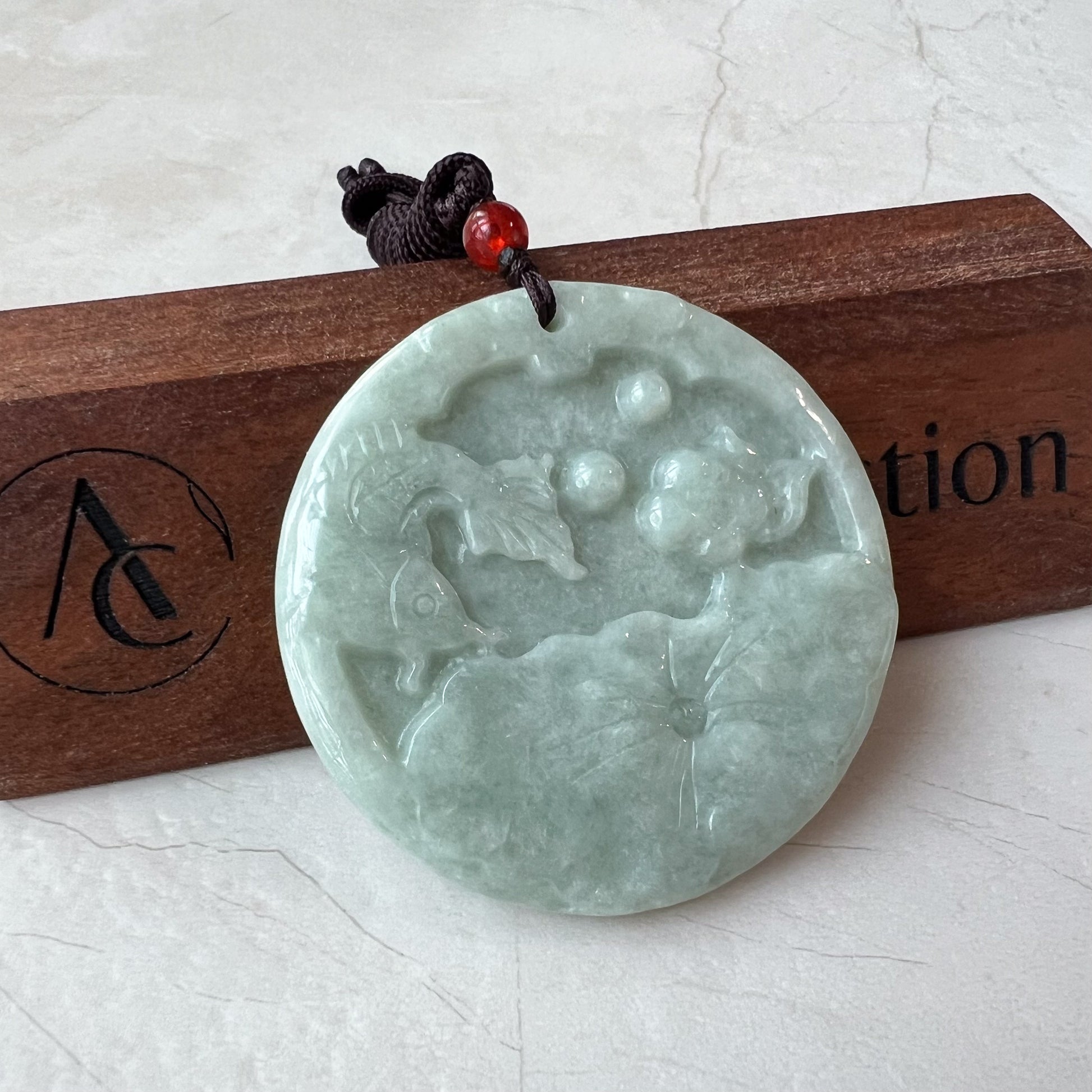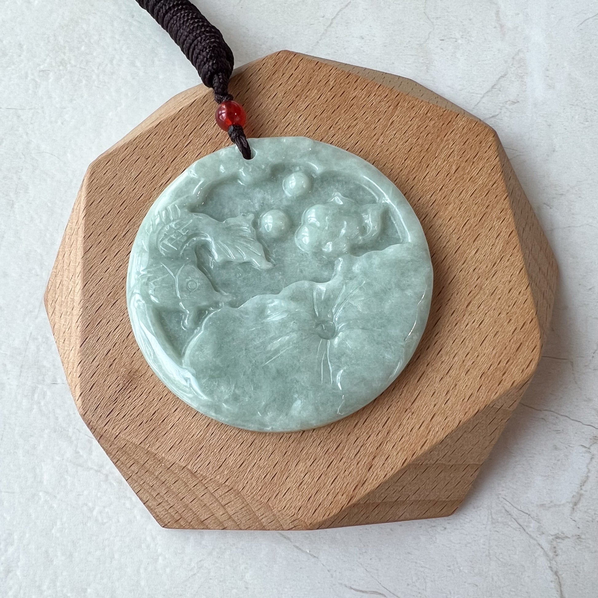 Lotus Bliss Koi Jade Pendant, Jadeite Jade Koi Fish Carved Pendant, Koi Fish Pendant, YJ-0321-0360489