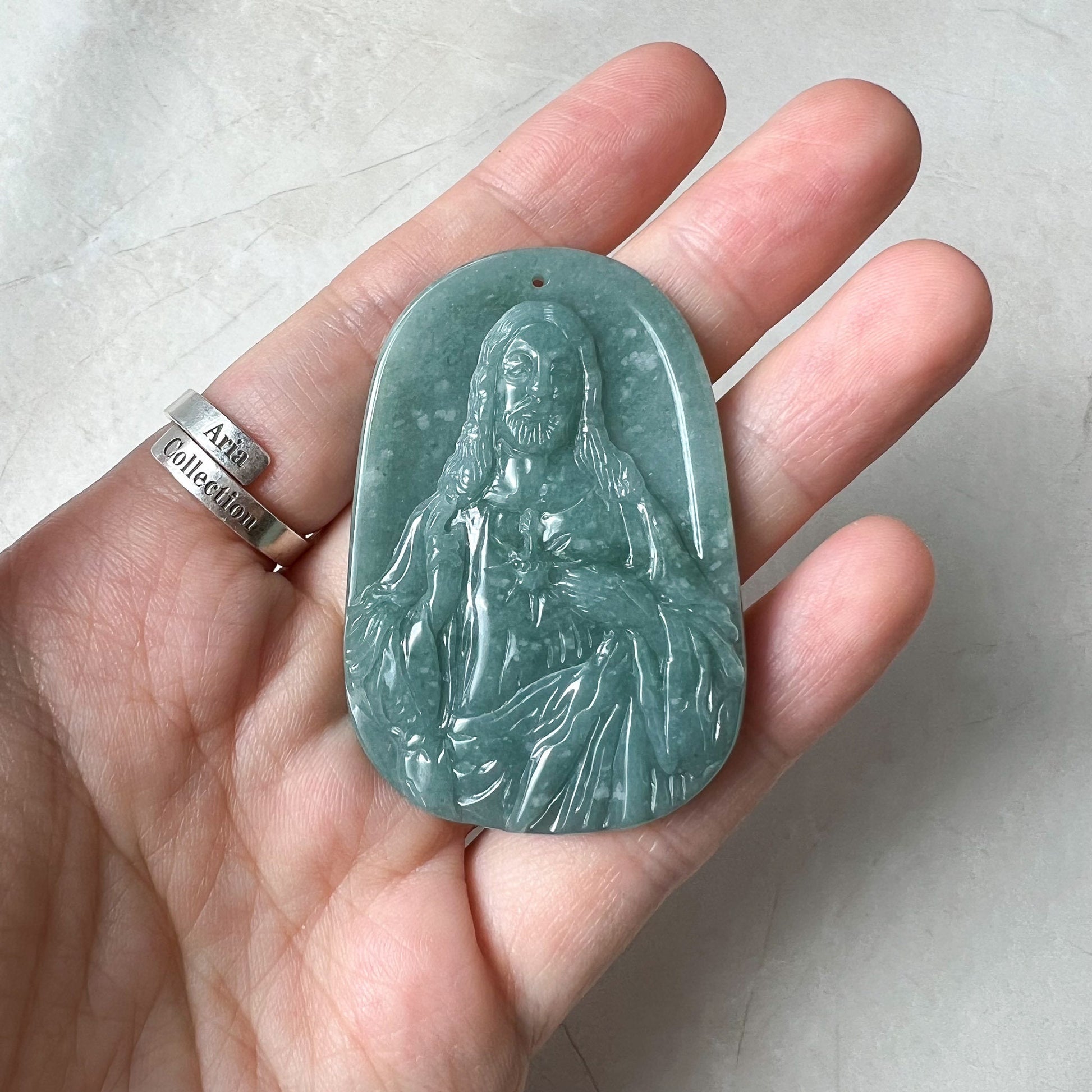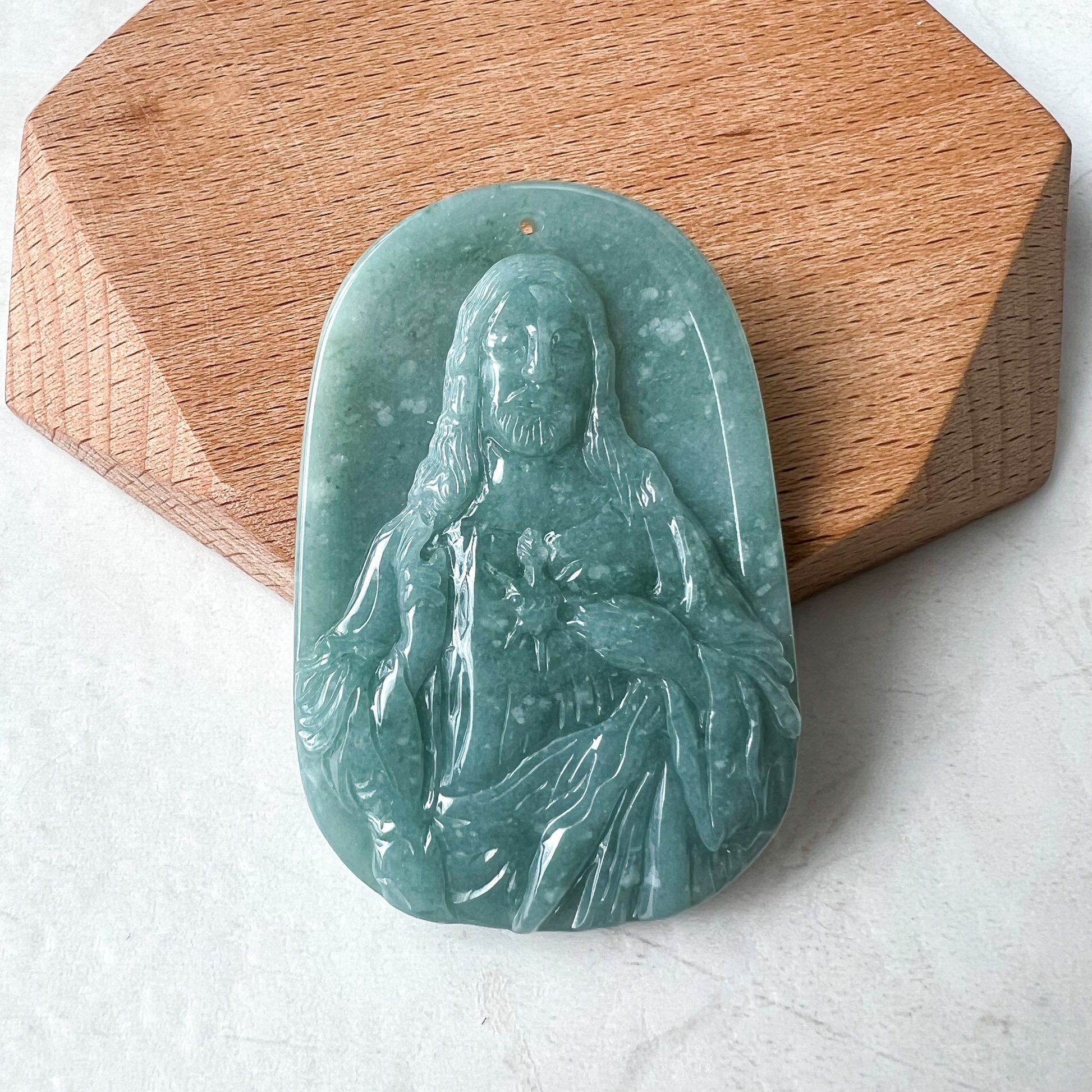 Jadeite Jade Jesus Christ, Blue Green Jade, Christian Necklace, Hand Carved Necklace, XZ-1221-1675649915