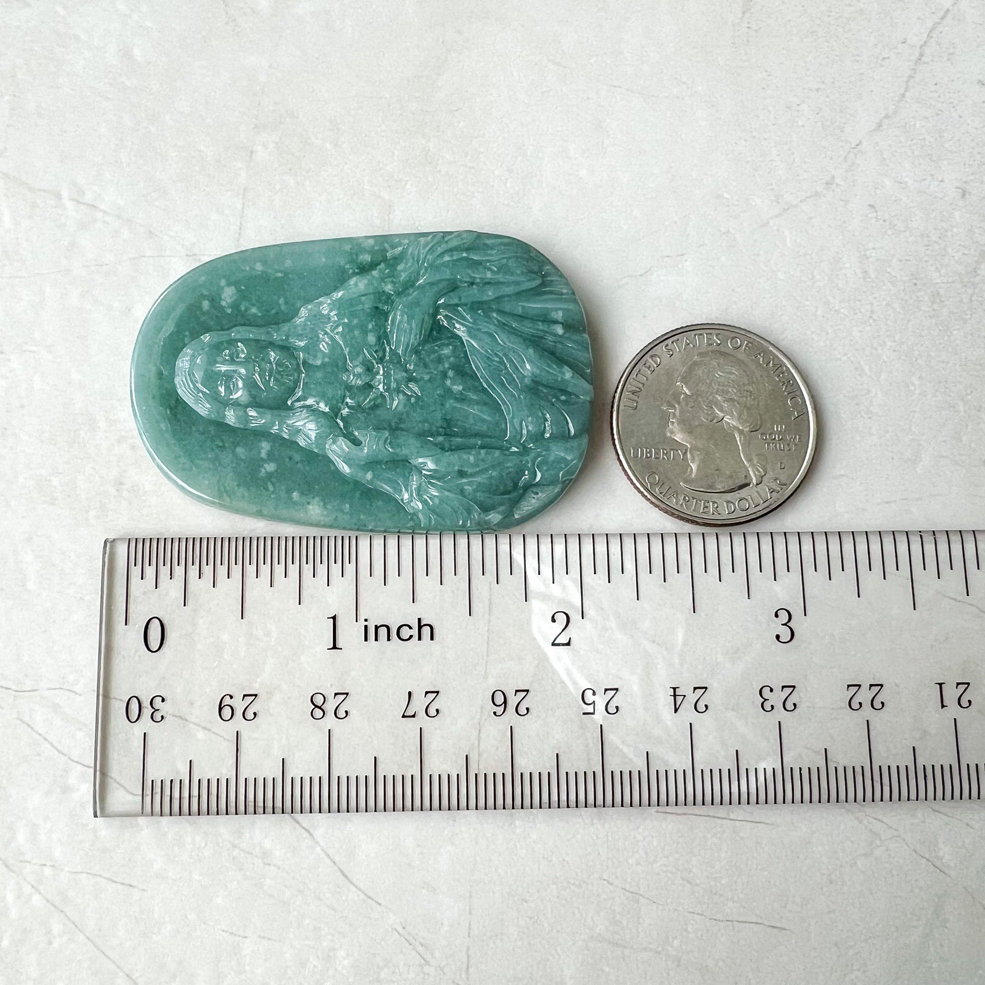 JADE COLOR: This jade piece has beautiful shades of semi-translucent blue-green. This is a high grade piece of jade. This piece is semi-translucent; this means when held against the light, the light will partially shine through - a premium quality in jade because it gives the jade a "glow" under certain lighting such as natural light.