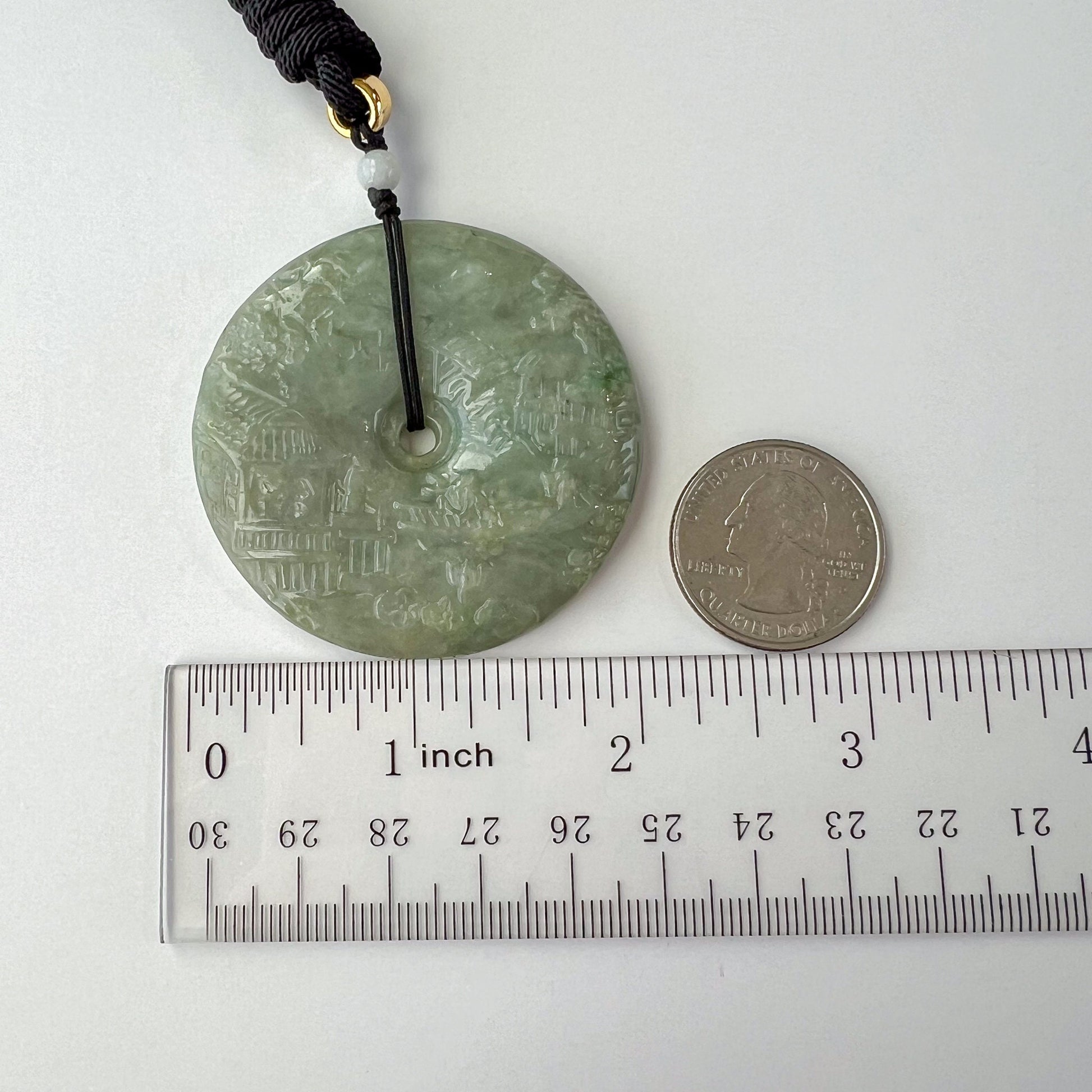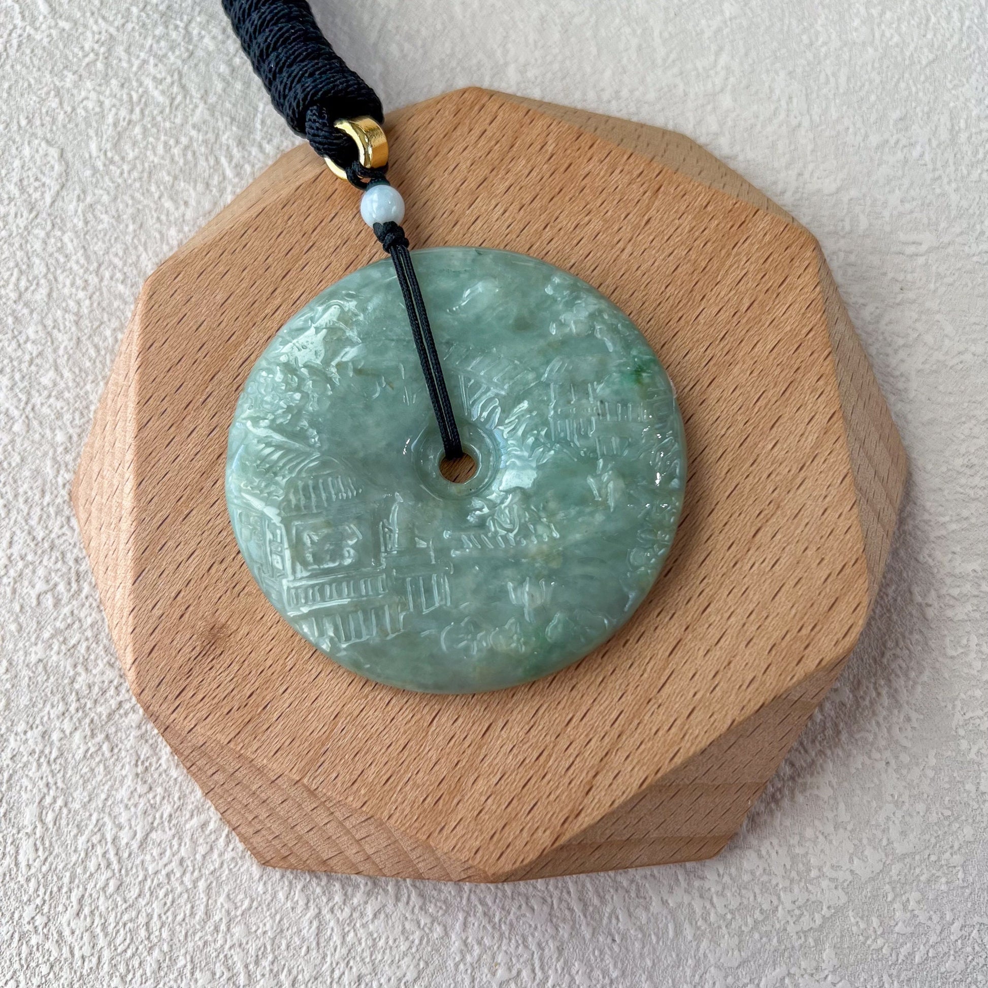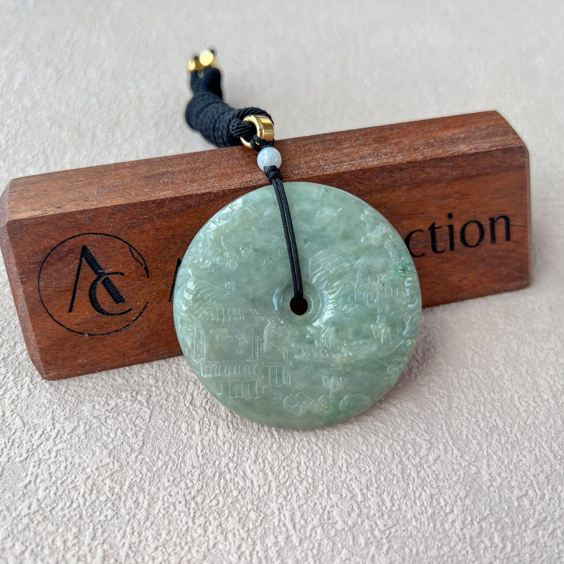 CARVING DEPICTION: This pendant is hand carved to resemble a beautiful mountain & forest scenery. The jade piece depicts a scenery where there are luscious trees along a mountain landscape. The carving is so detailed and well done you can see the individual leaves carved on the trees. A absolute stunning artwork denoting the mountain scenery! This piece is one a kind!