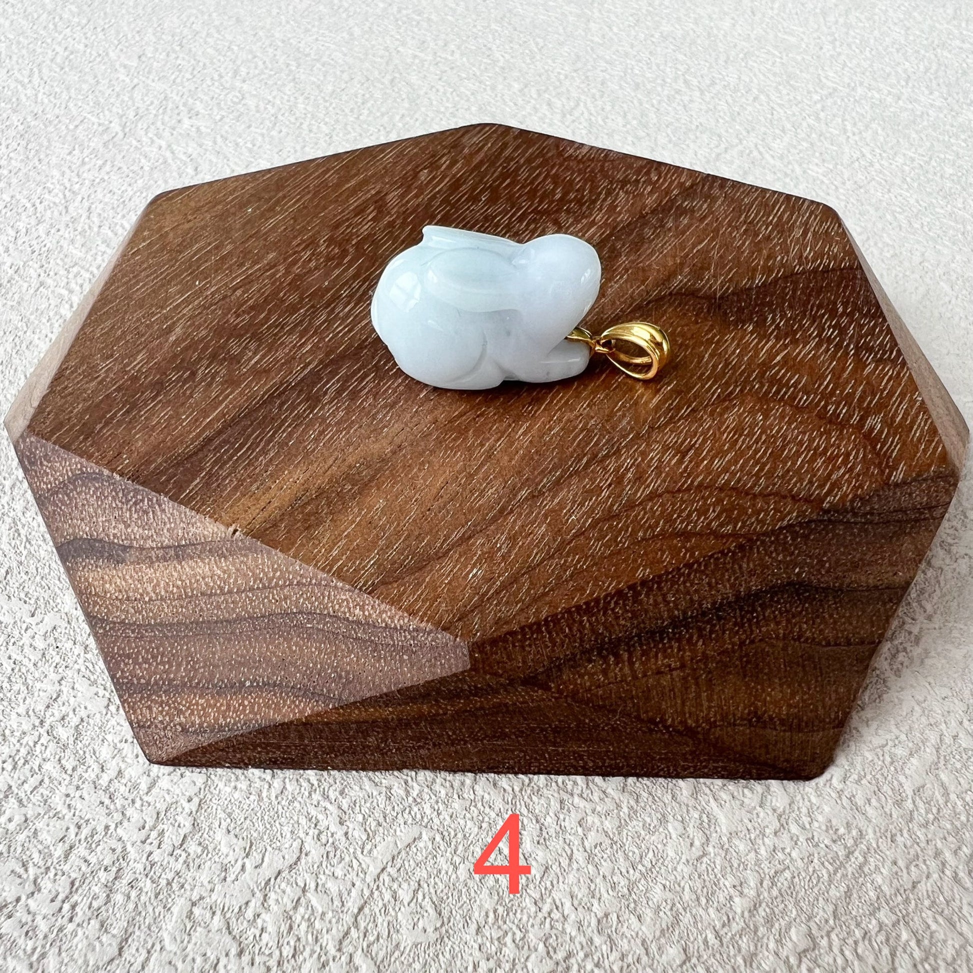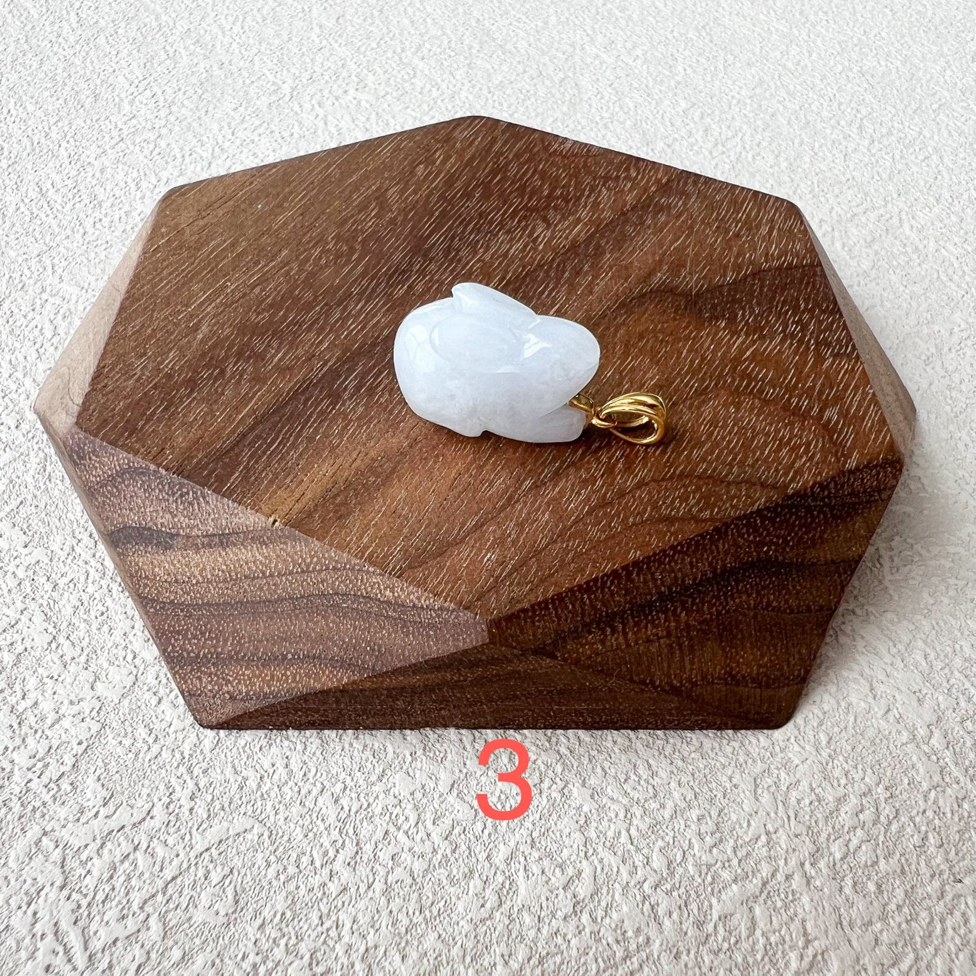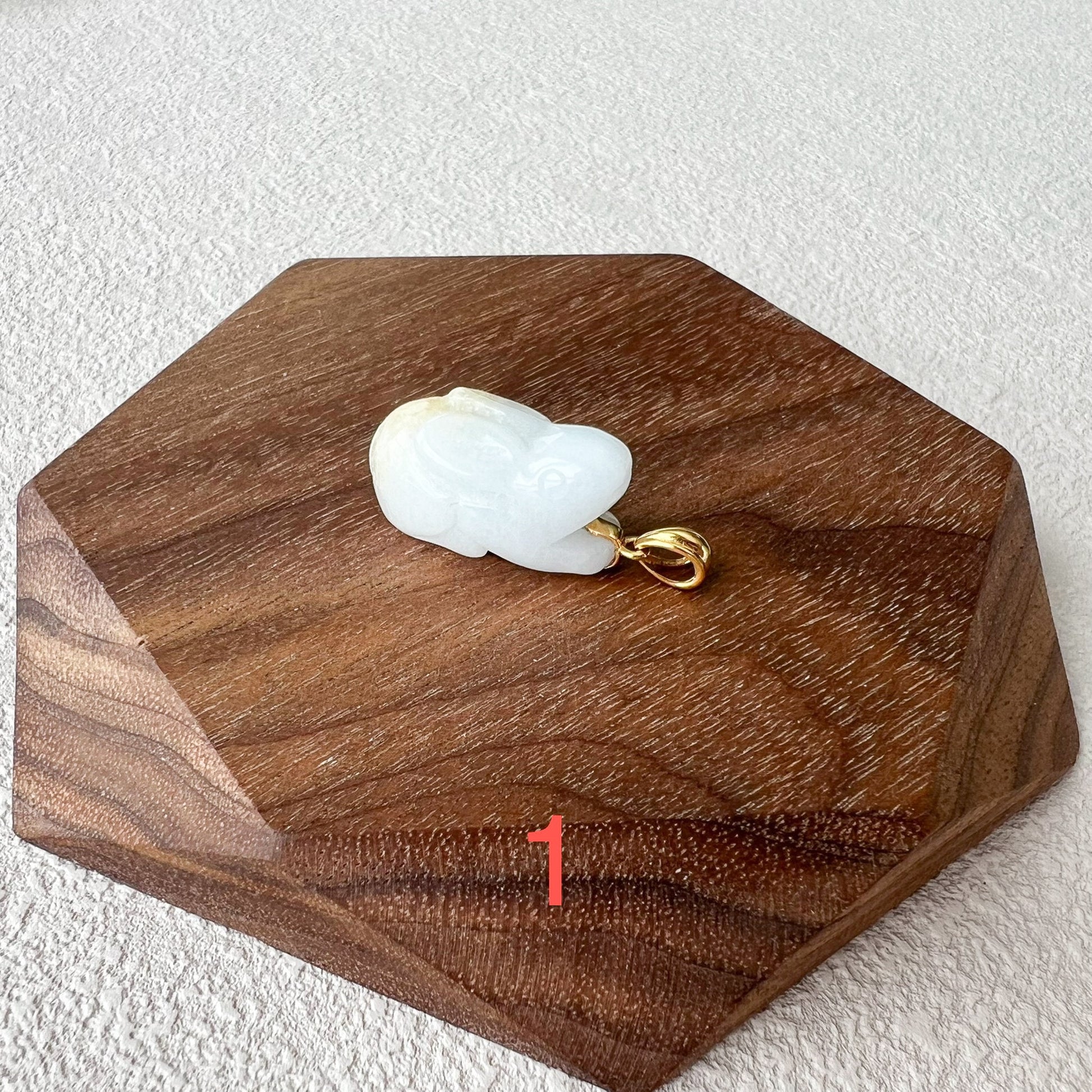 PENDANT: This rabbit pendant is made with natural jadeite jade and 18K solid yellow gold for the bail. The pendant is a charming and delightful piece of jewelry that captures the grace and beauty of these beloved creatures. Crafted with meticulous attention to detail, the pendant showcases the adorable features of a rabbit, making it a whimsical and enchanting accessory.