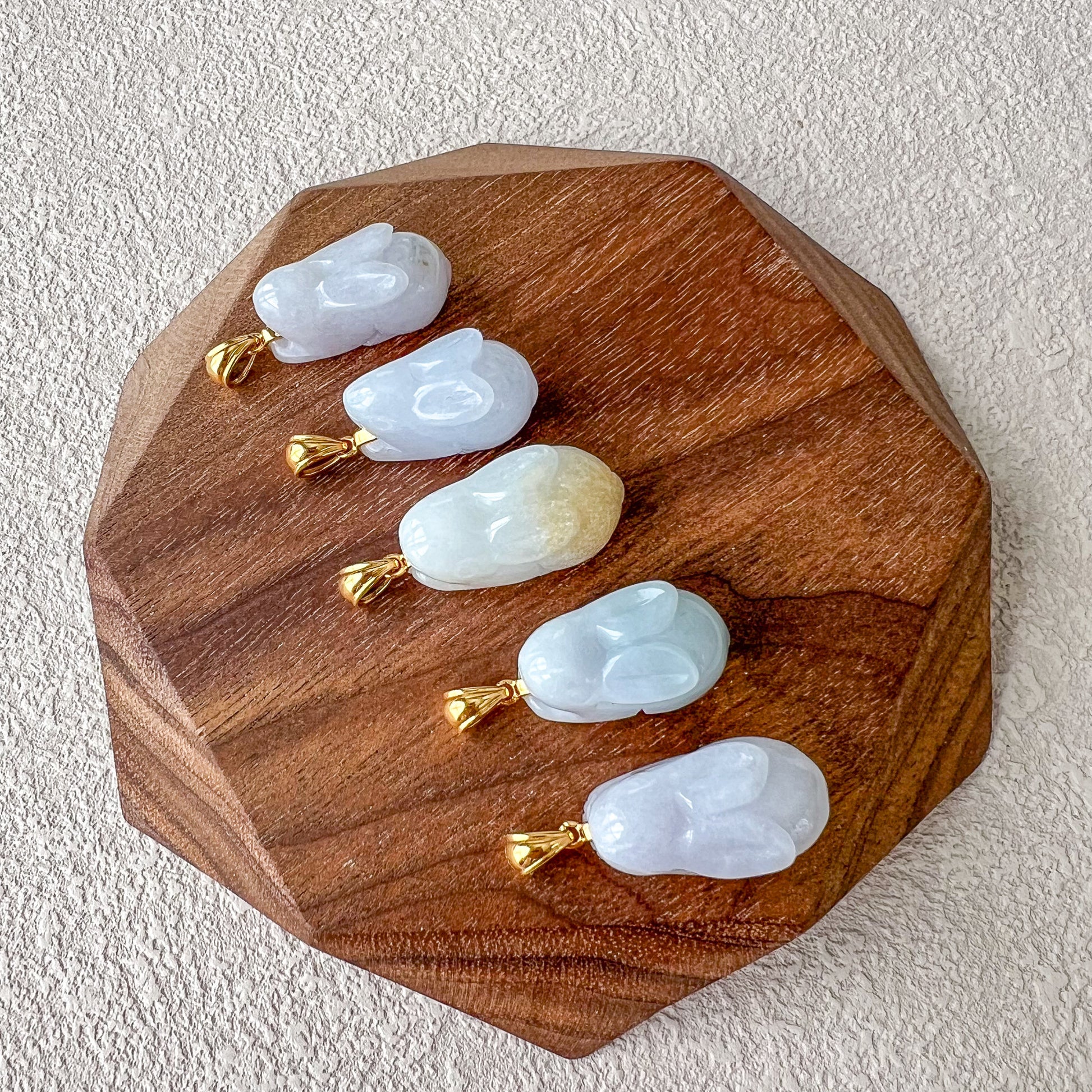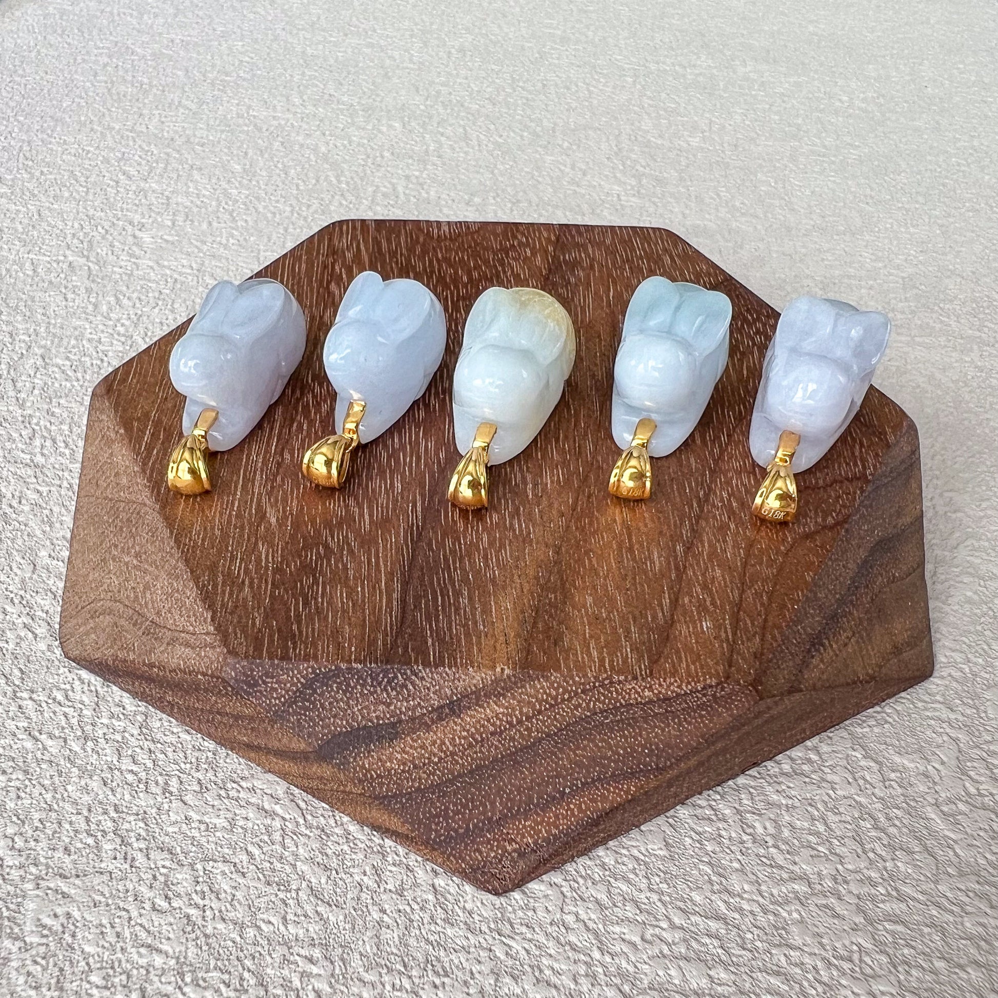 Jadeite Jade Rabbit Pendant with 18K Solid Gold, Set 2, SHWQ-0423-1704948725