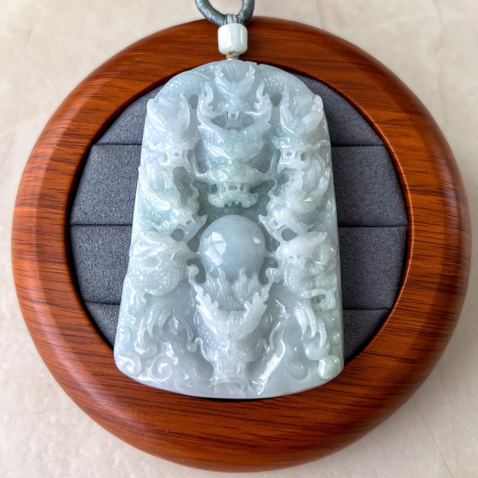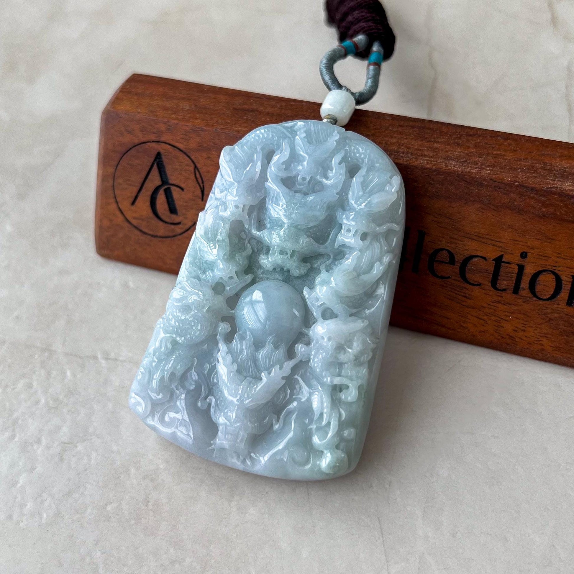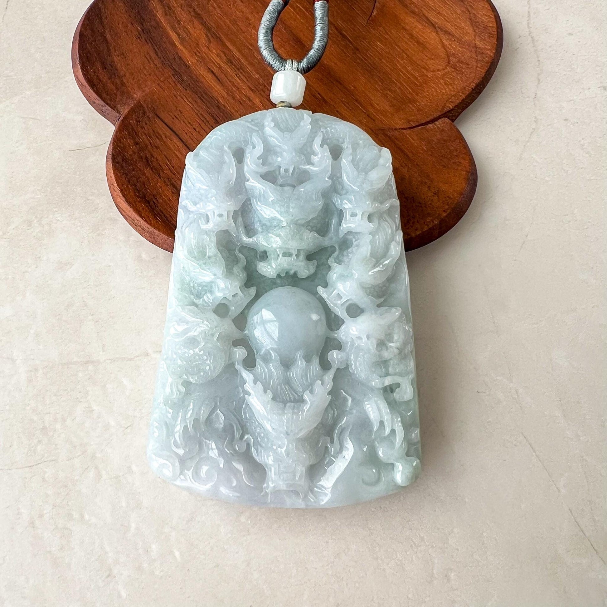 CARVING: This jade pendant features the intricate depiction of nine dragons, a powerful symbol representing strength, protection, and the highest level of authority. The number nine is considered auspicious, often associated with completeness and the celestial order. Together, the dragons embody unity, wisdom, and a protective force against negative energies.