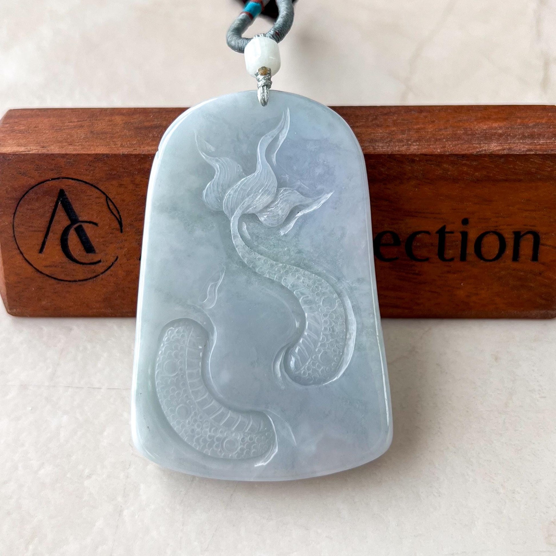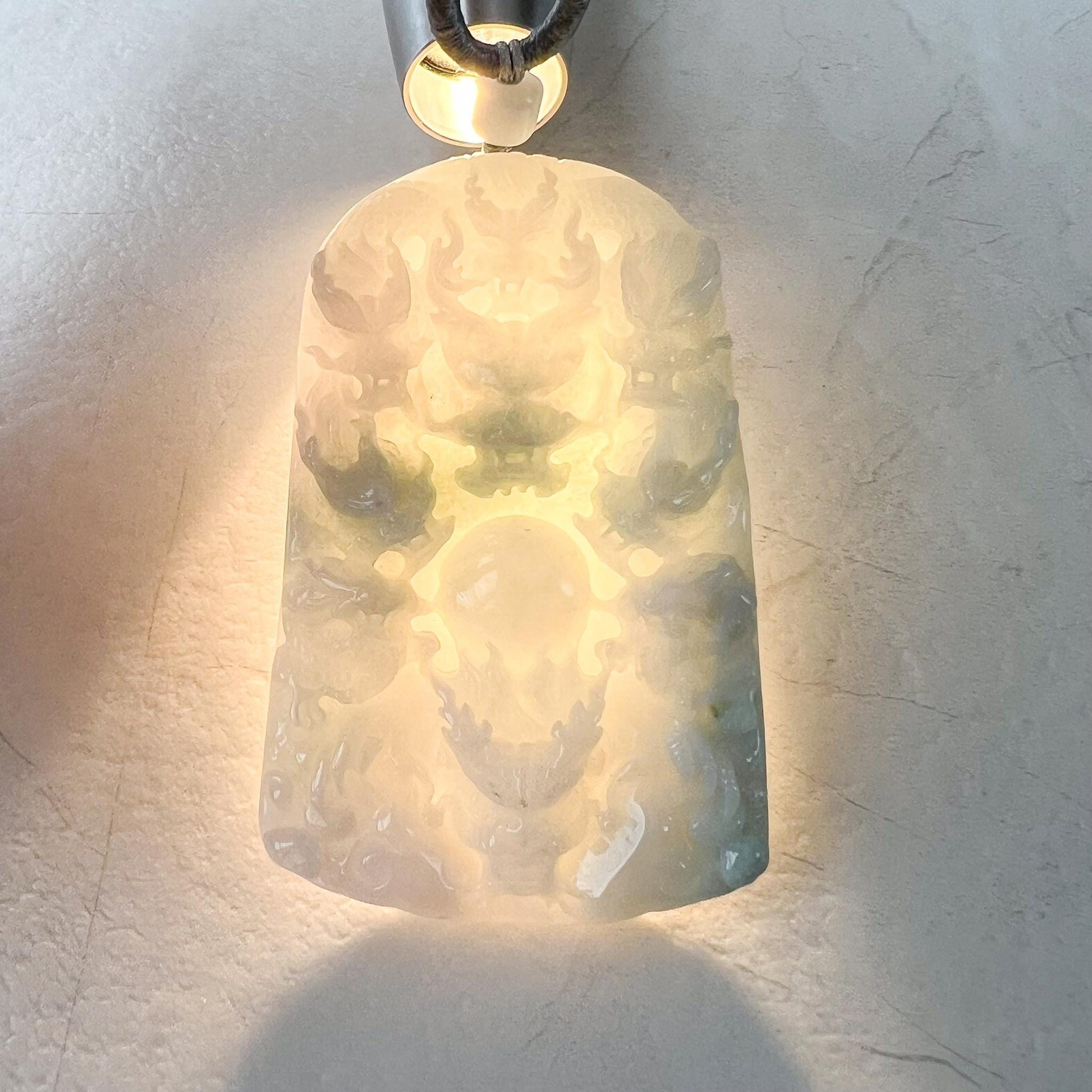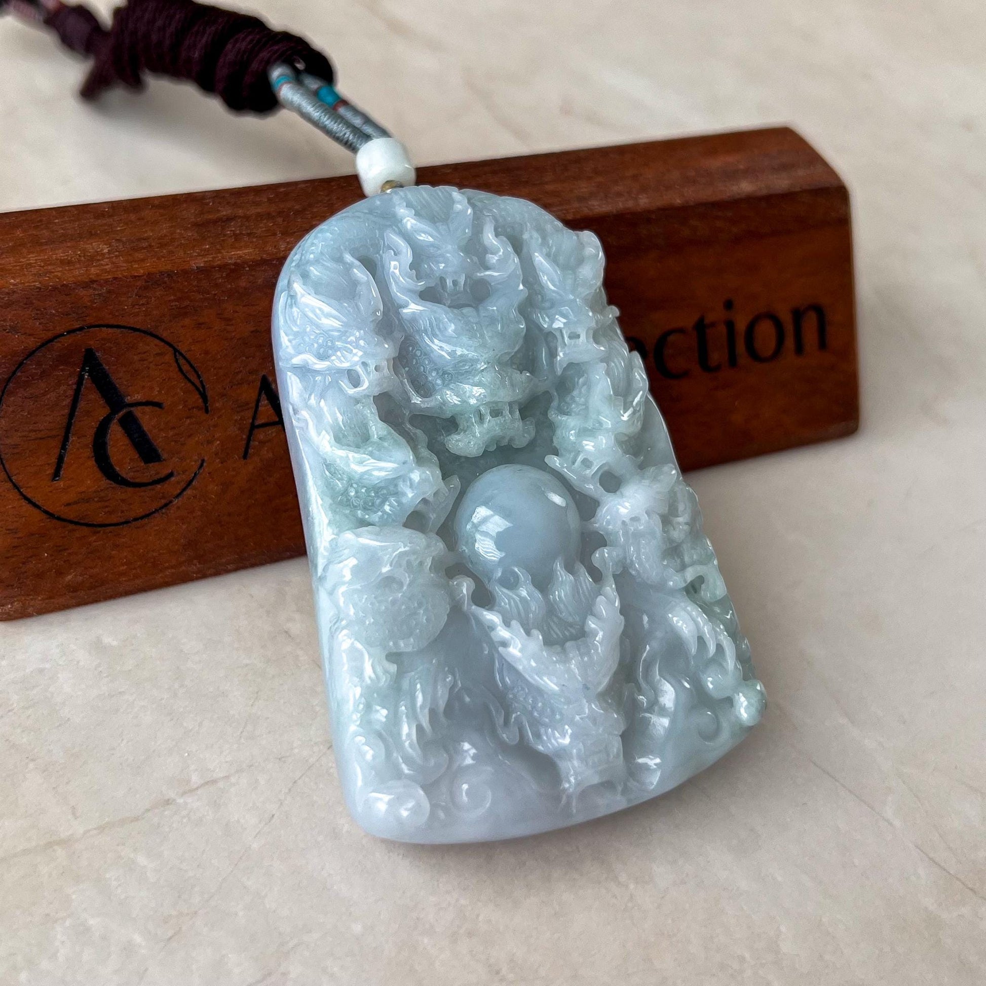 CARVING: This jade pendant features the intricate depiction of nine dragons, a powerful symbol representing strength, protection, and the highest level of authority. The number nine is considered auspicious, often associated with completeness and the celestial order. Together, the dragons embody unity, wisdom, and a protective force against negative energies.