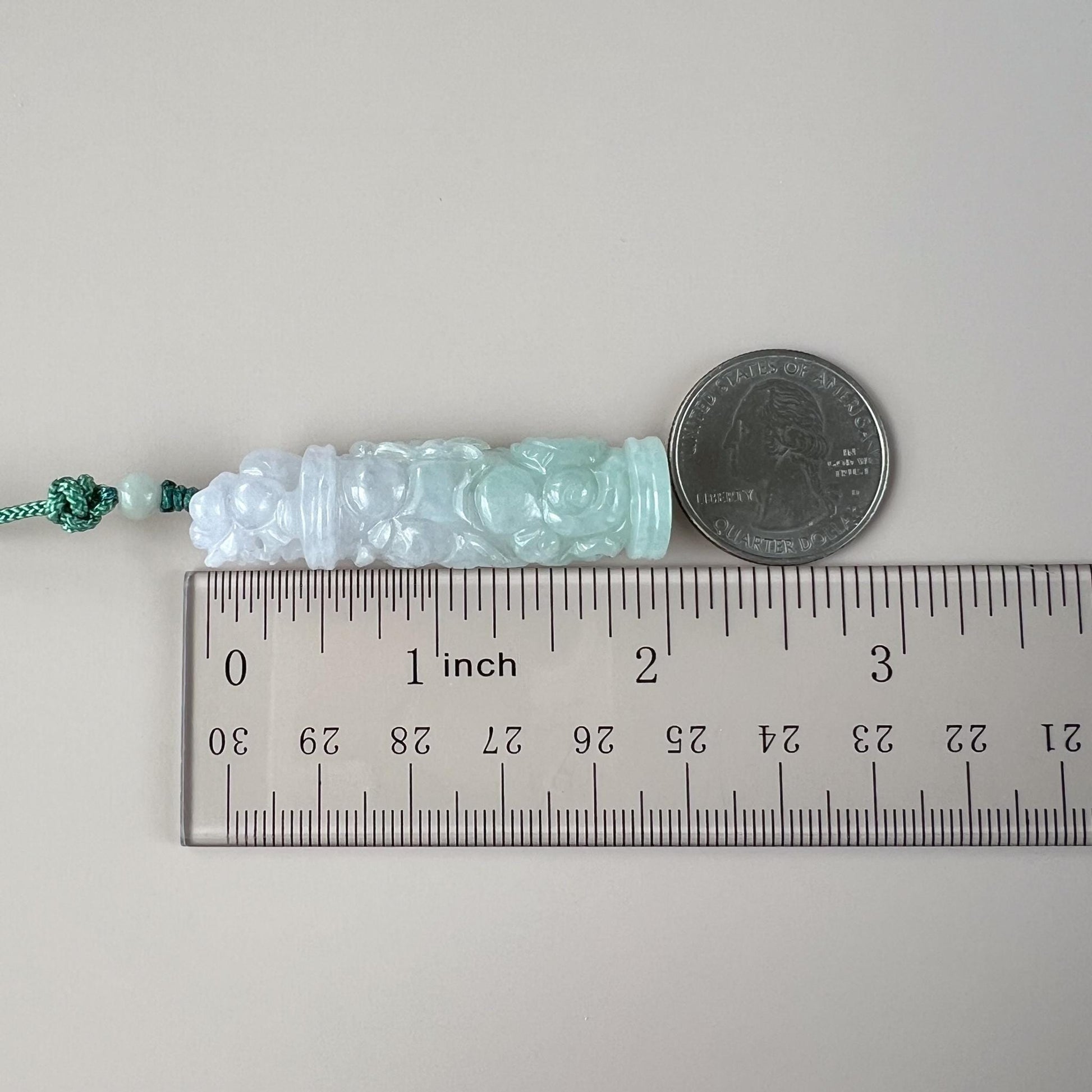 Lavender Purple Green Dragon Pillar Column Jade Pendant, Jadeite Jade Hand Carved Pendant Necklace, YGR-0723-1749928428