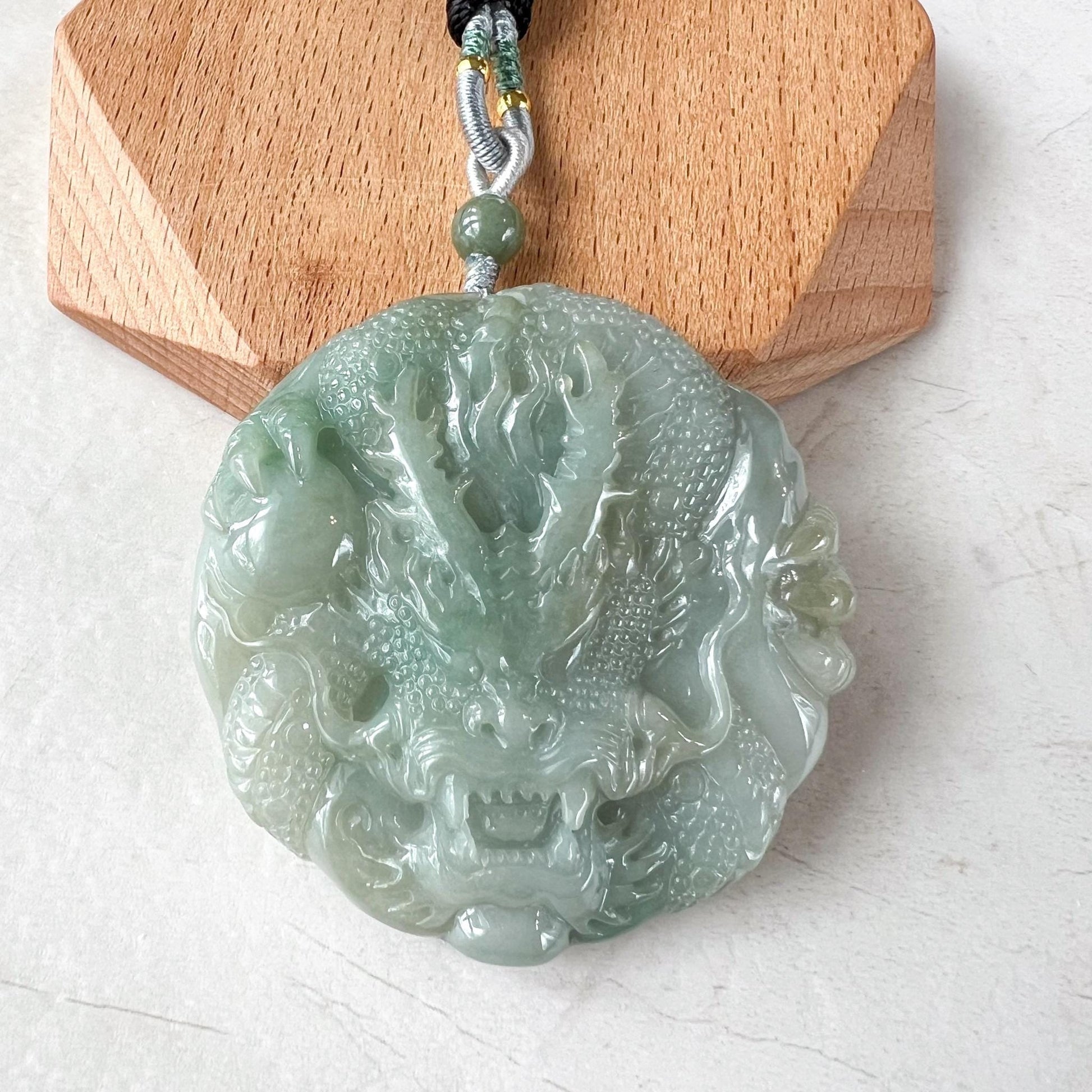 Light Green Jadeite Jade Dragon Chinese Zodiac Hand Carved Pendant Necklace, YGR-0823-1722031851