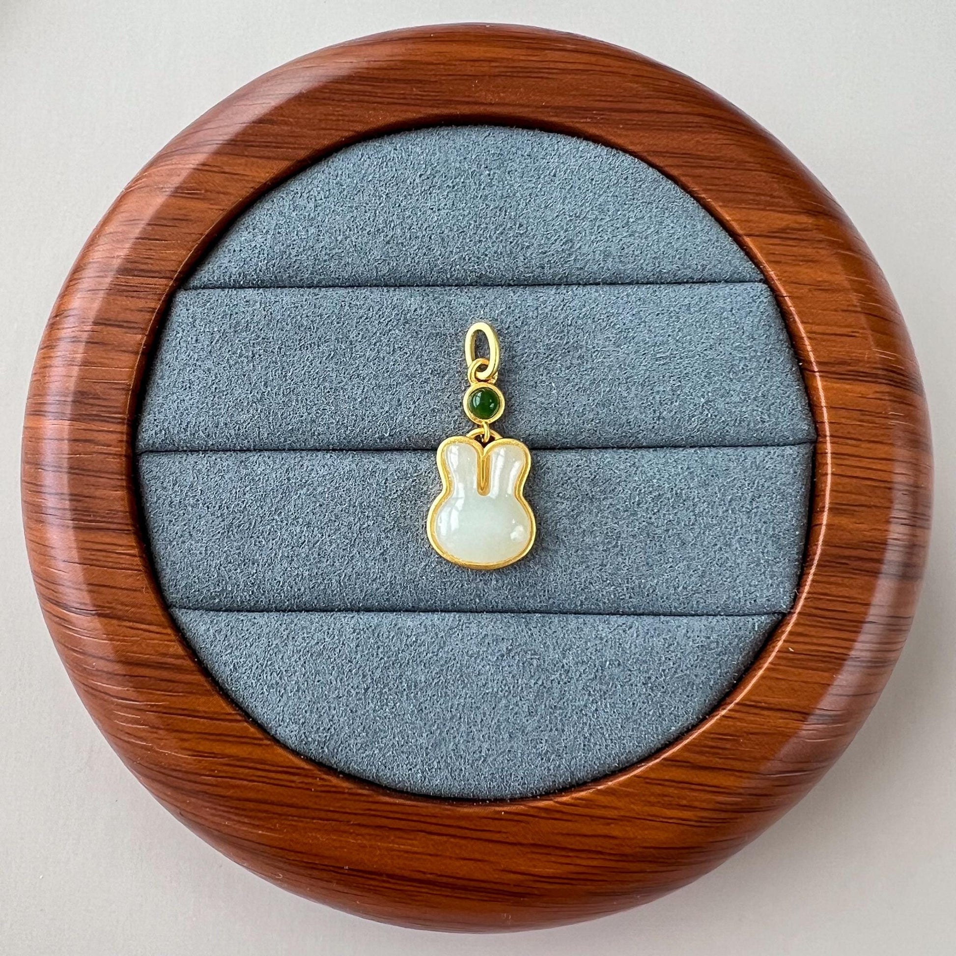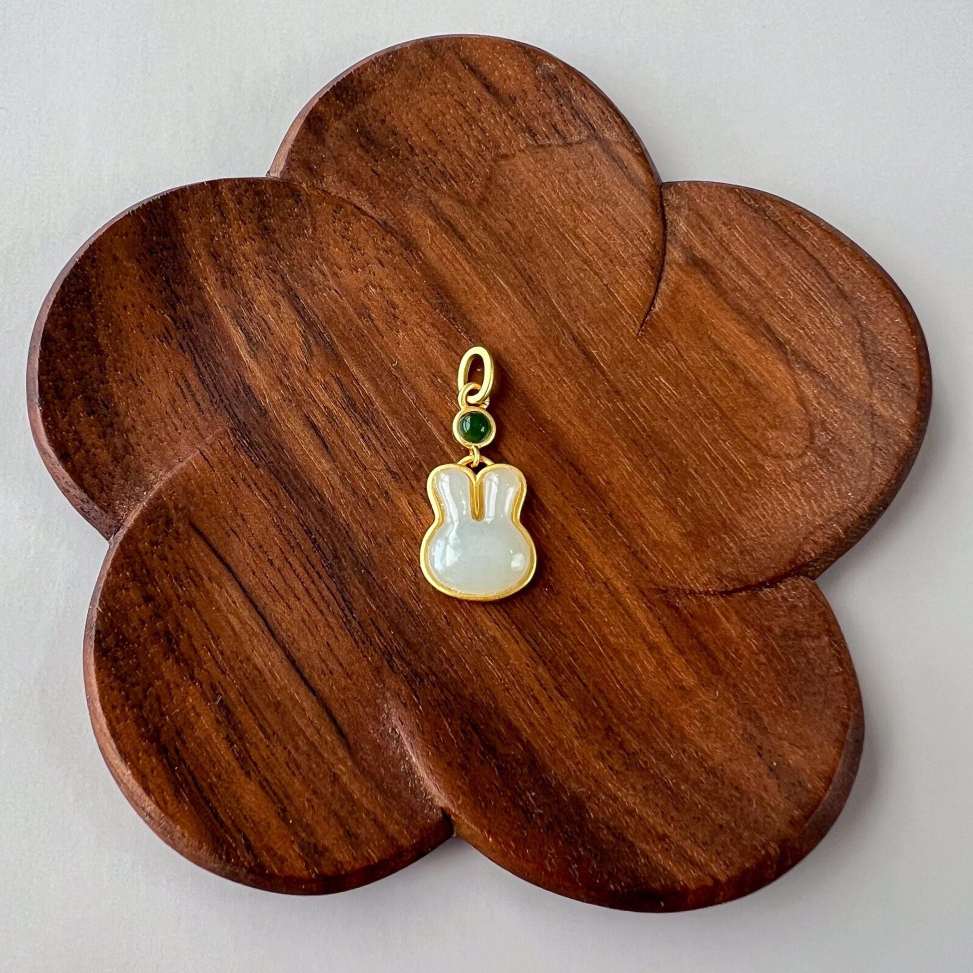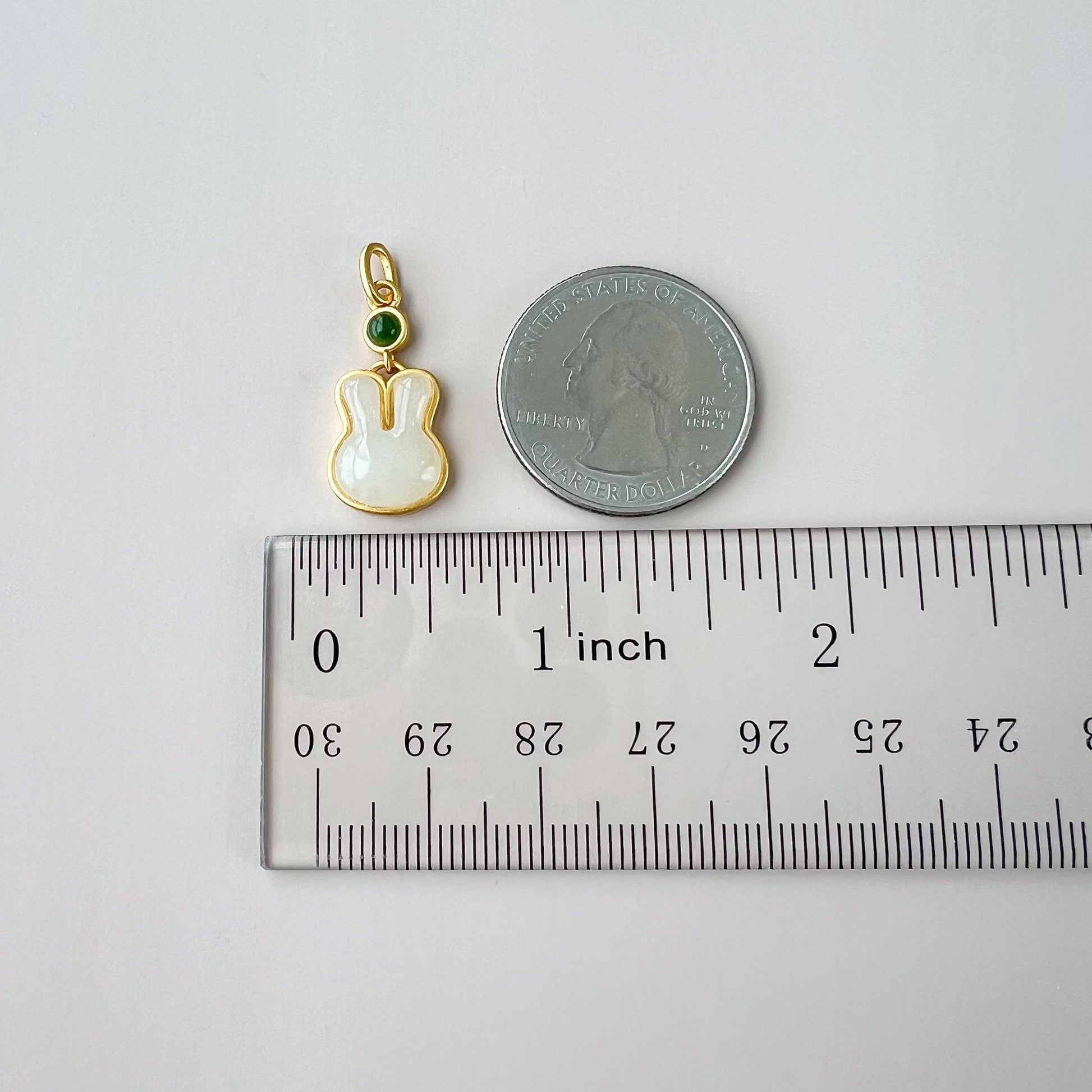 Lucky Rabbit Jade Pendant, Nephrite Jade Bunny Pendant with Gold Plated Sterling Silver, JSY-1025-0029
