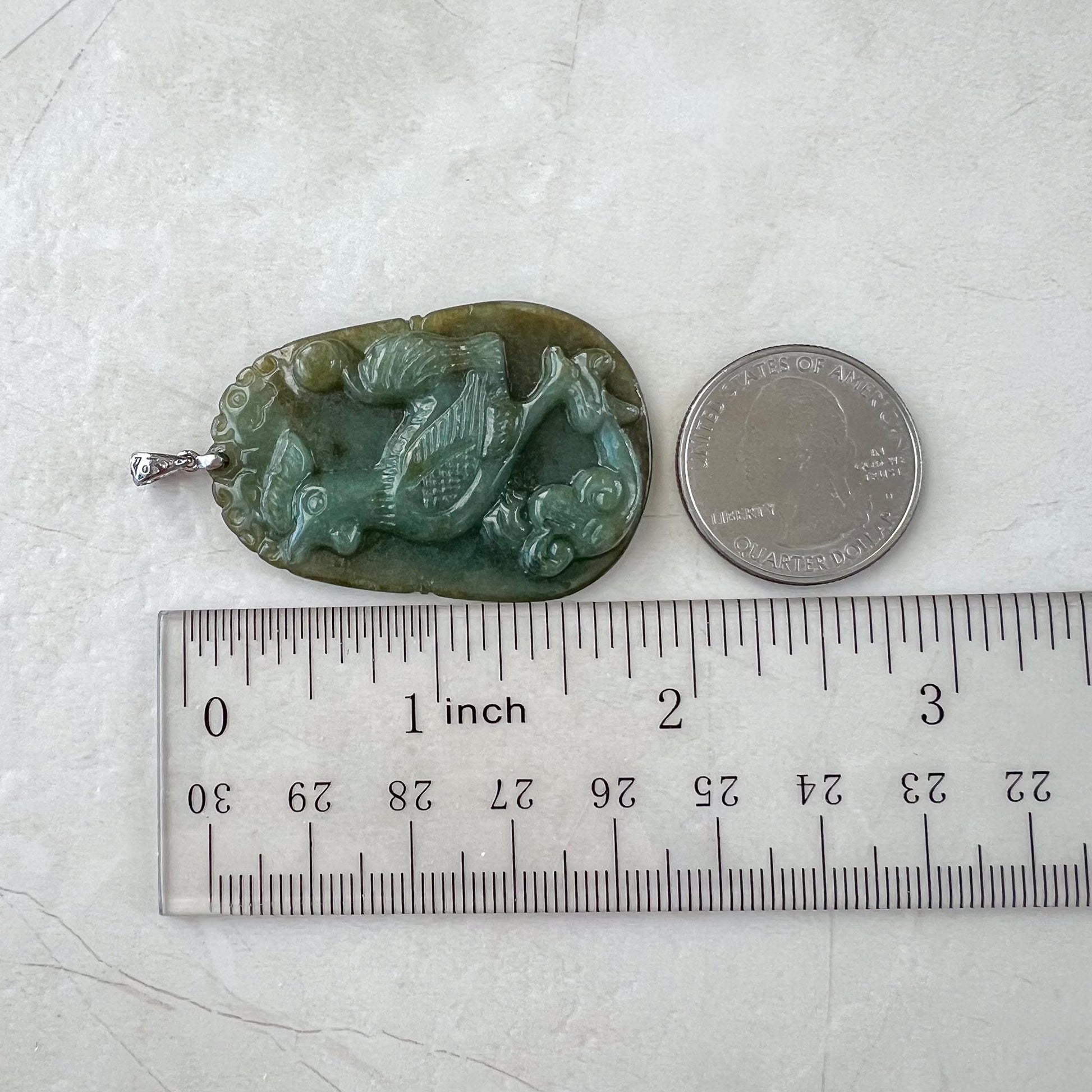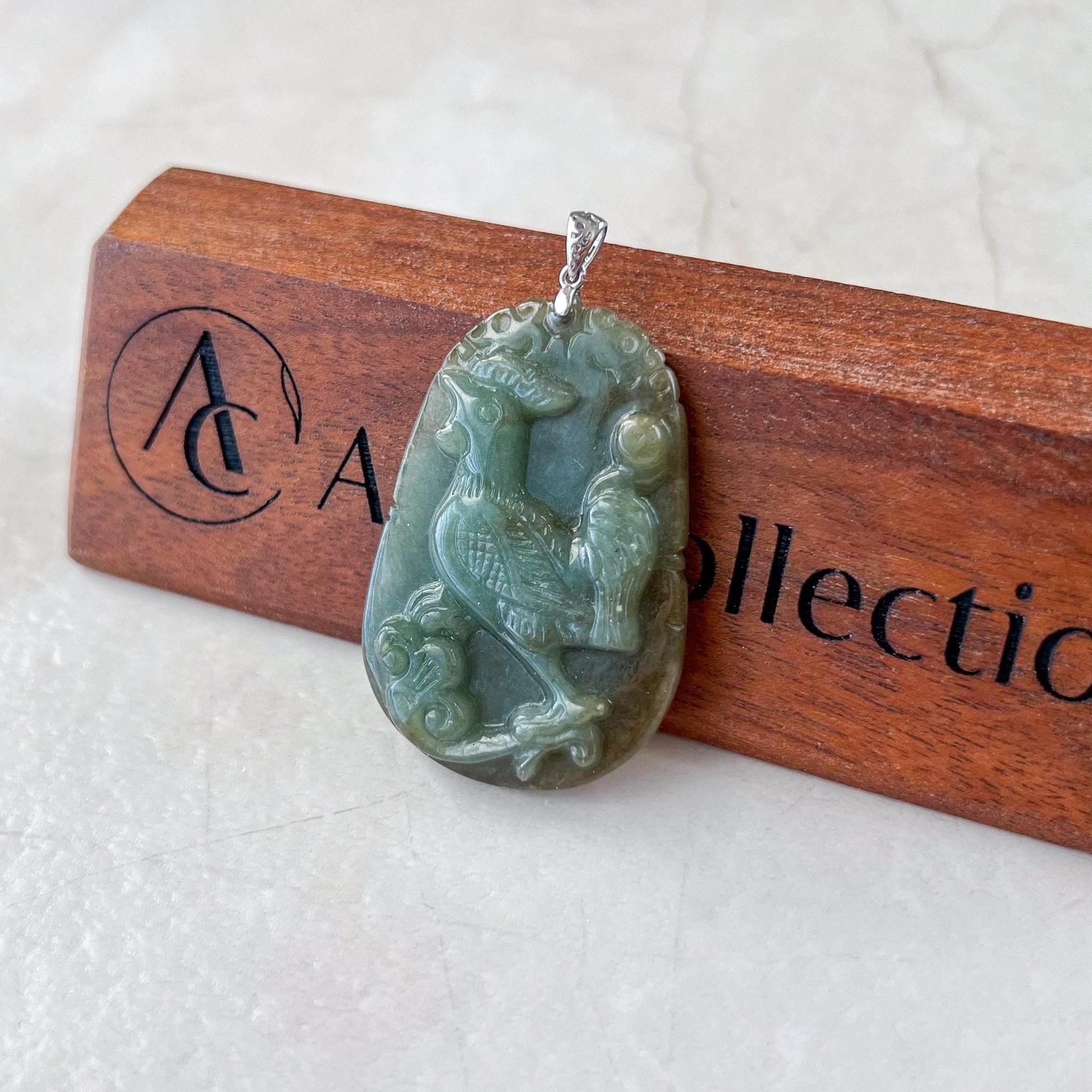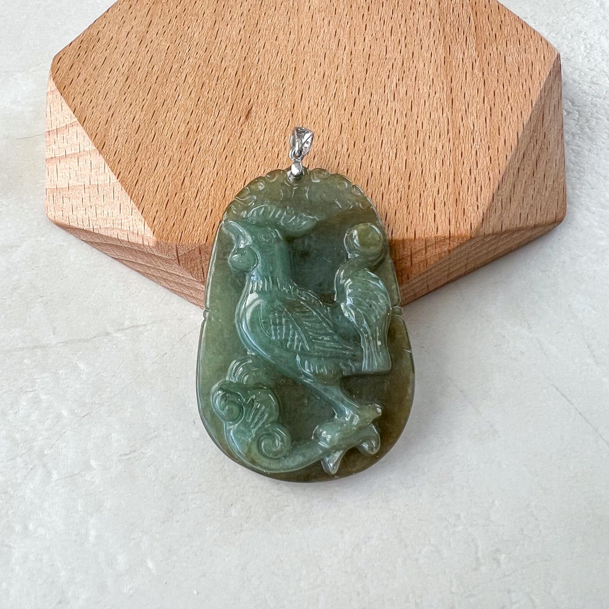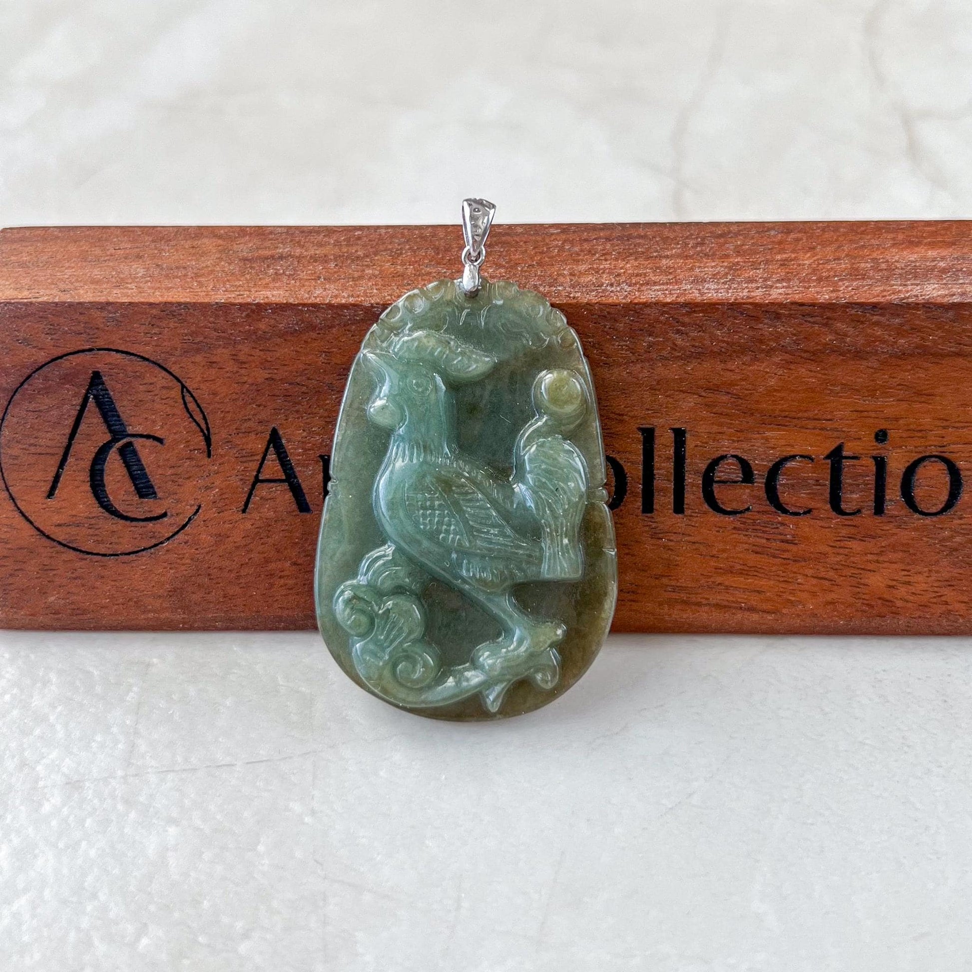 Lucky Rooster Jade Pendant with Sterling Silver Bail, Chinese Zodiac Rooster Jadeite Jade Pendant, NVN-0424-1757007425
