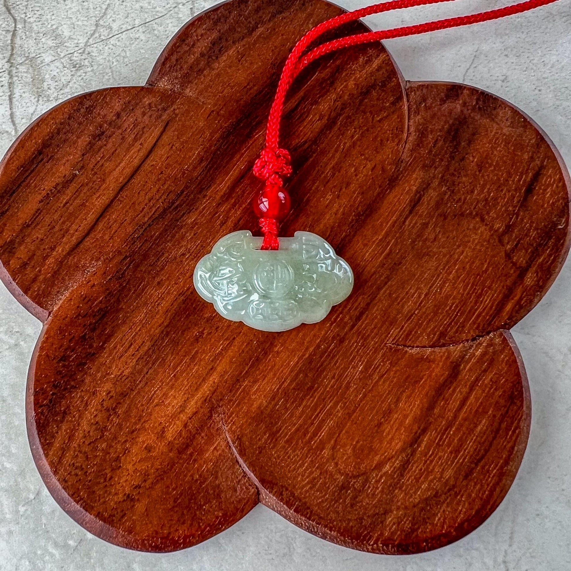 Mini Longevity Lock Pendant, 长命锁, Light Green Jadeite Jade Hand Carved, FSX-0822-185530