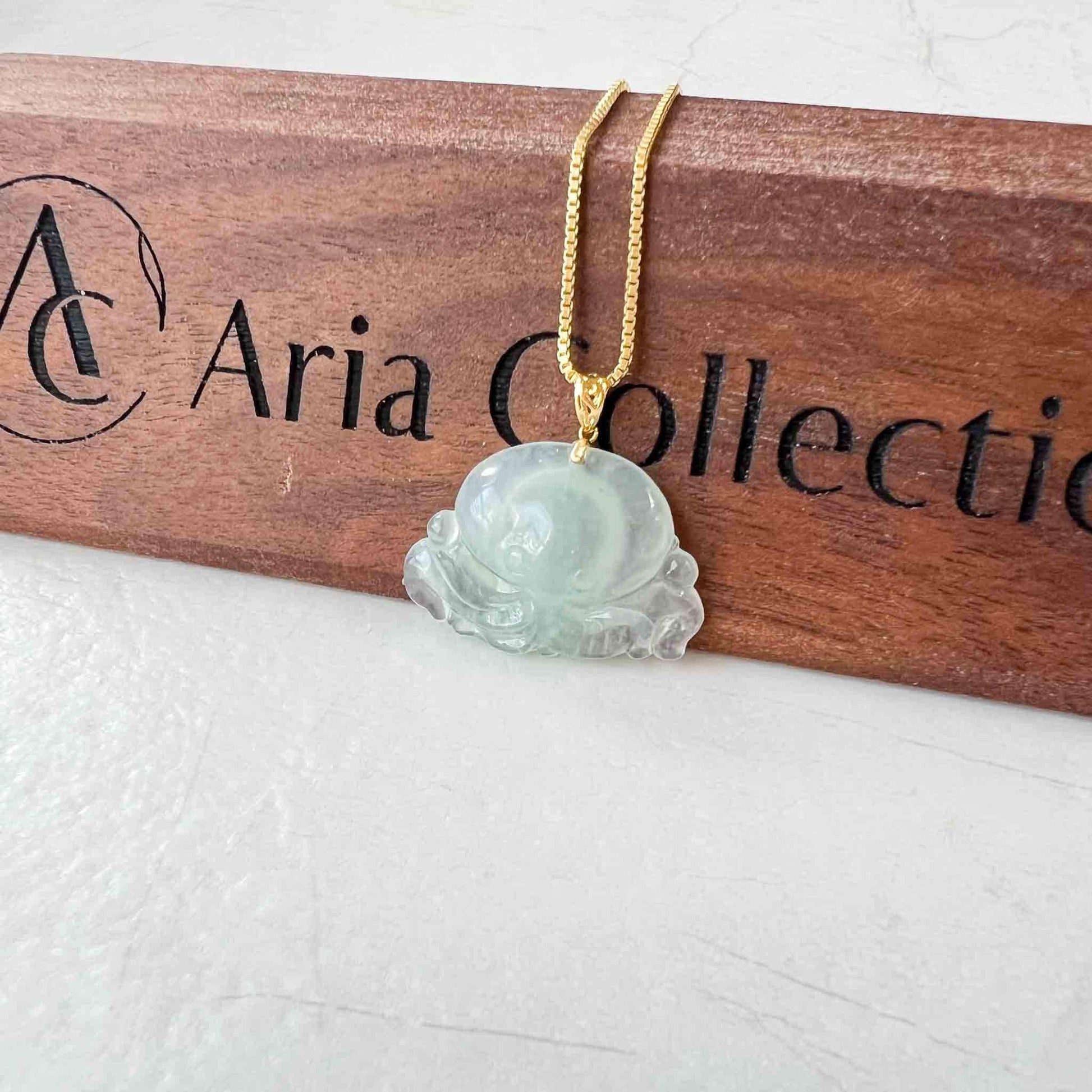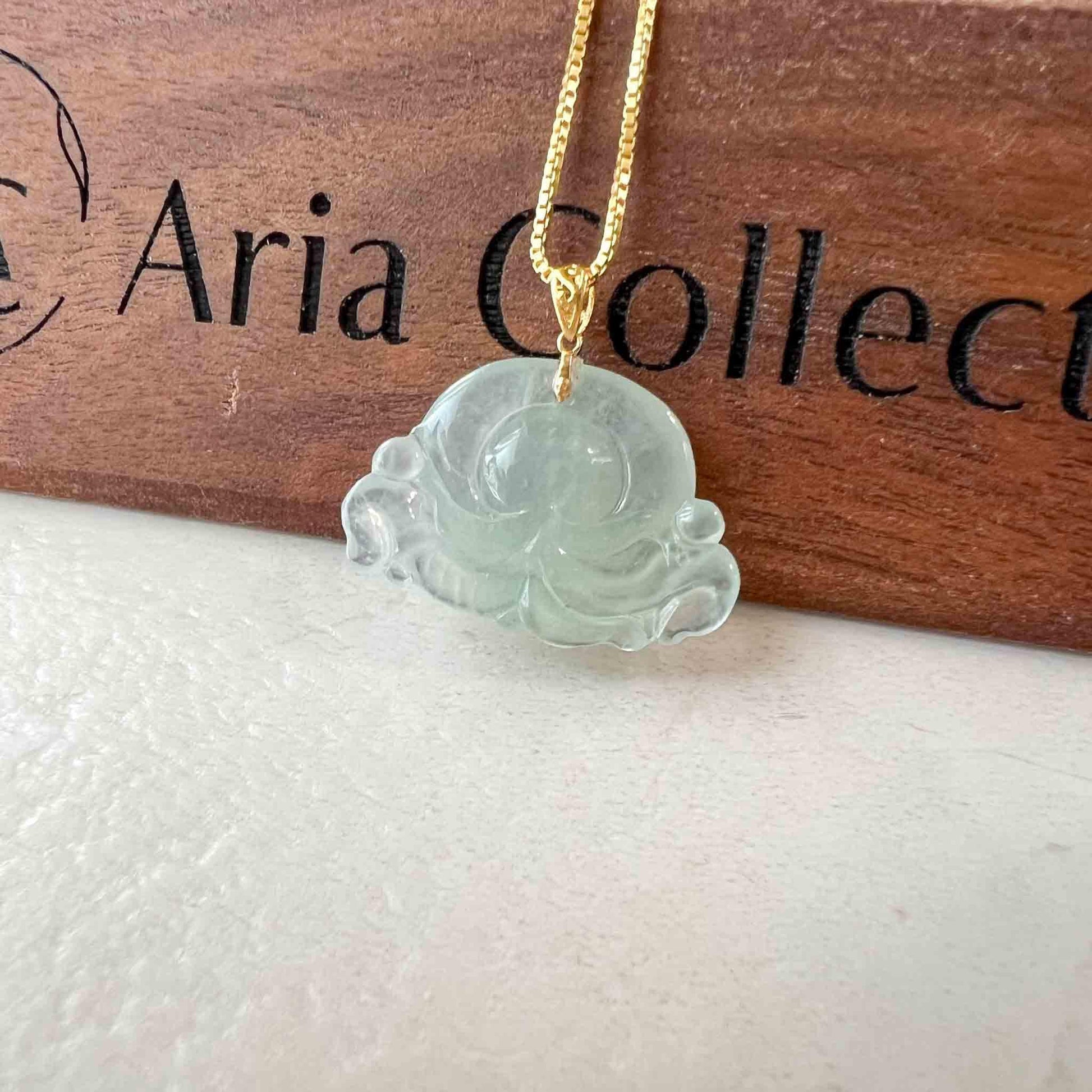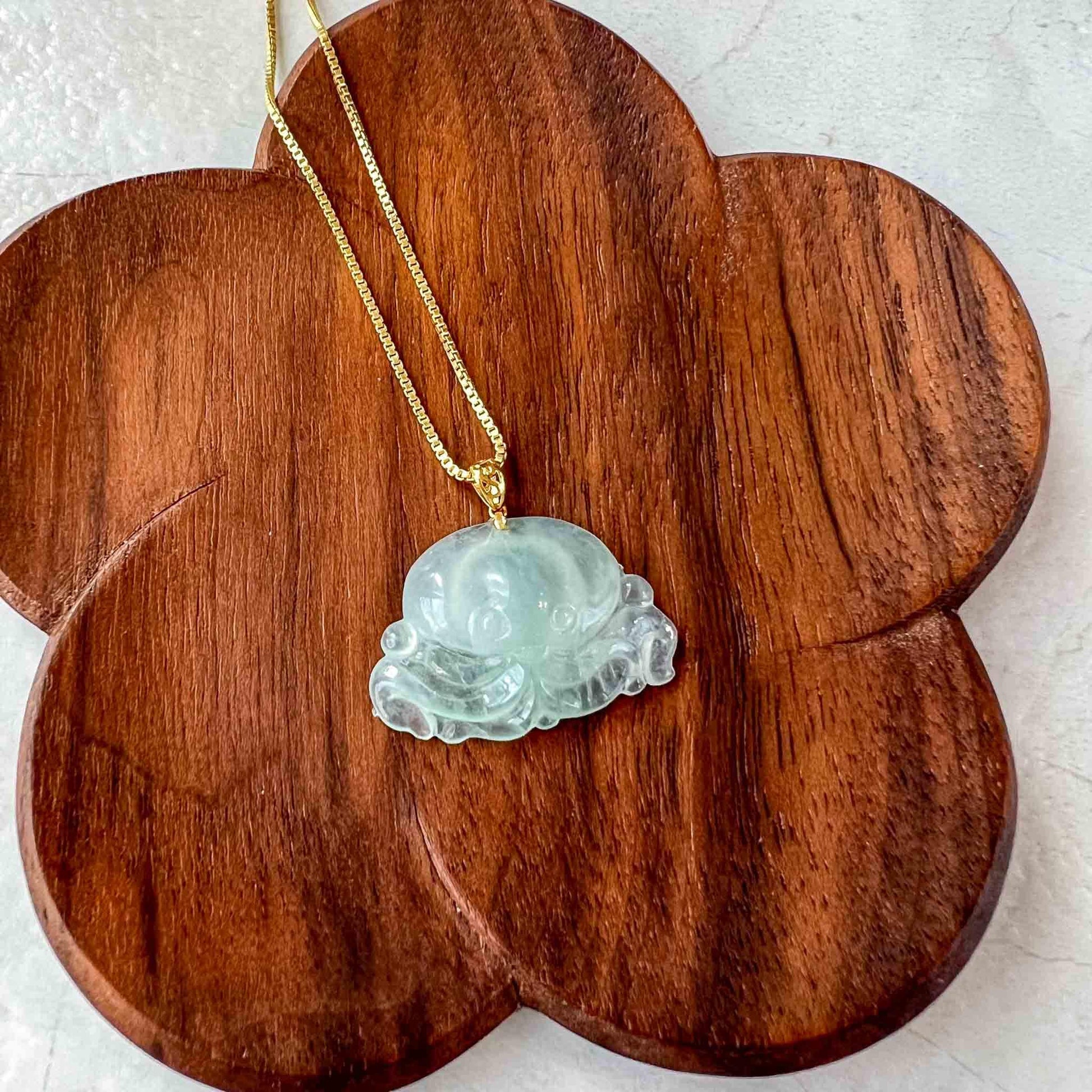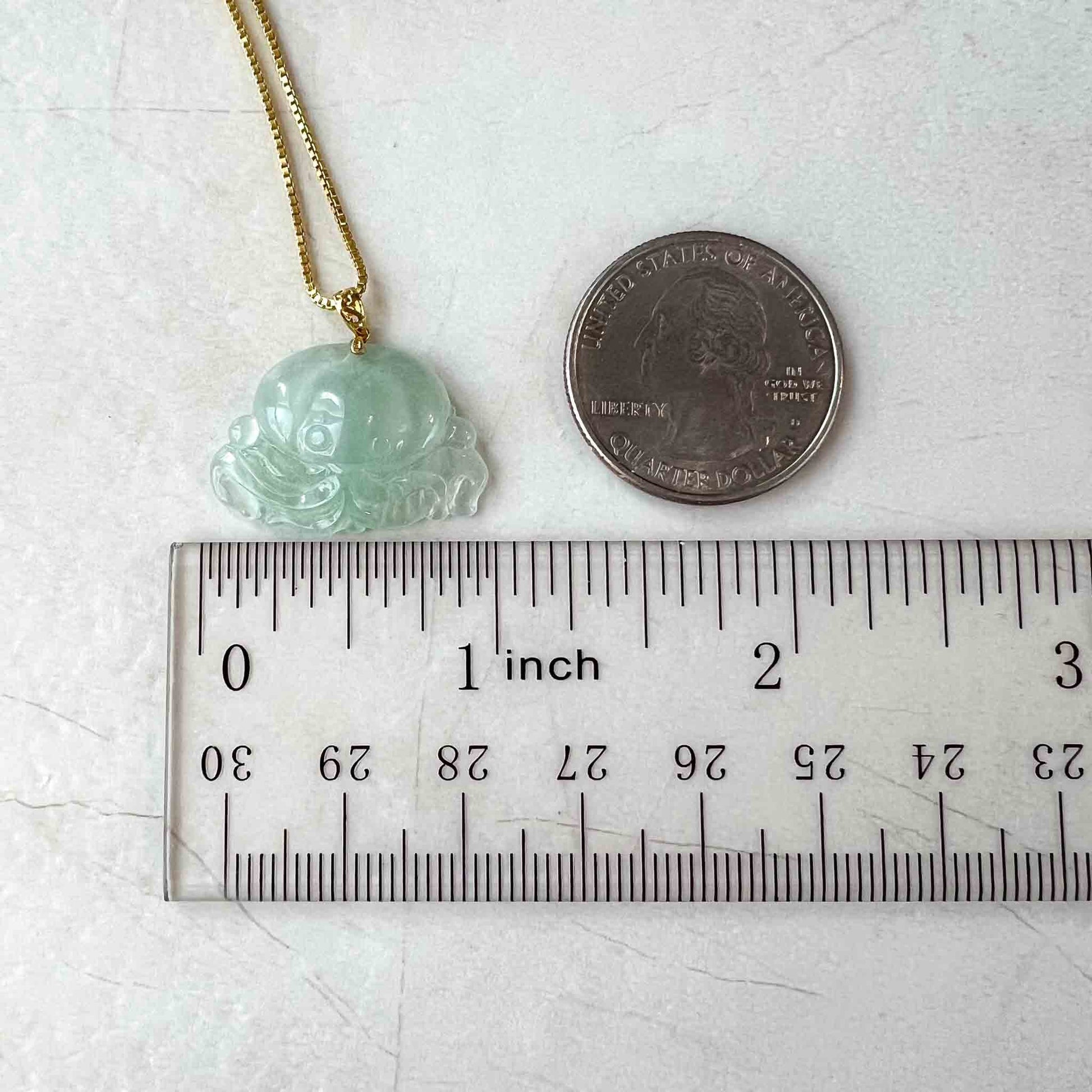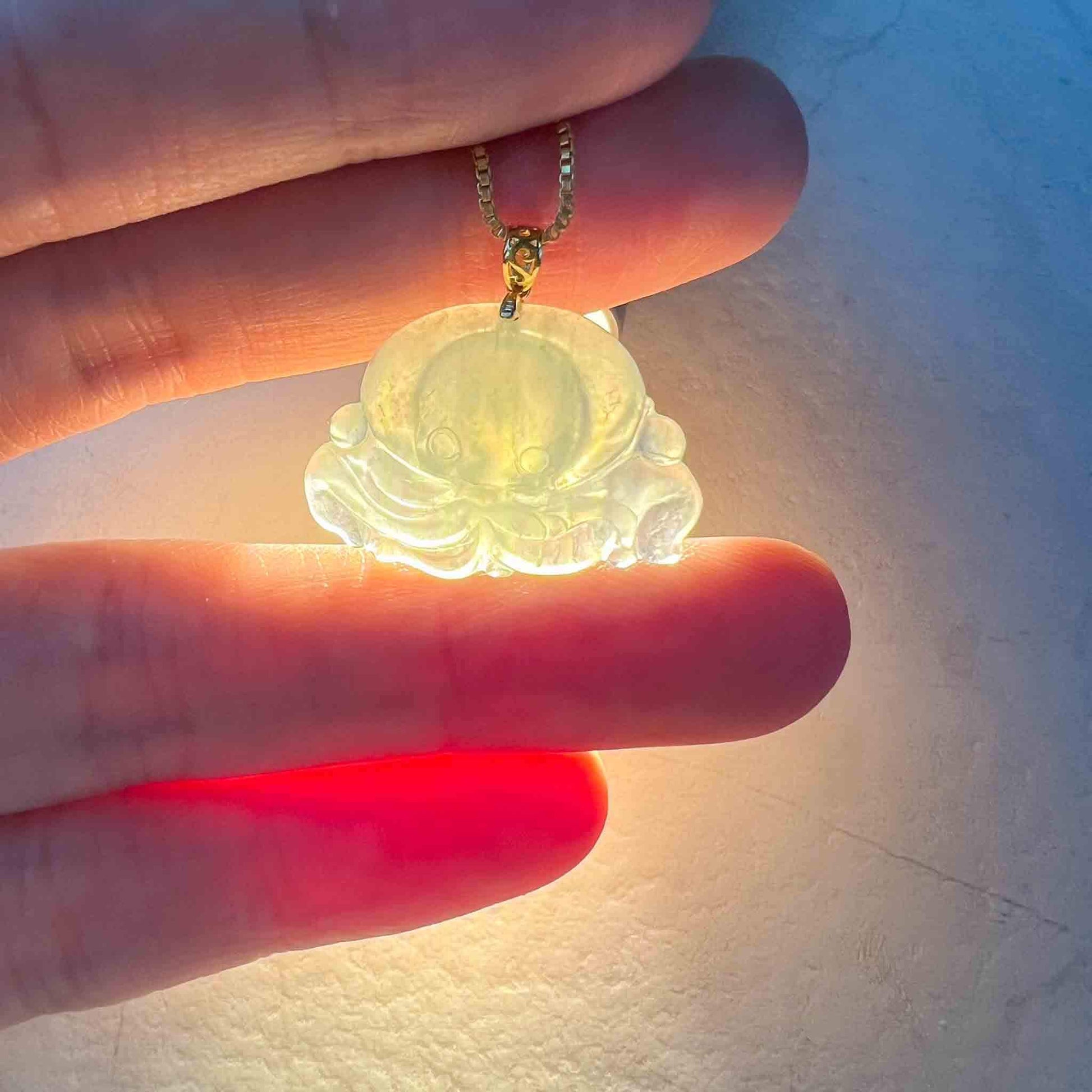 PENDANT: Beautiful hand carved one of a kind mini octopus pendant. Ice type jadeite jade crafted with a small 18K solid gold bail.