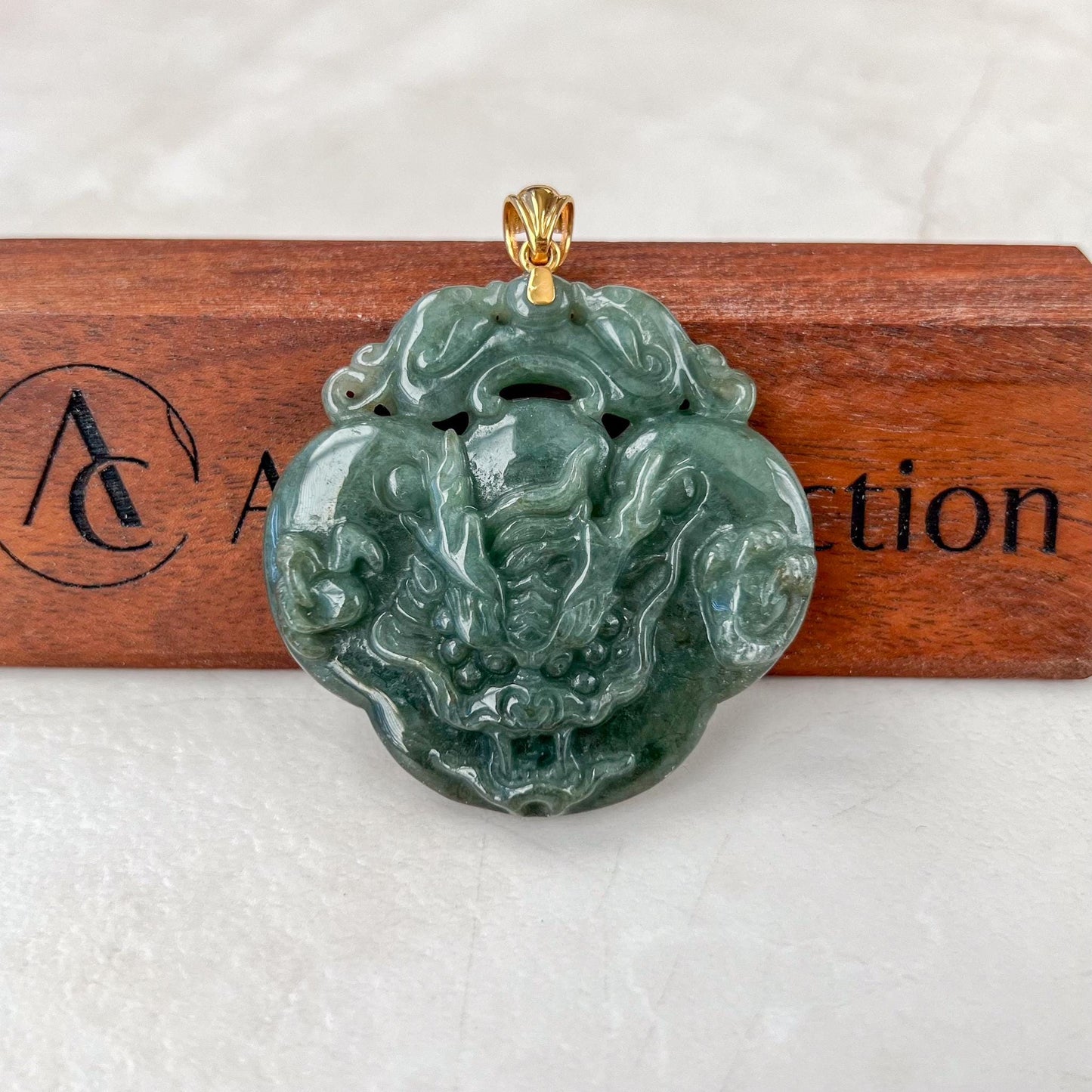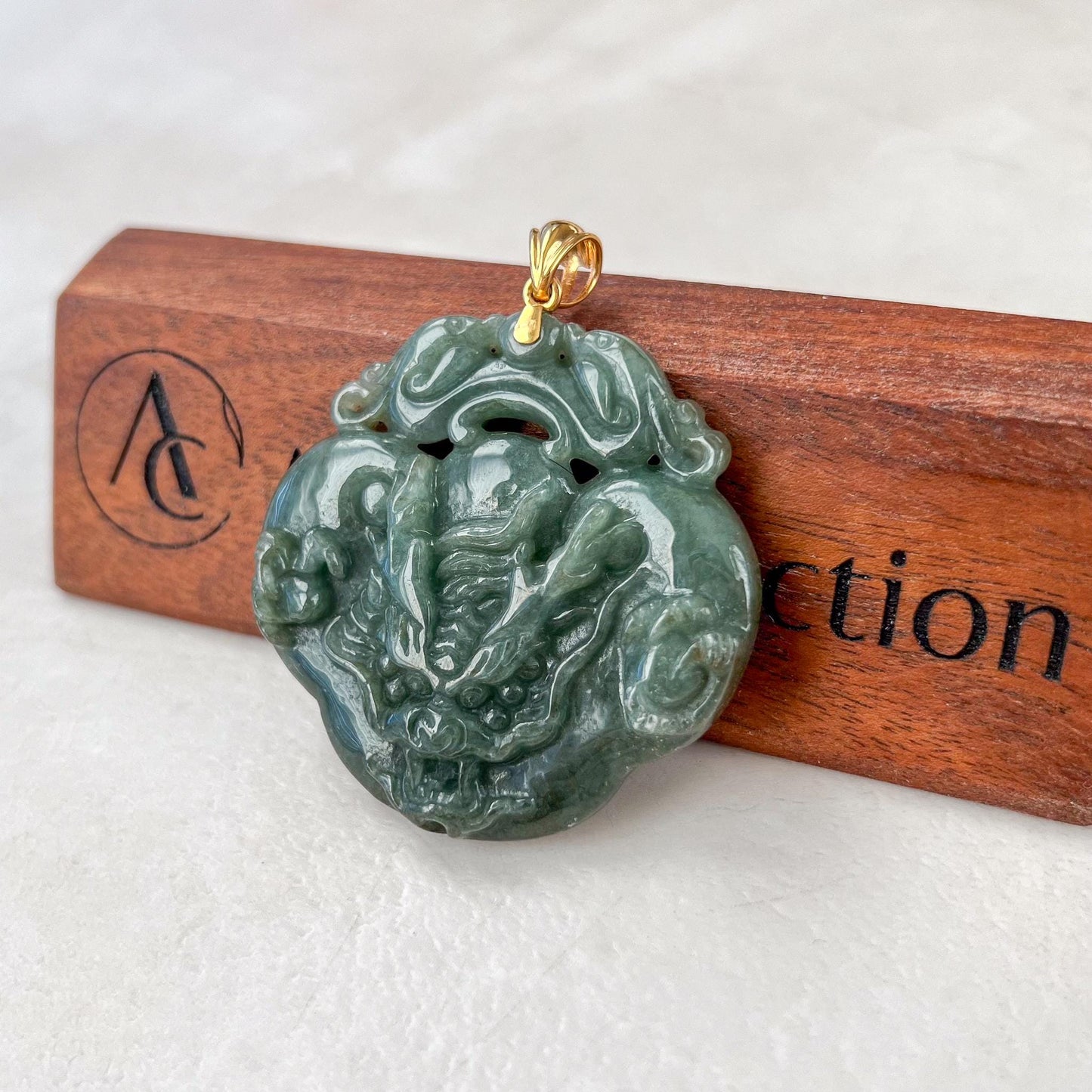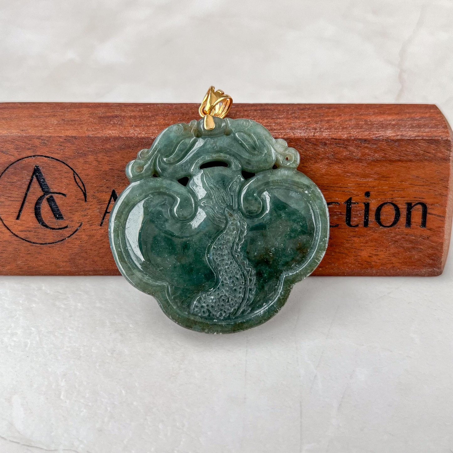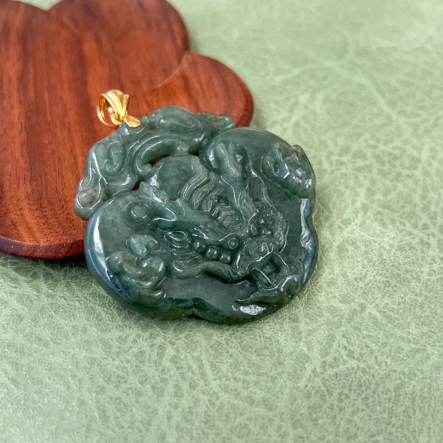 Crafted with an 18K solid gold bail, this pendant combines the dragons legendary power with the Ruyis auspicious significance, making it not only a beautiful accessory but also a powerful talisman believed to bring wealth, status, and blessings to its wearer. The rich green hue of the jade enhances the pendants connection to growth, abundance, and vitality.