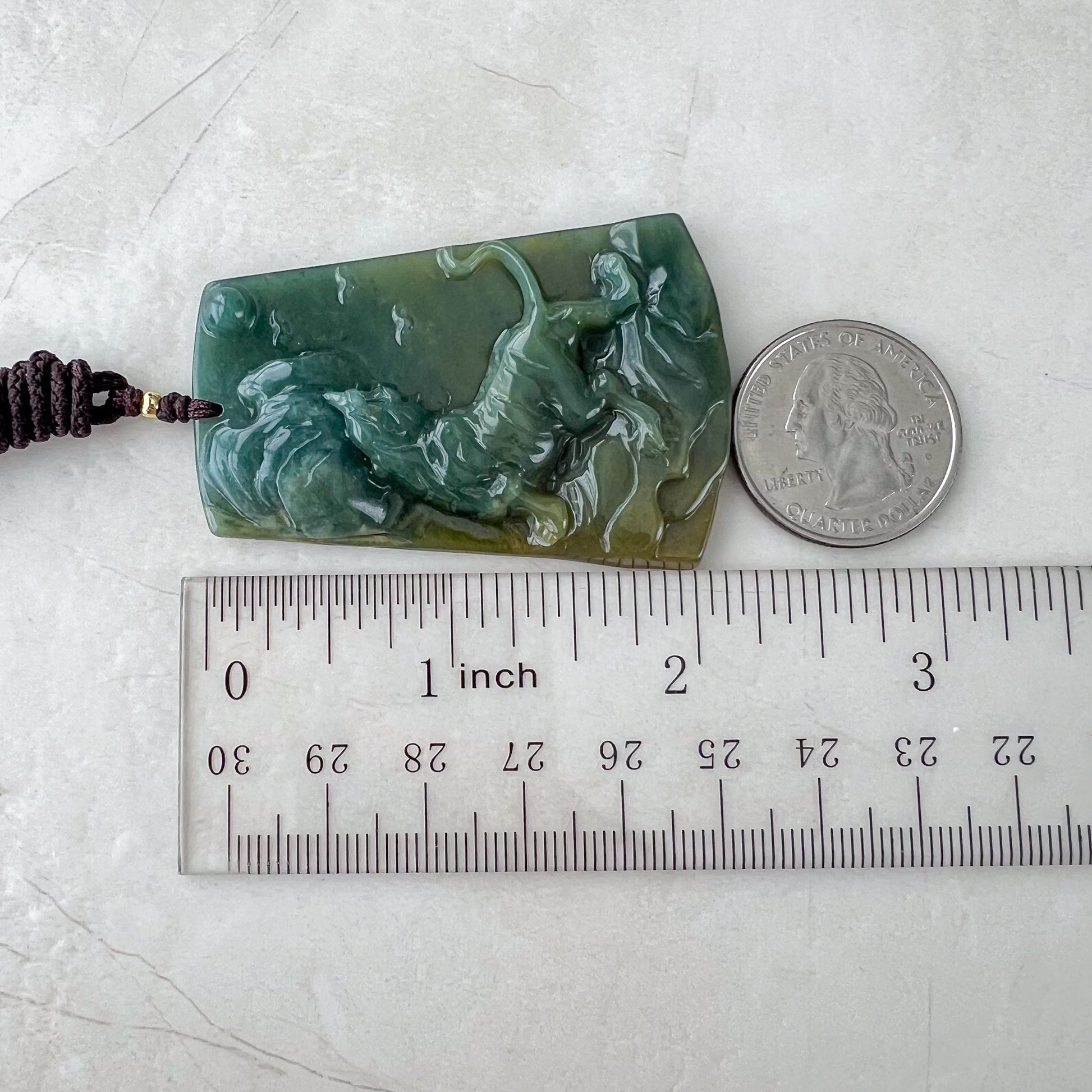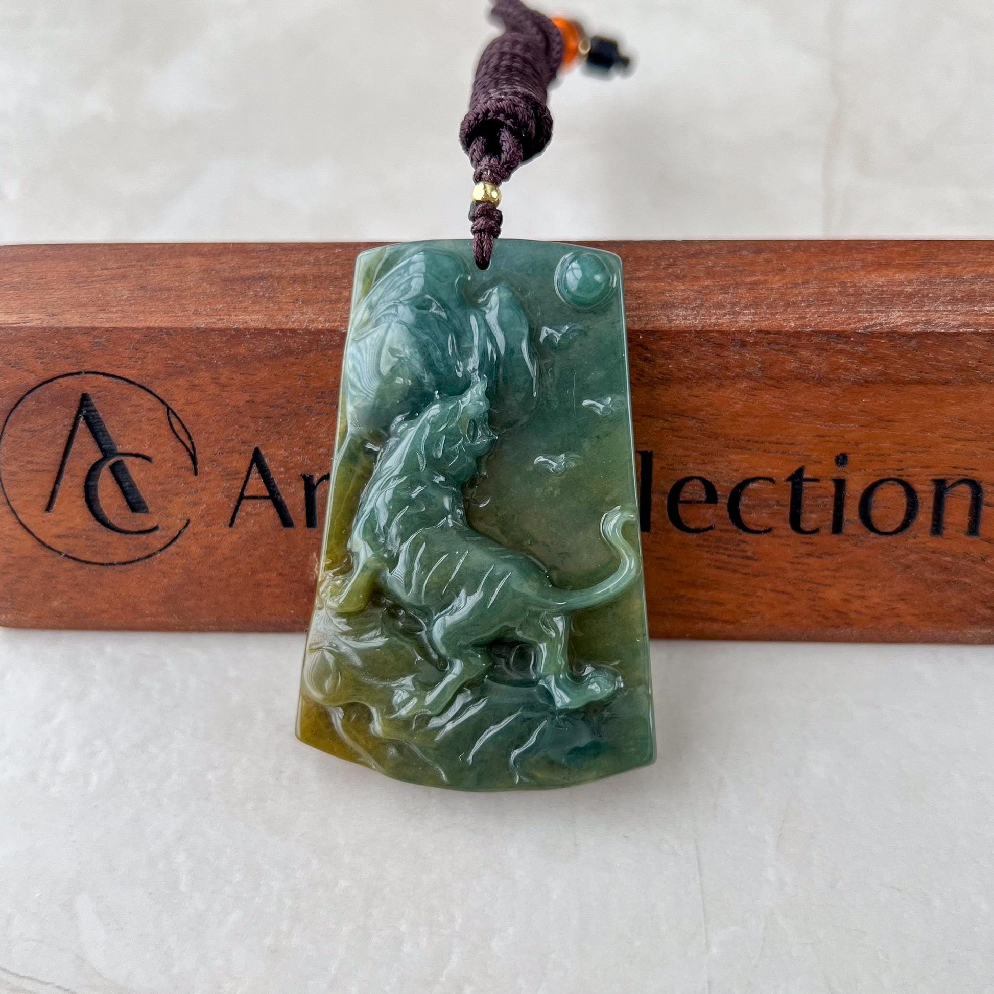 Summit Spirit Jade Tiger Ascent Pendant, Jadeite Jade Tiger, Blue Green Jade, Chinese Zodiac Carved Pendant, XZ-1022-0005531