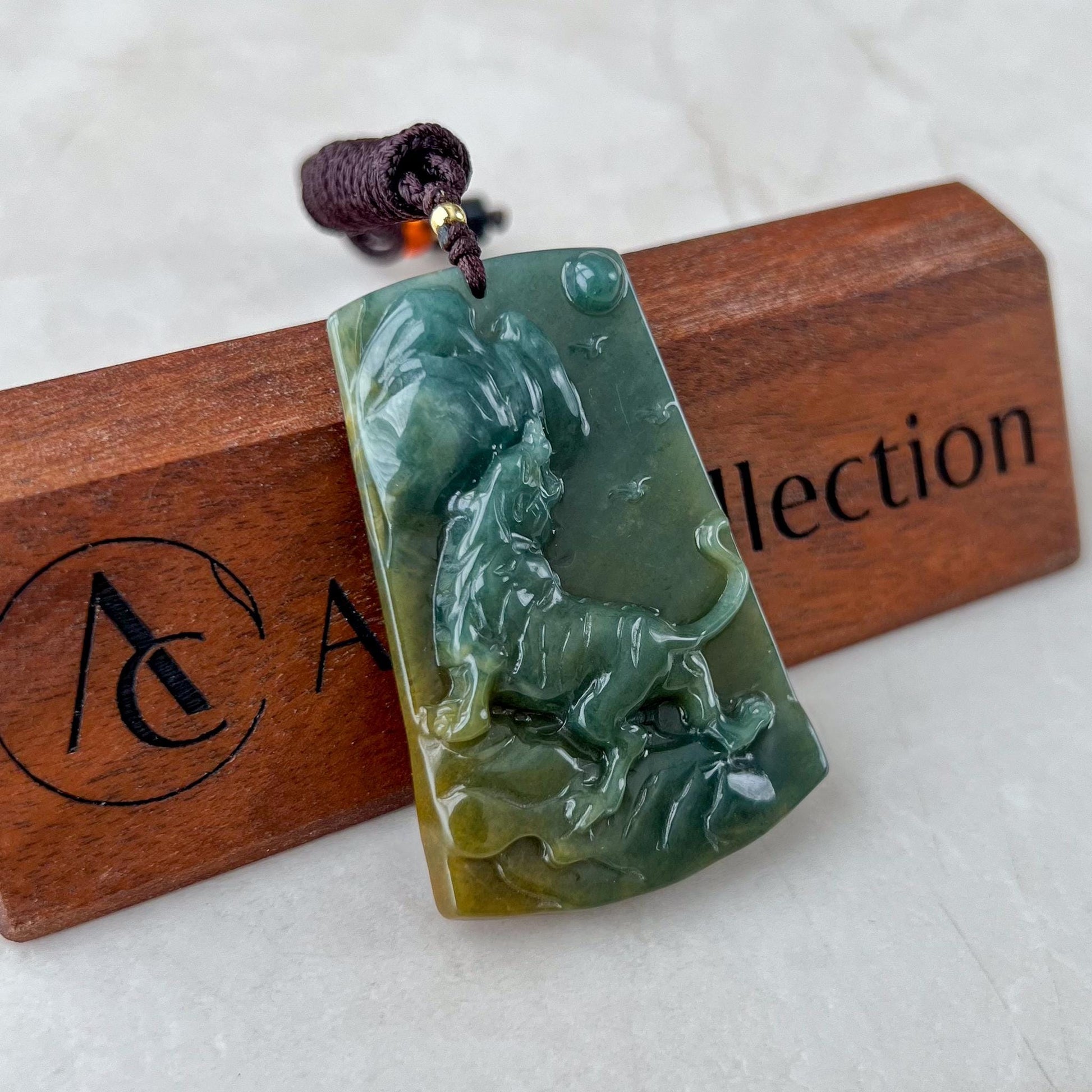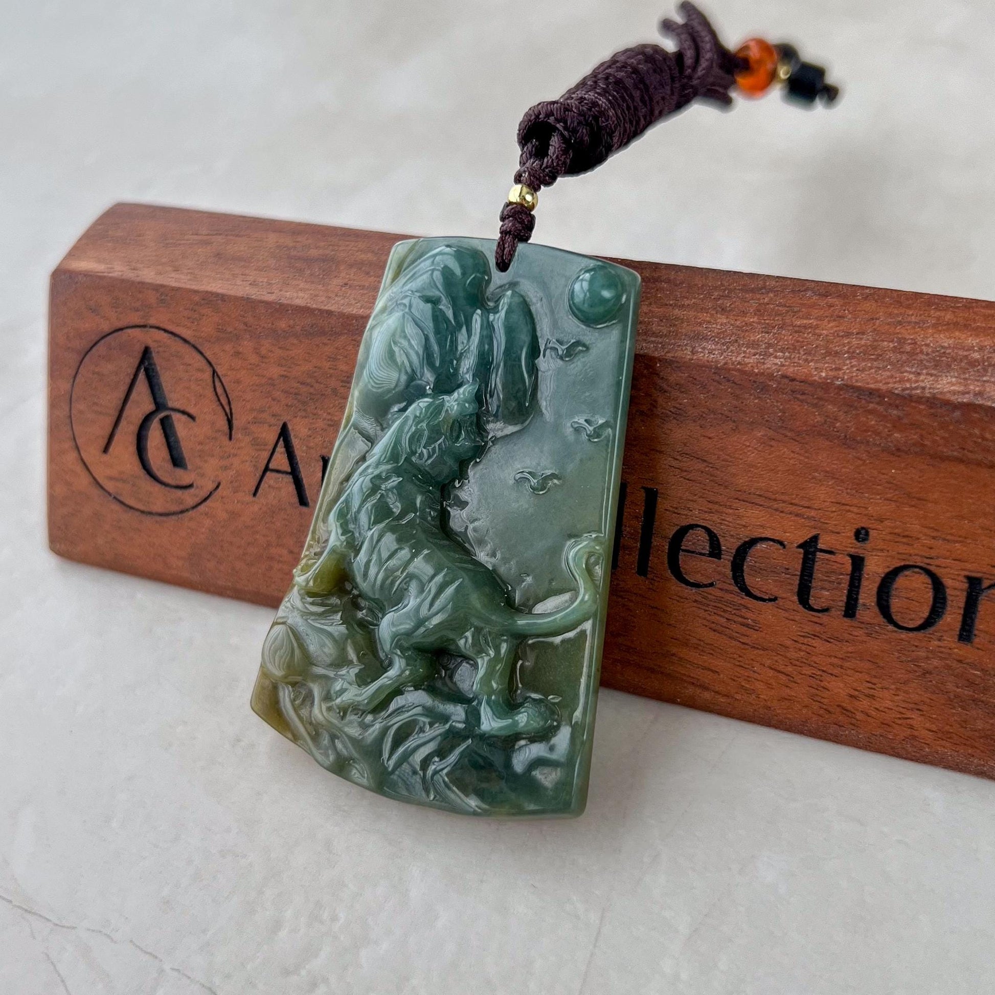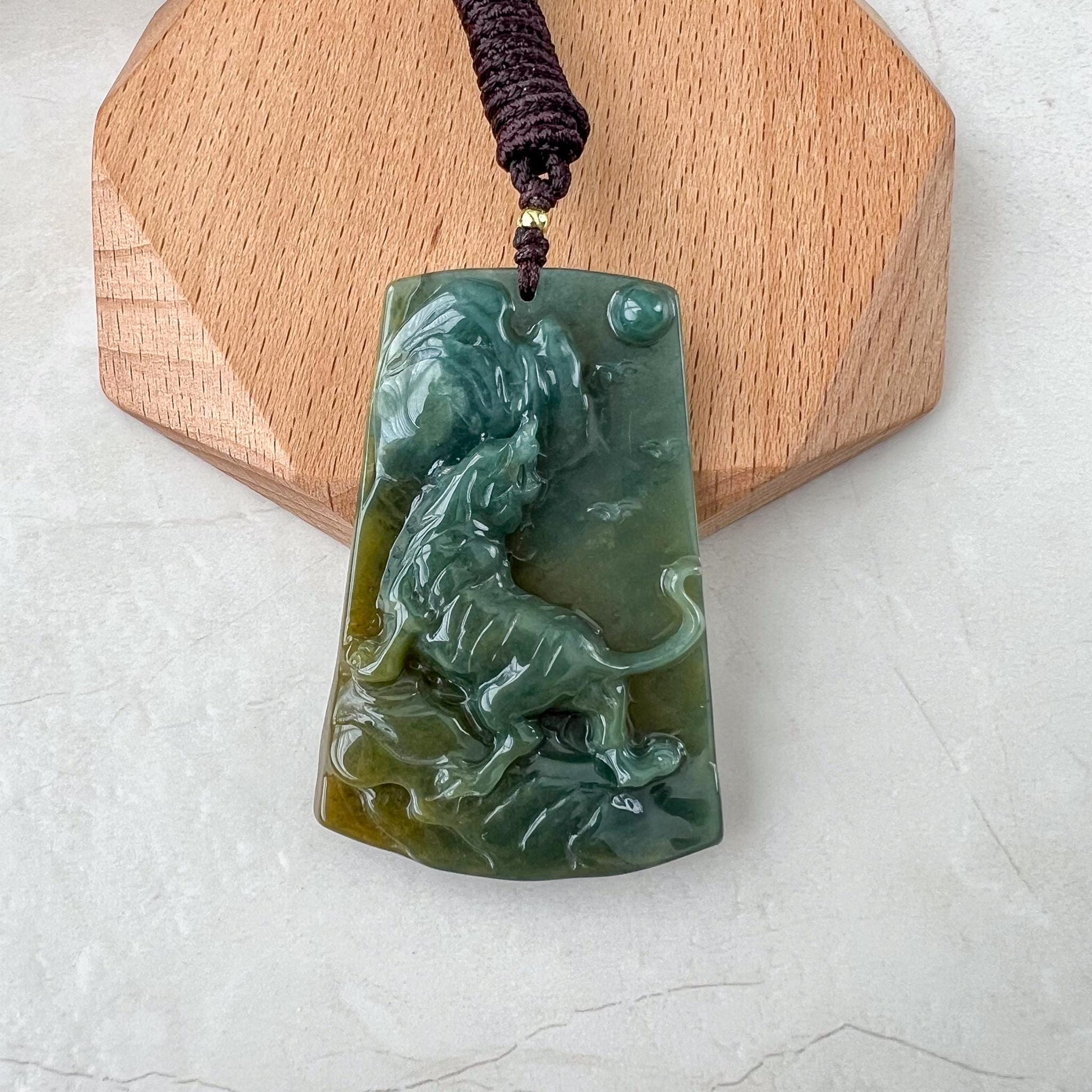 JADE COLOR: The colors of this jade piece have beautiful blue green jade tones. It is absolutely stunning hand carving, you can see the details of the tiger. When you wear it, it really stands out in the room!