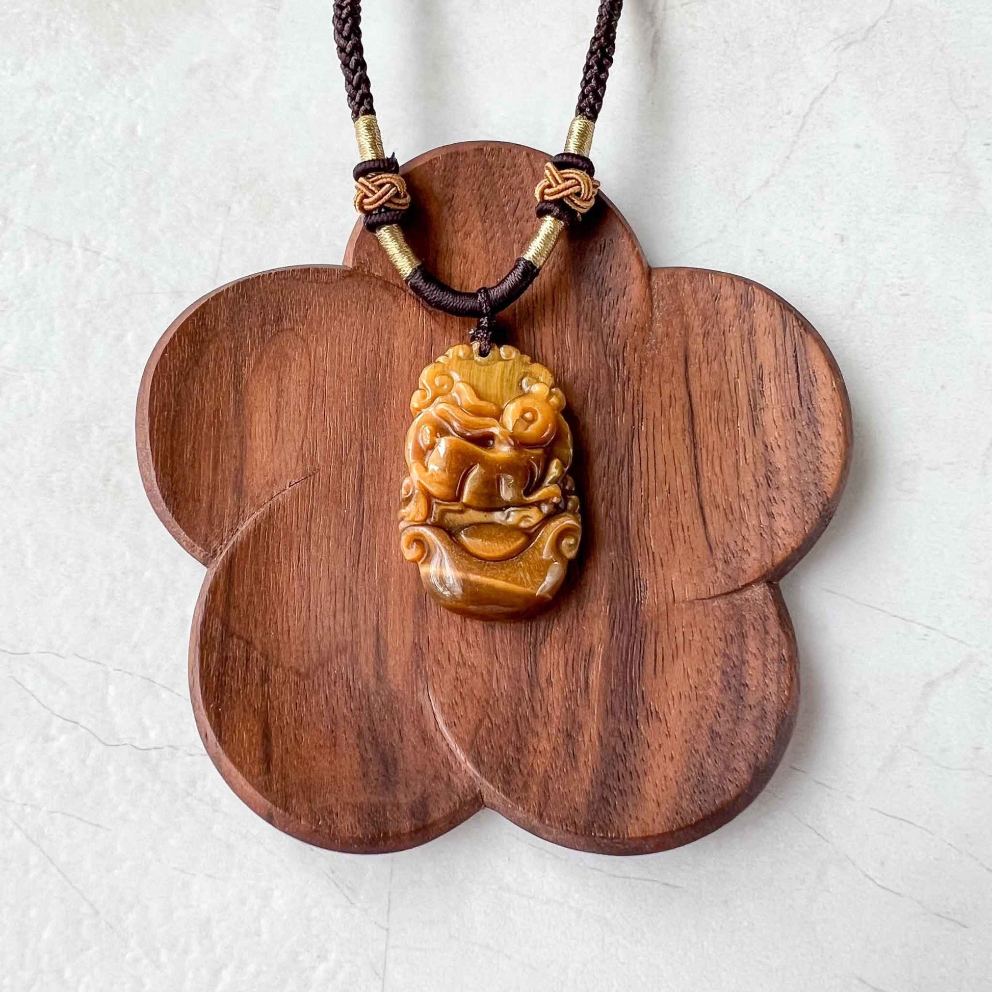 Tiger Eye Rabbit Chinese Zodiac Carved Pendant Necklace, YW-0110-1685930125