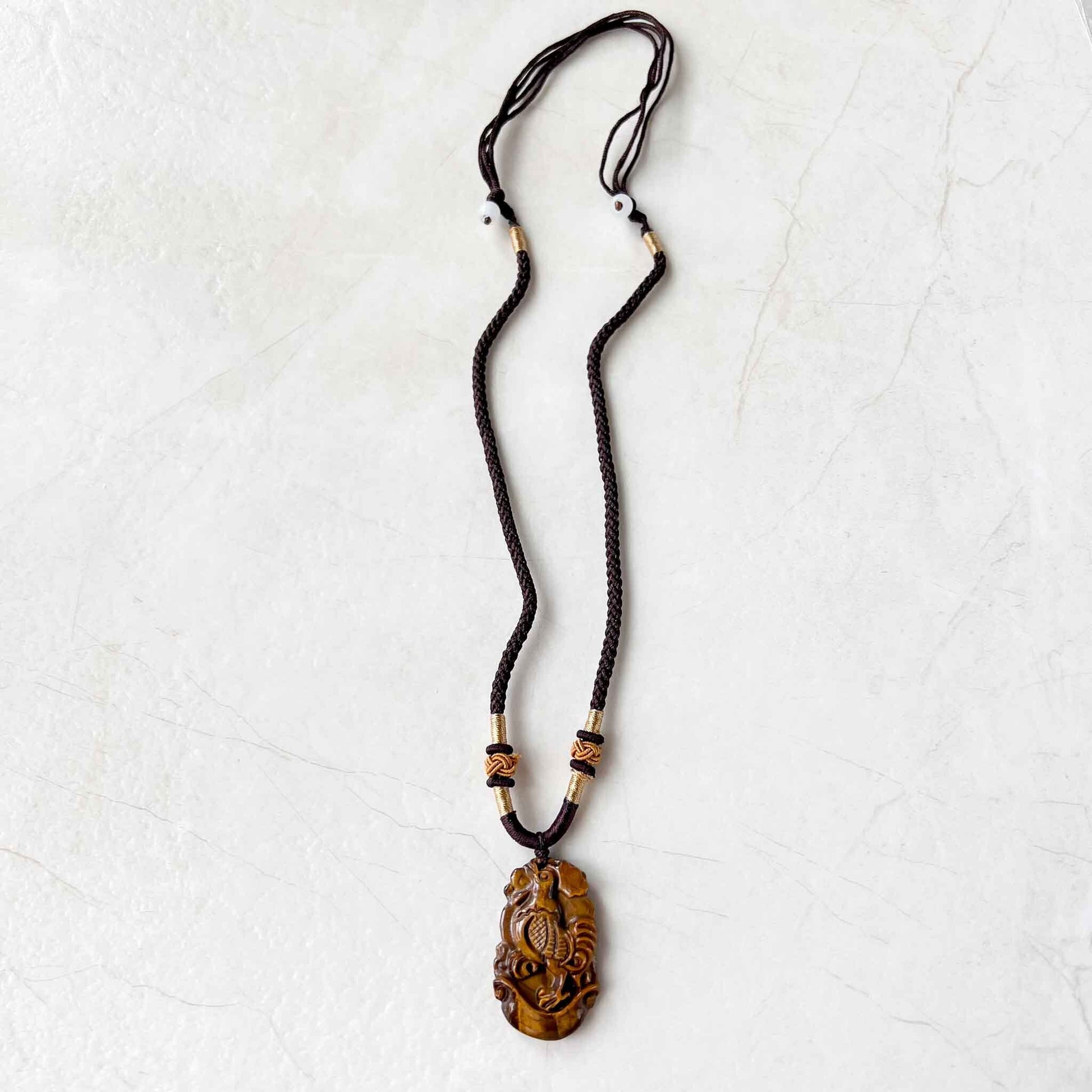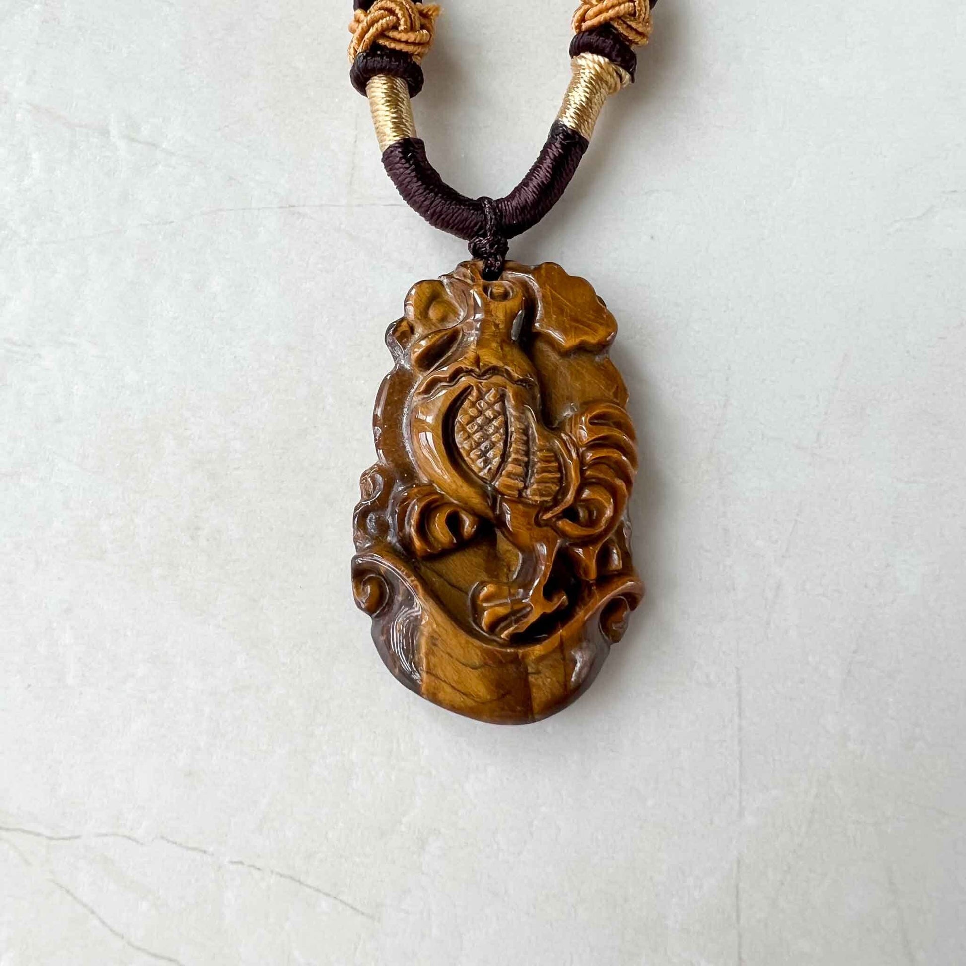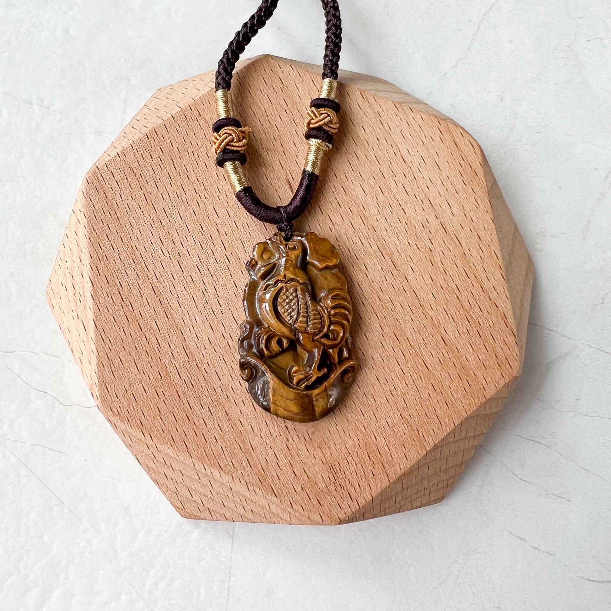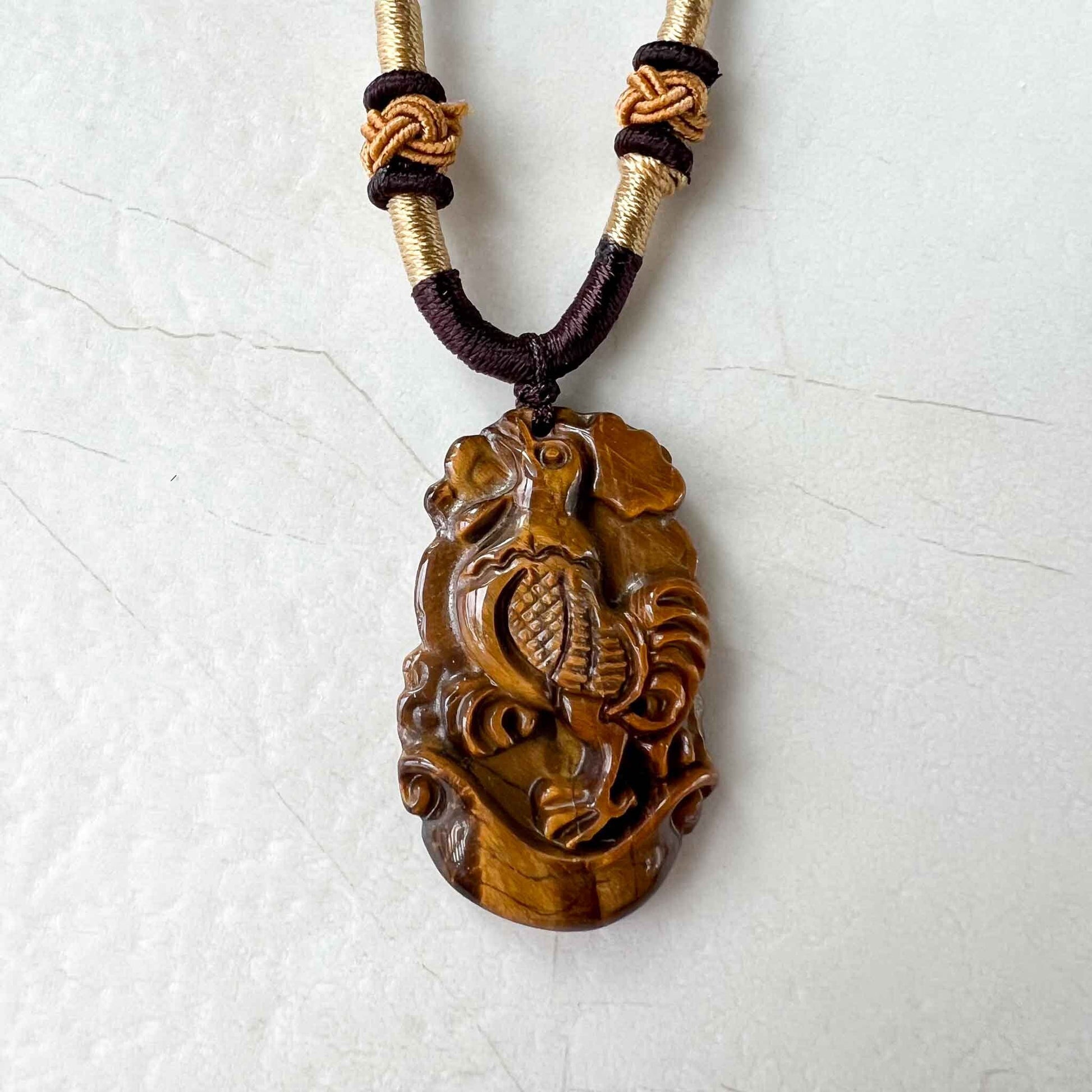 Tiger Eye Rooster Chicken Chinese Zodiac Carved Pendant Necklace, YW-0110-1685928242