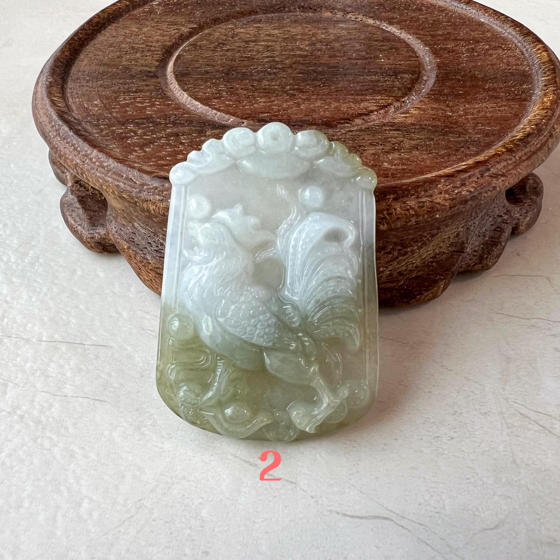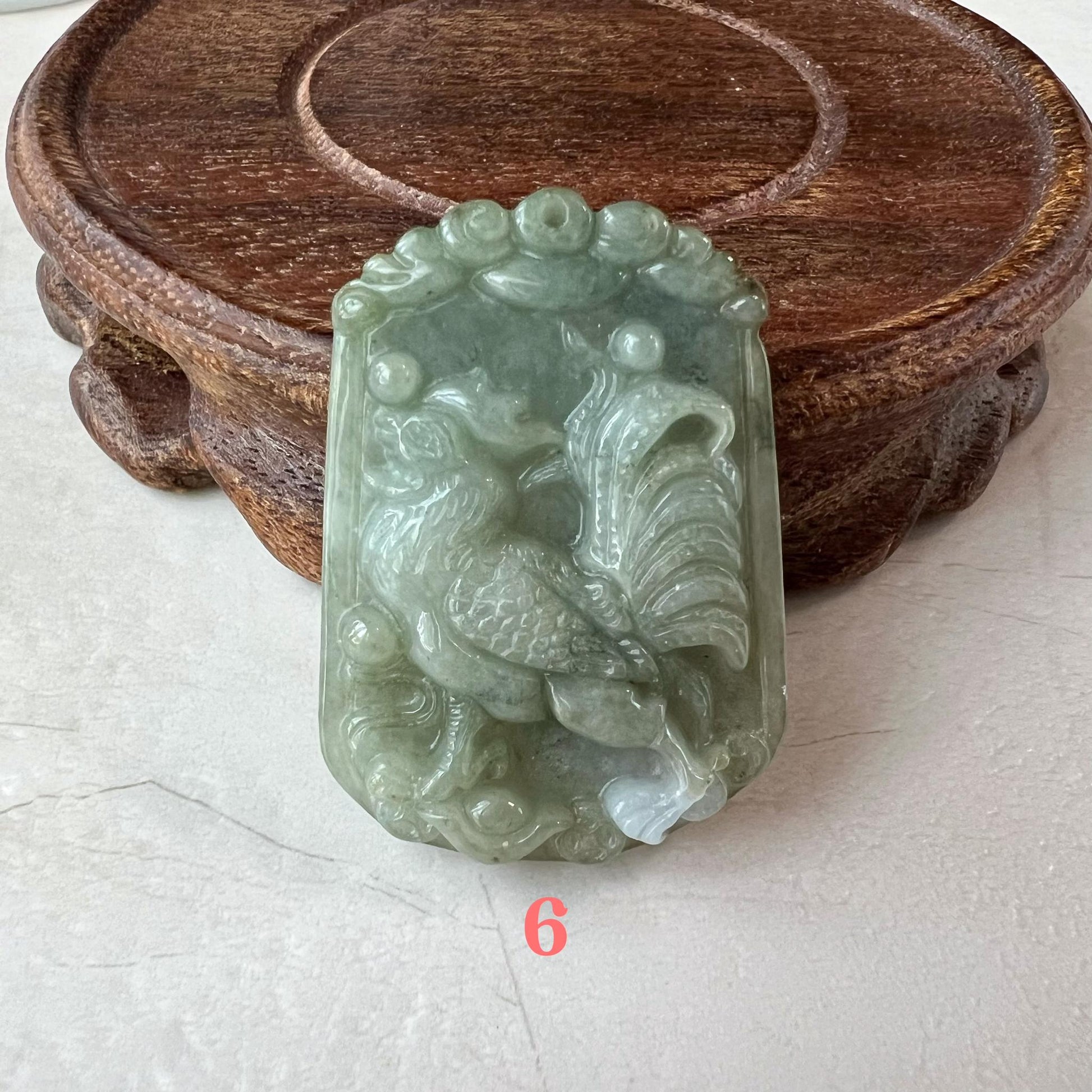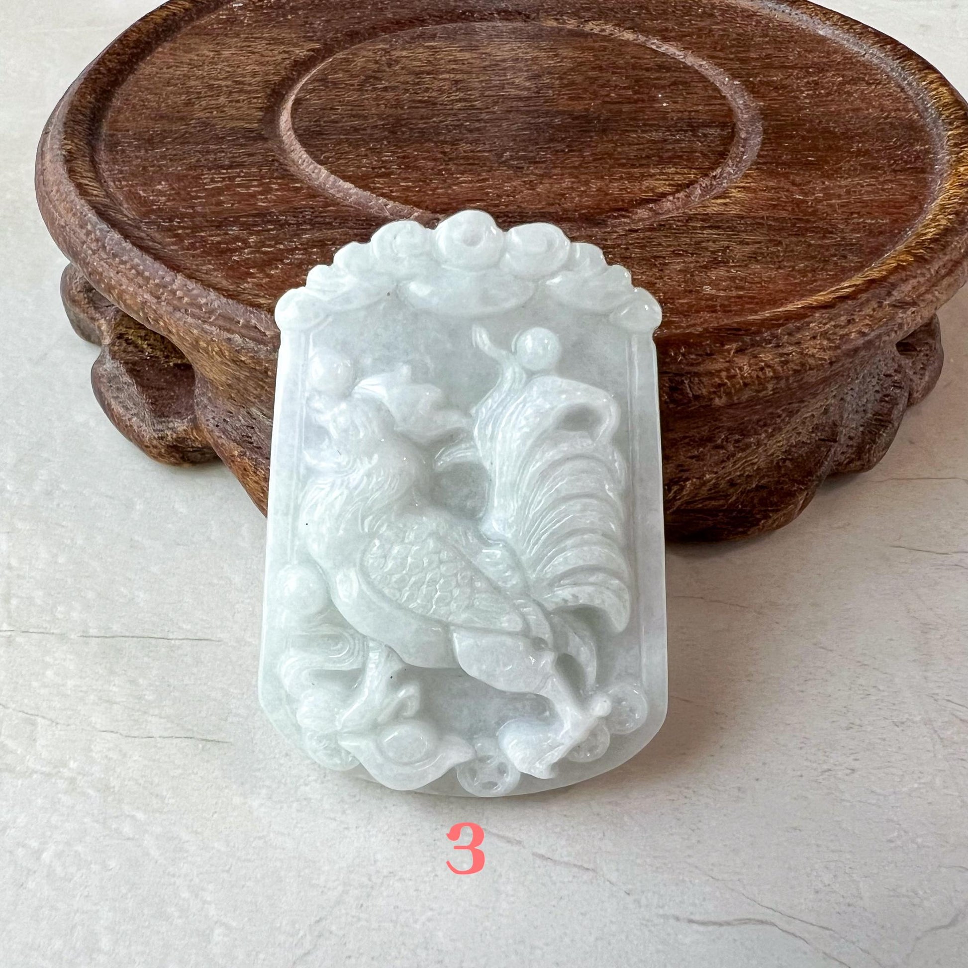 Zodiac Rooster Jadeite Jade Pendant, Rooster Chinese Zodiac Carved Pendant Necklace, LJ-1221-1723082312