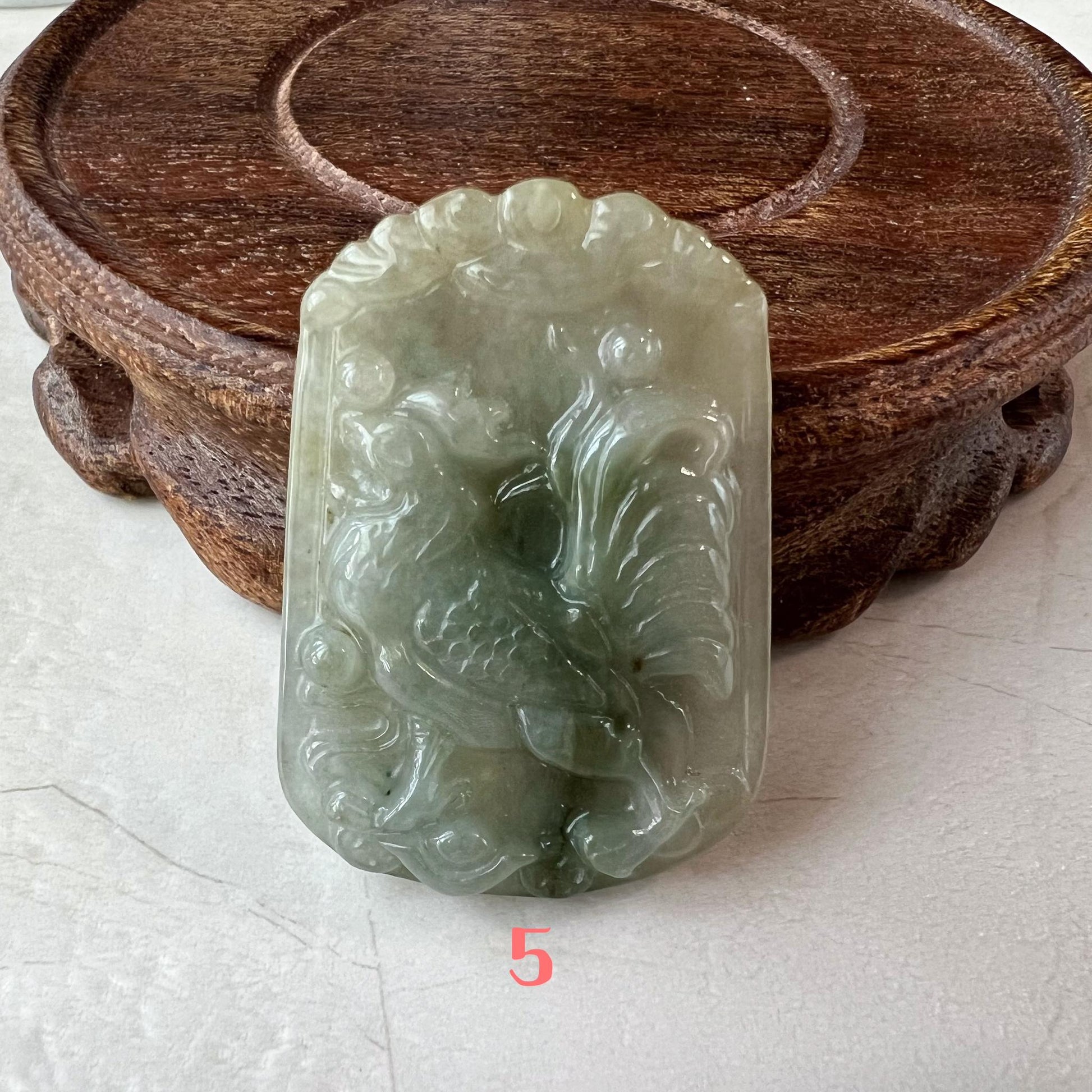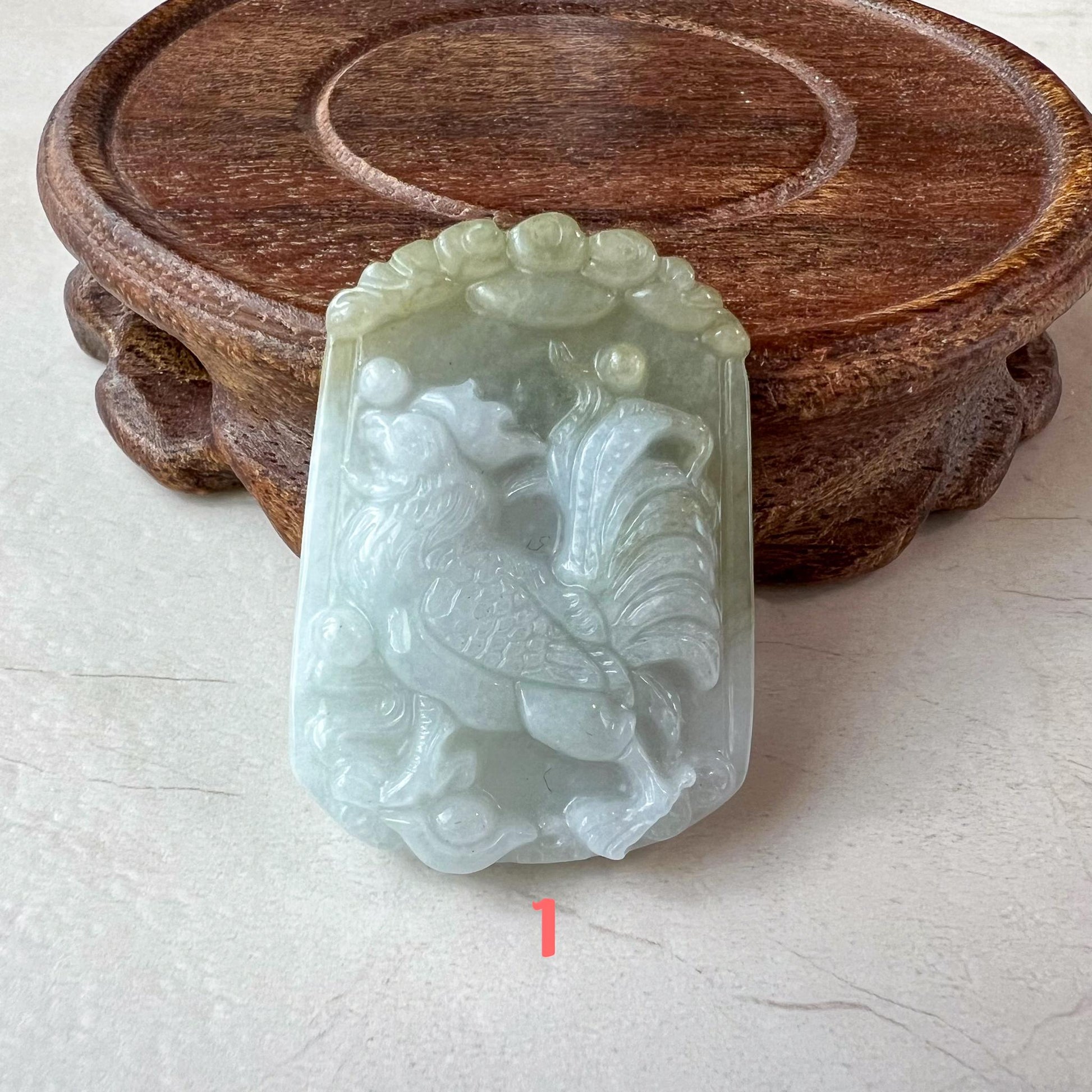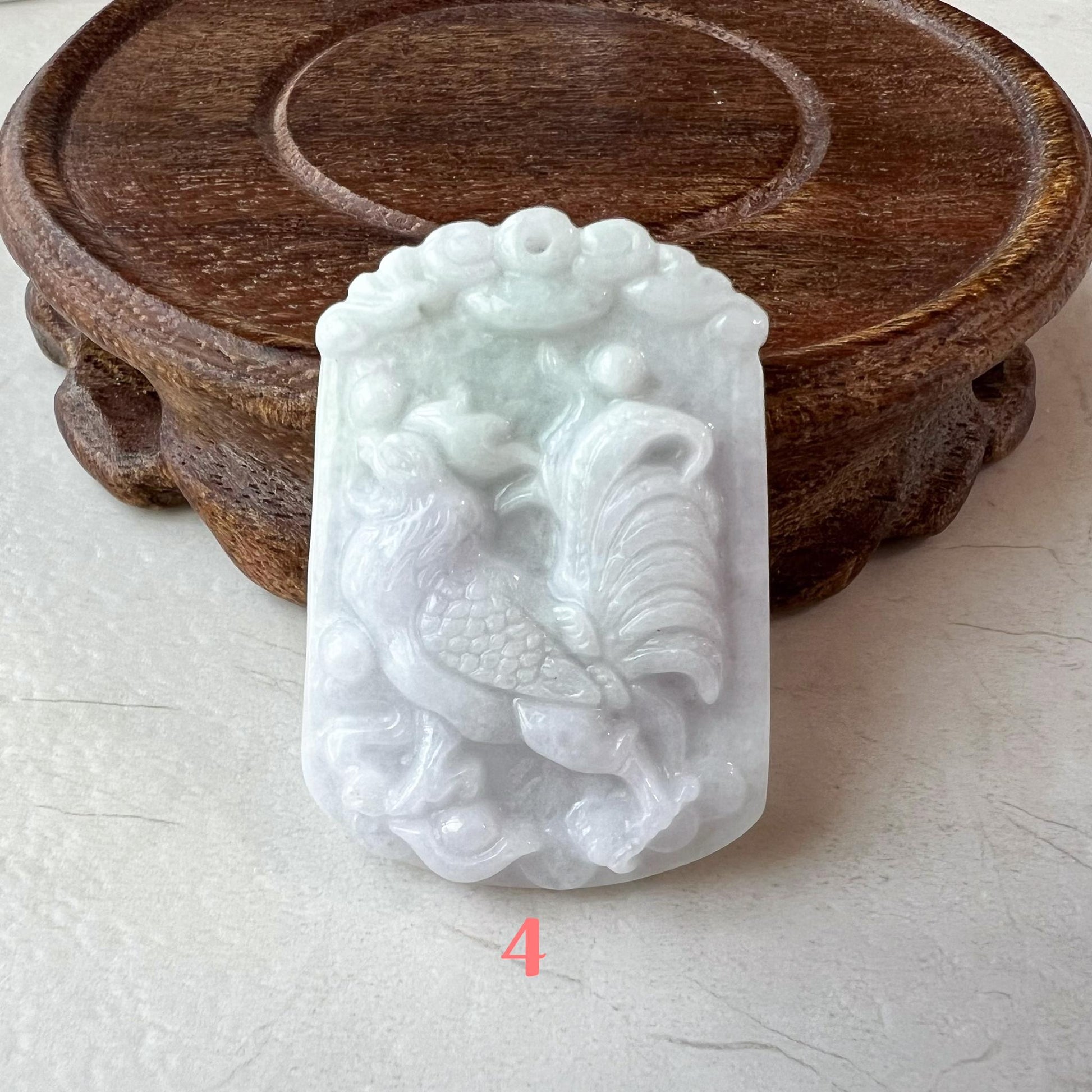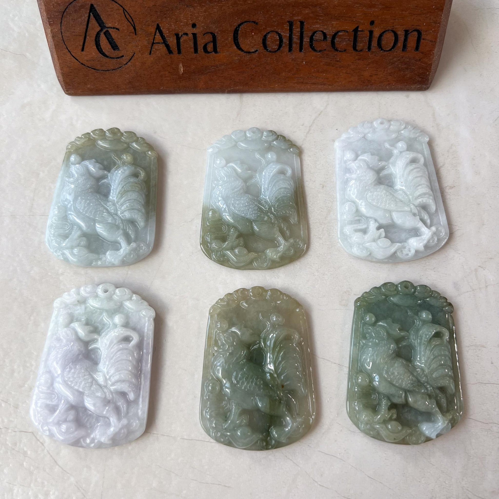 Zodiac Rooster Jadeite Jade Pendant, Rooster Chinese Zodiac Carved Pendant Necklace, LJ-1221-1723082312